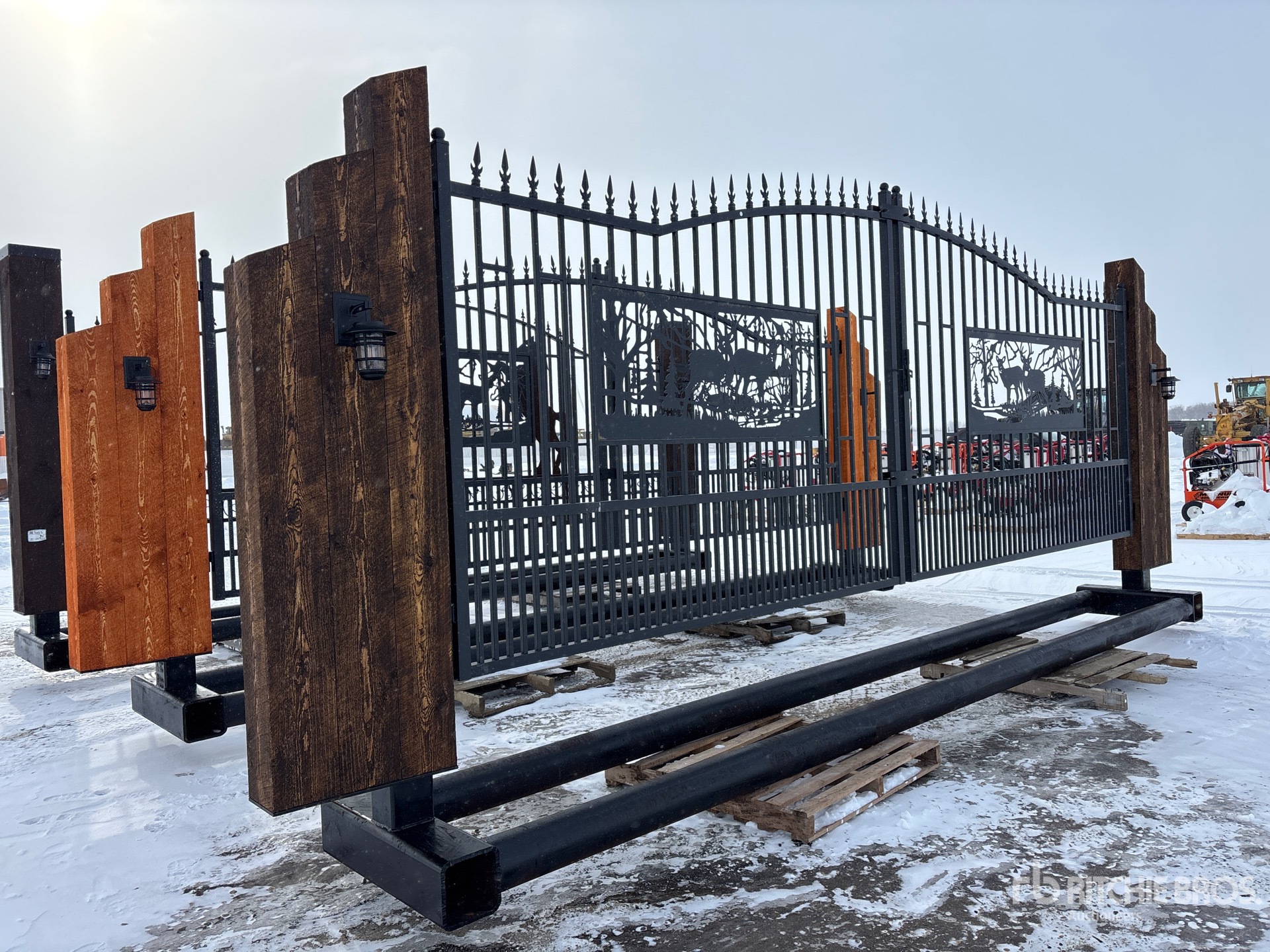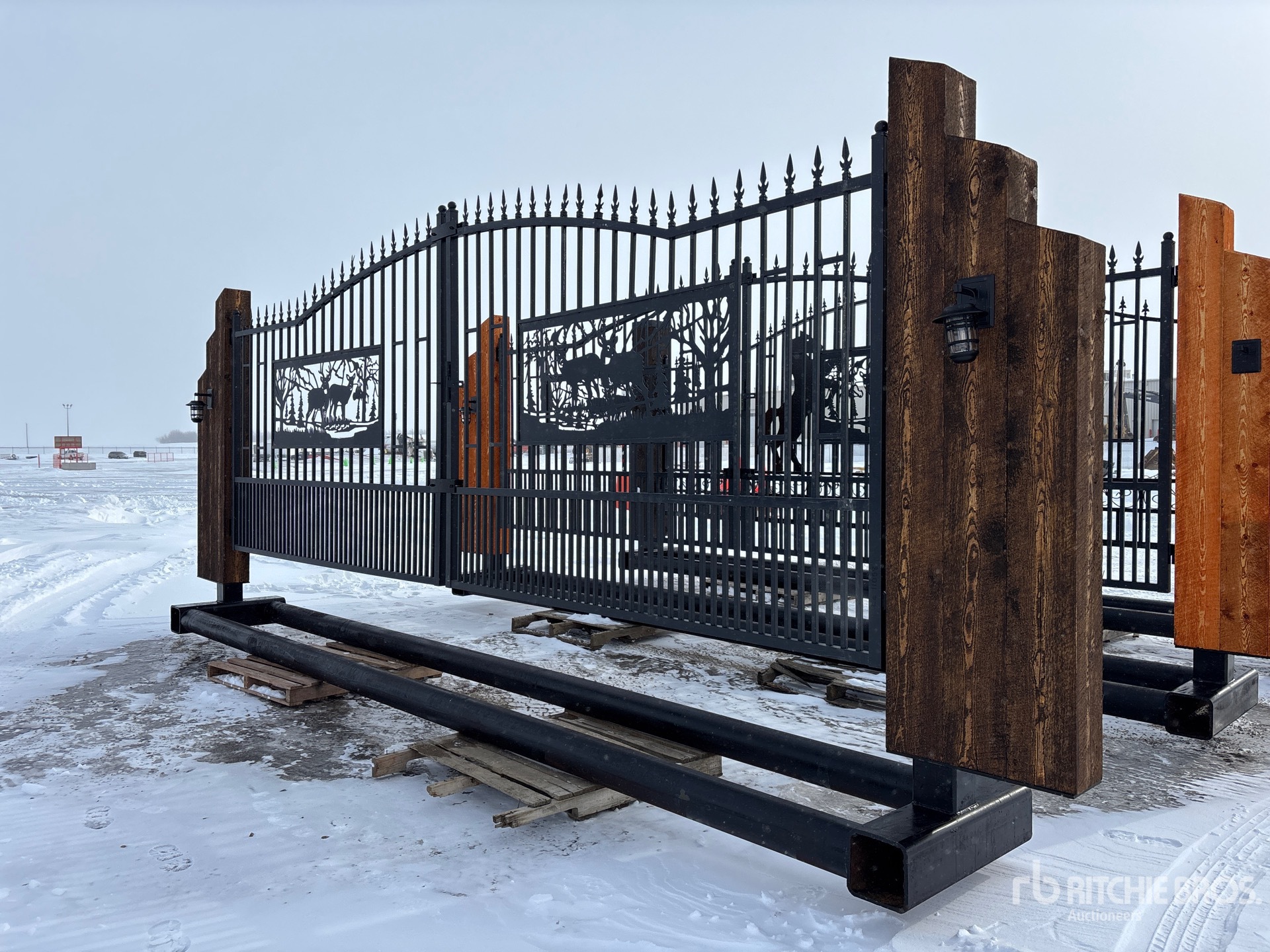18 ft 8 in Opening, 6 in Pipe Buried Frame, Solar Powered Dual Arm Automatic Gate Openers, Solar LED Lights, Solar Panel, Remote Control