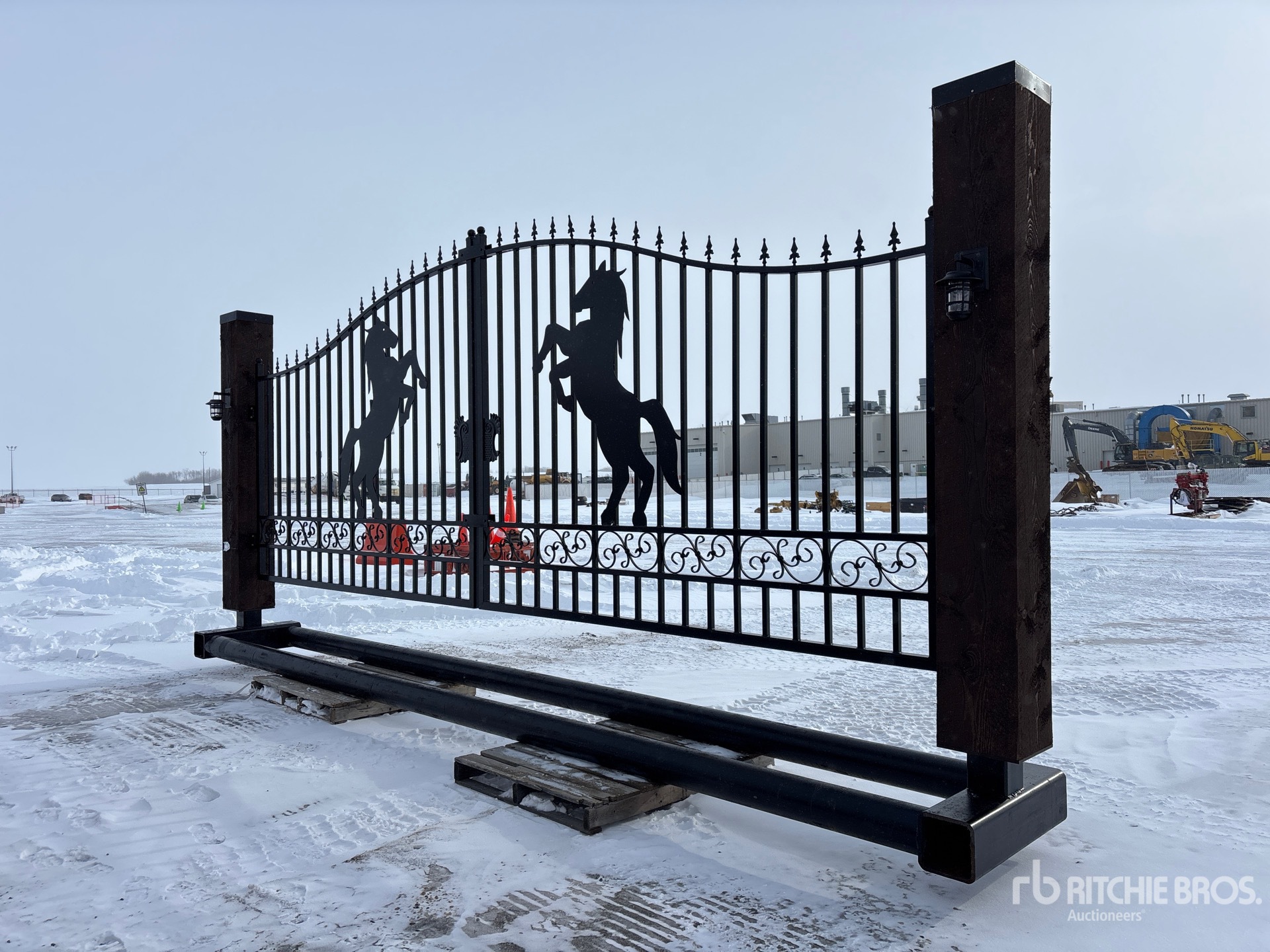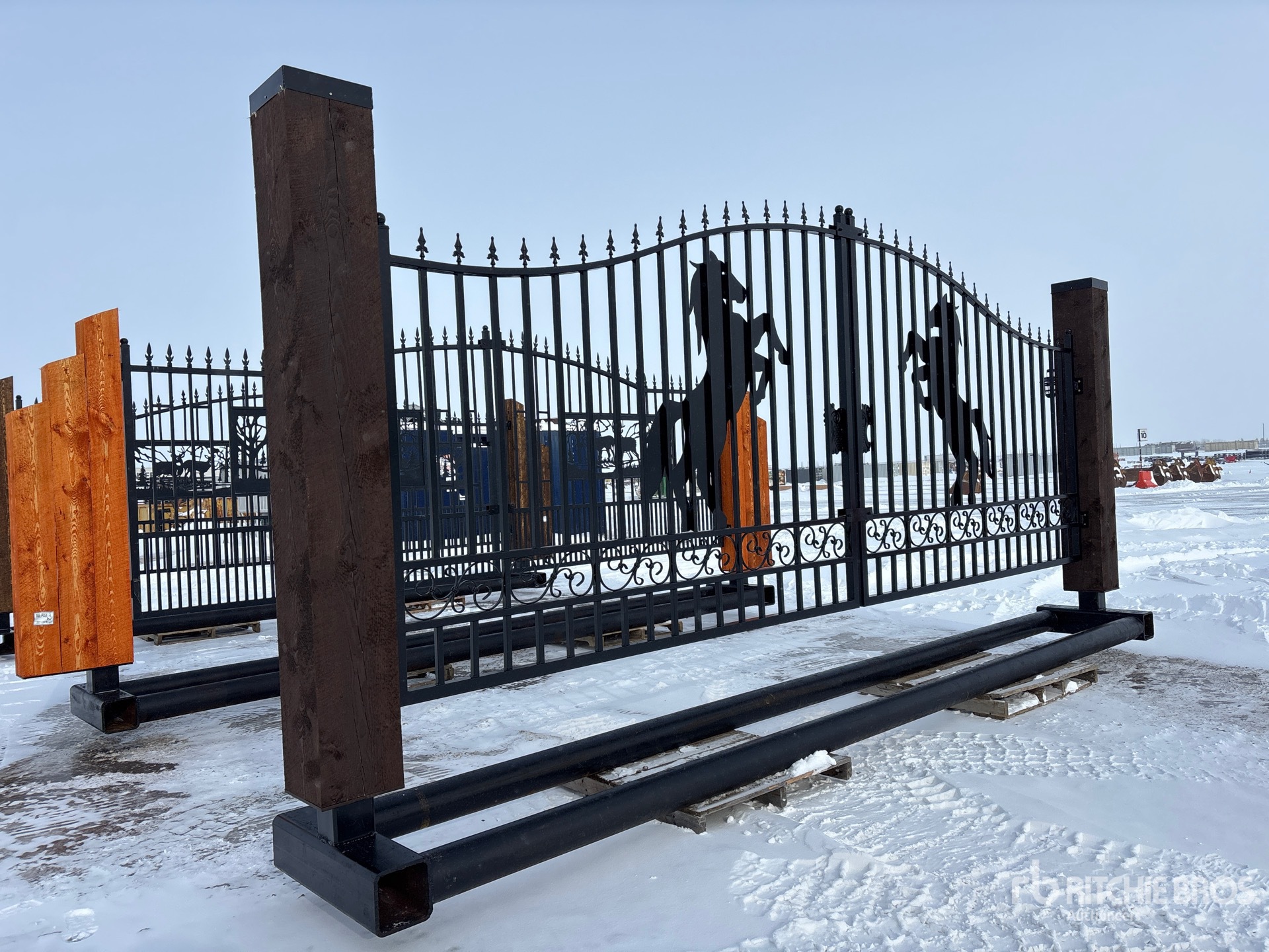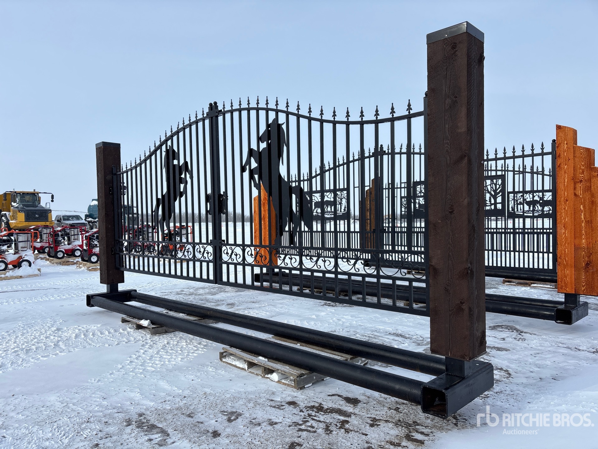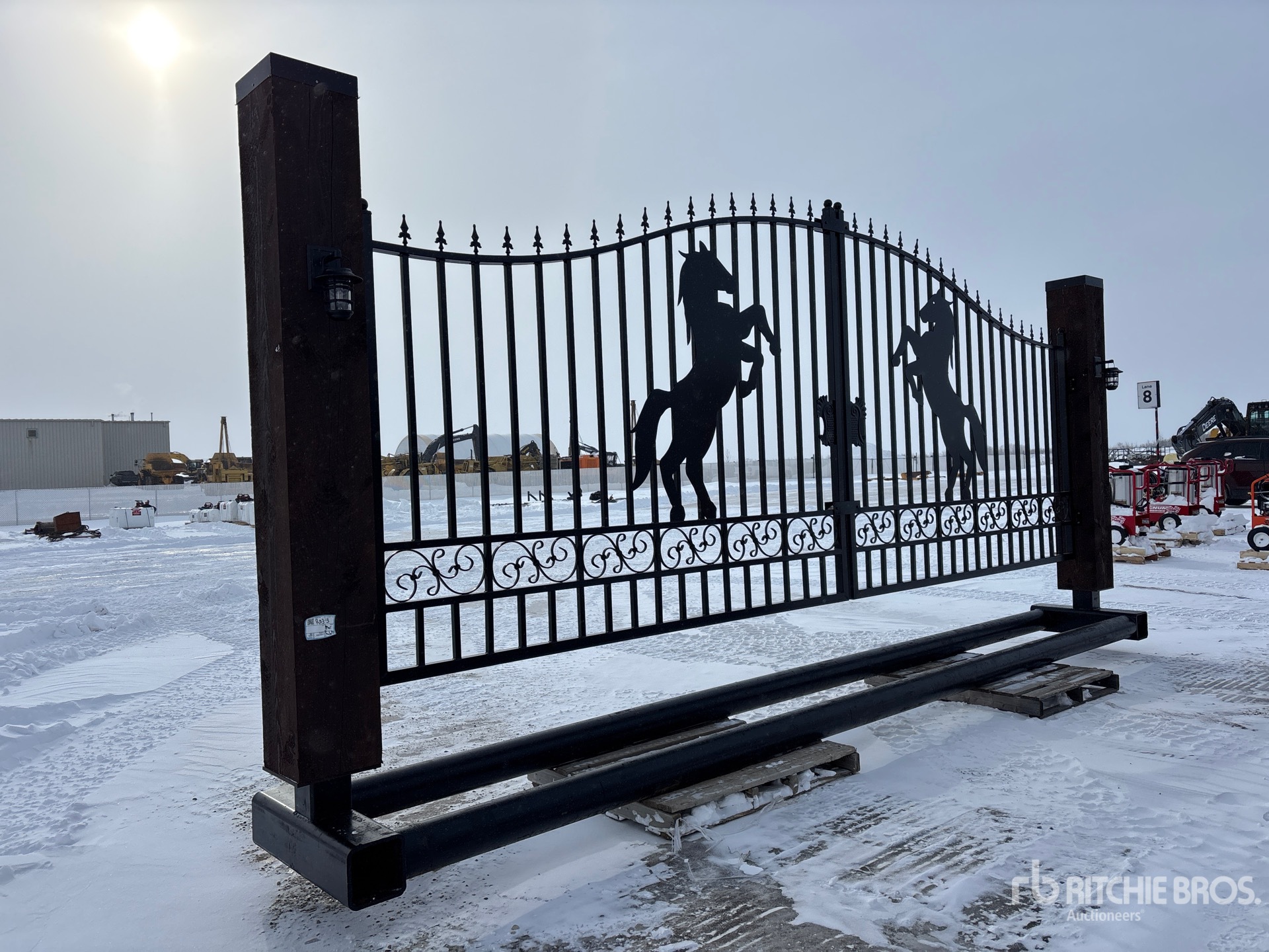 18 ft 8 in Opening, 6 in Pipe Buried Frame, Solar Powered Dual Arm Automatic Gate Openers, Solar LED Lights, Solar Panel, Remote Control