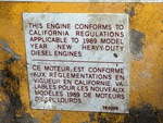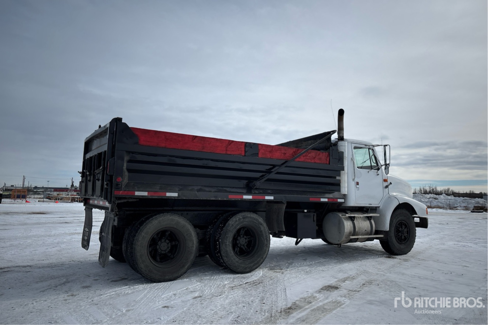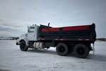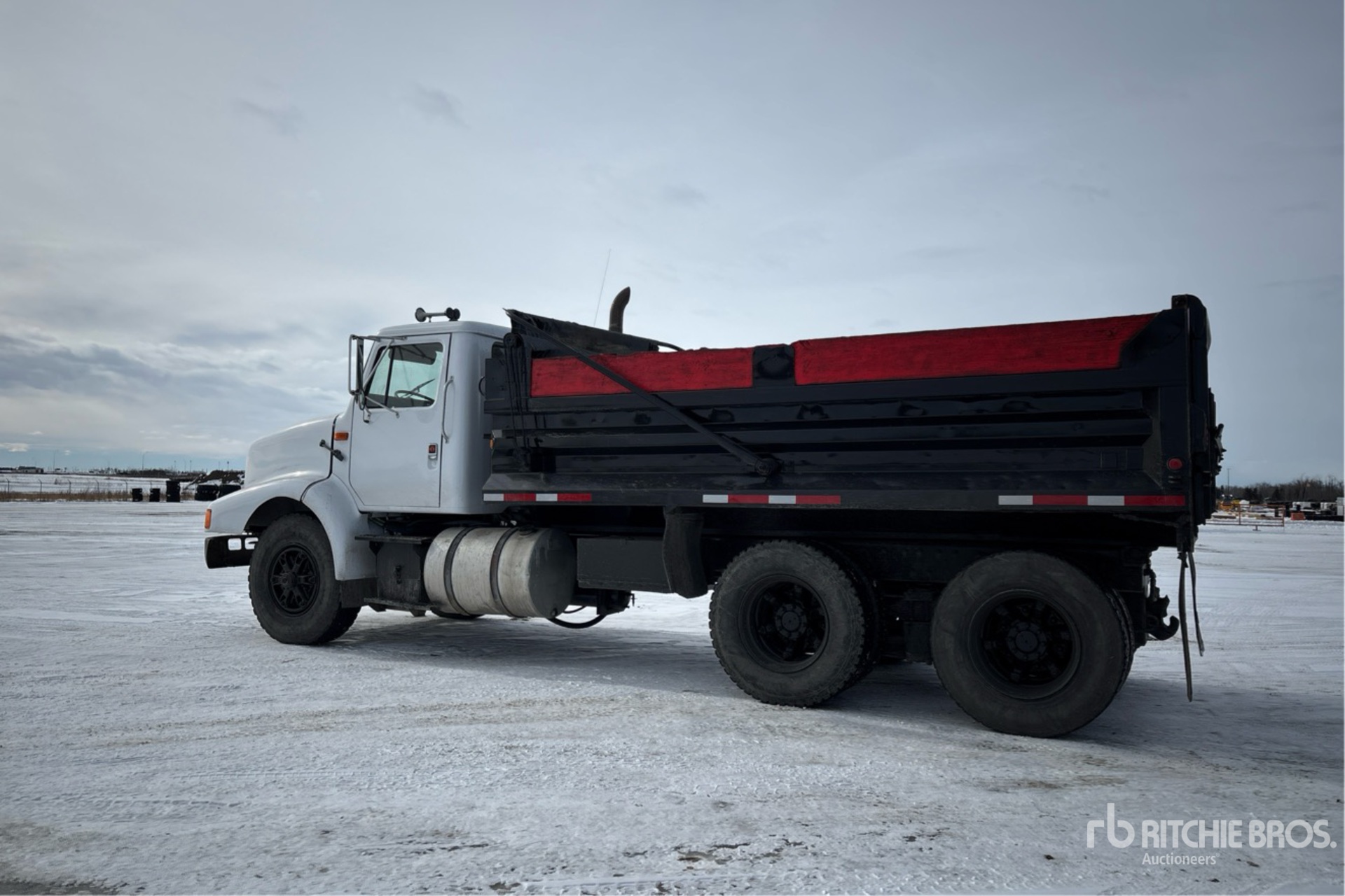 Cat 3406B 6 Cylinder 14.6 L Diesel Engine, 1989 US EPA Label, 15130 Engine hrs, Engine Brake, Eaton Fuller 13-Speed Manual Transmission, 13R22.5 Front Tires, 11R22.5 Rear Tires, Hendrickson Spring over Walking Beam Suspension, 196 in Wheelbase, PTO, 15 ft Long x 3 ft 5 in High Steel Body, Manual Roll Tarp, Triple Tailgate Chutes, Pintle Hitch