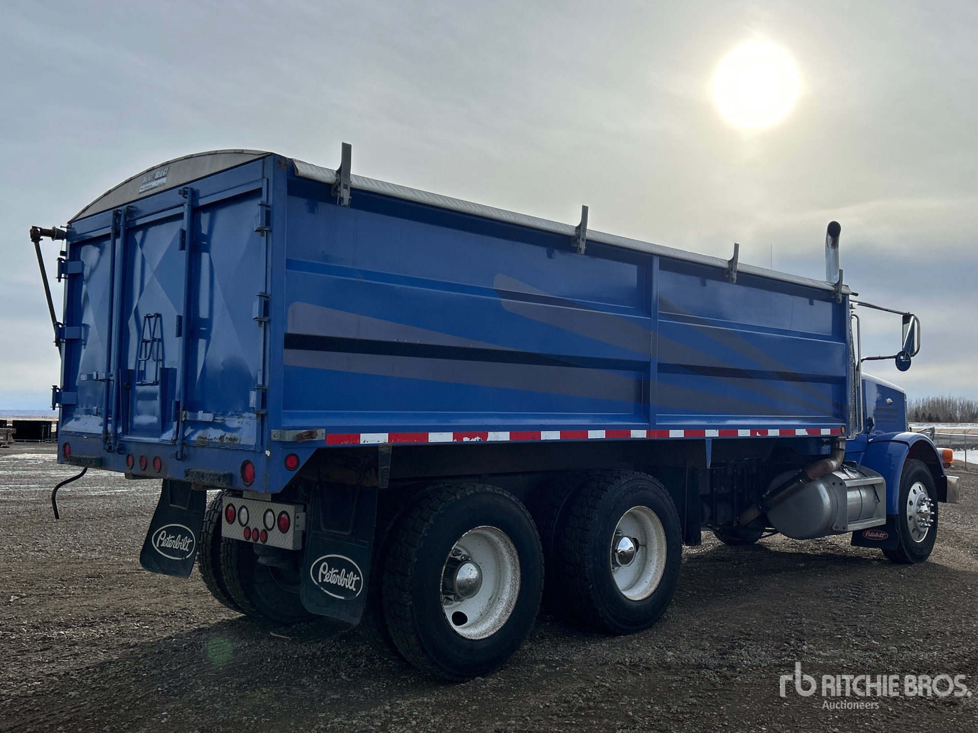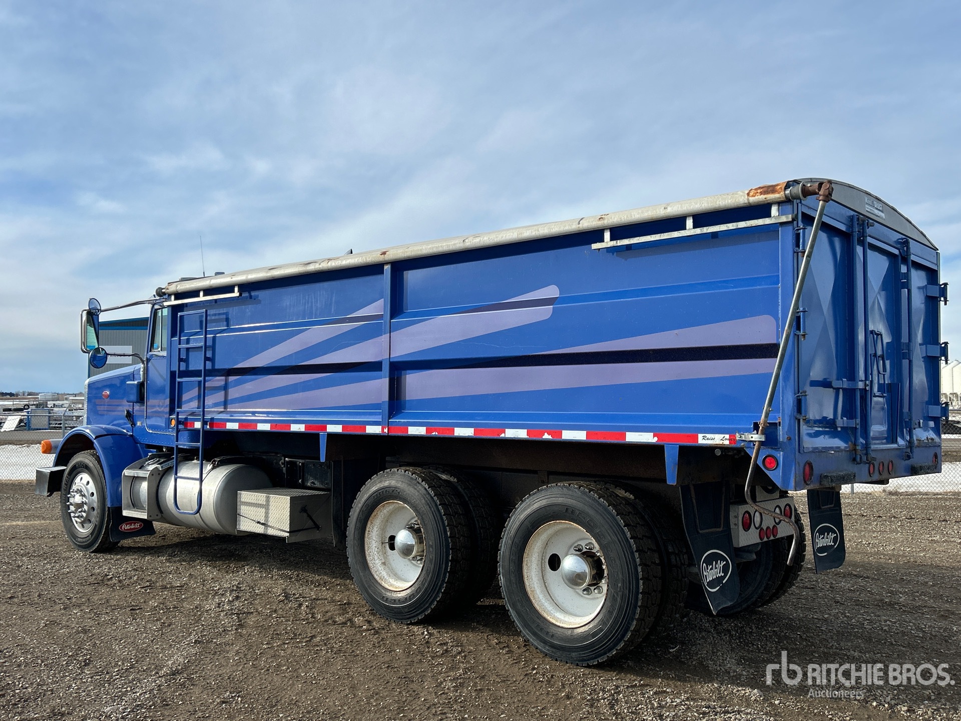 Cat 3406 6 Cylinder 14 L Diesel 350 hp Engine, 3400 Engine hrs, Engine Brake, Eaton Fuller 15-Speed Manual Transmission, Differential Lock, 5443 kg Front Axle, 18144 kg Rears, 3.55:1 Axle Ratio, 23587 kg GVWR, Aluminum Front Wheels, 12R24.5 Front Tires, 11R24.5 Rear Tires, Air Trac Air Ride Suspension, 2283 in Wheelbase, PTO, 20 ft Long x 4 ft 6 in High Steel Body, Manual Roll Tarp, Split Swing Tailgate, Remote Hoist Control, Tailgate Chute