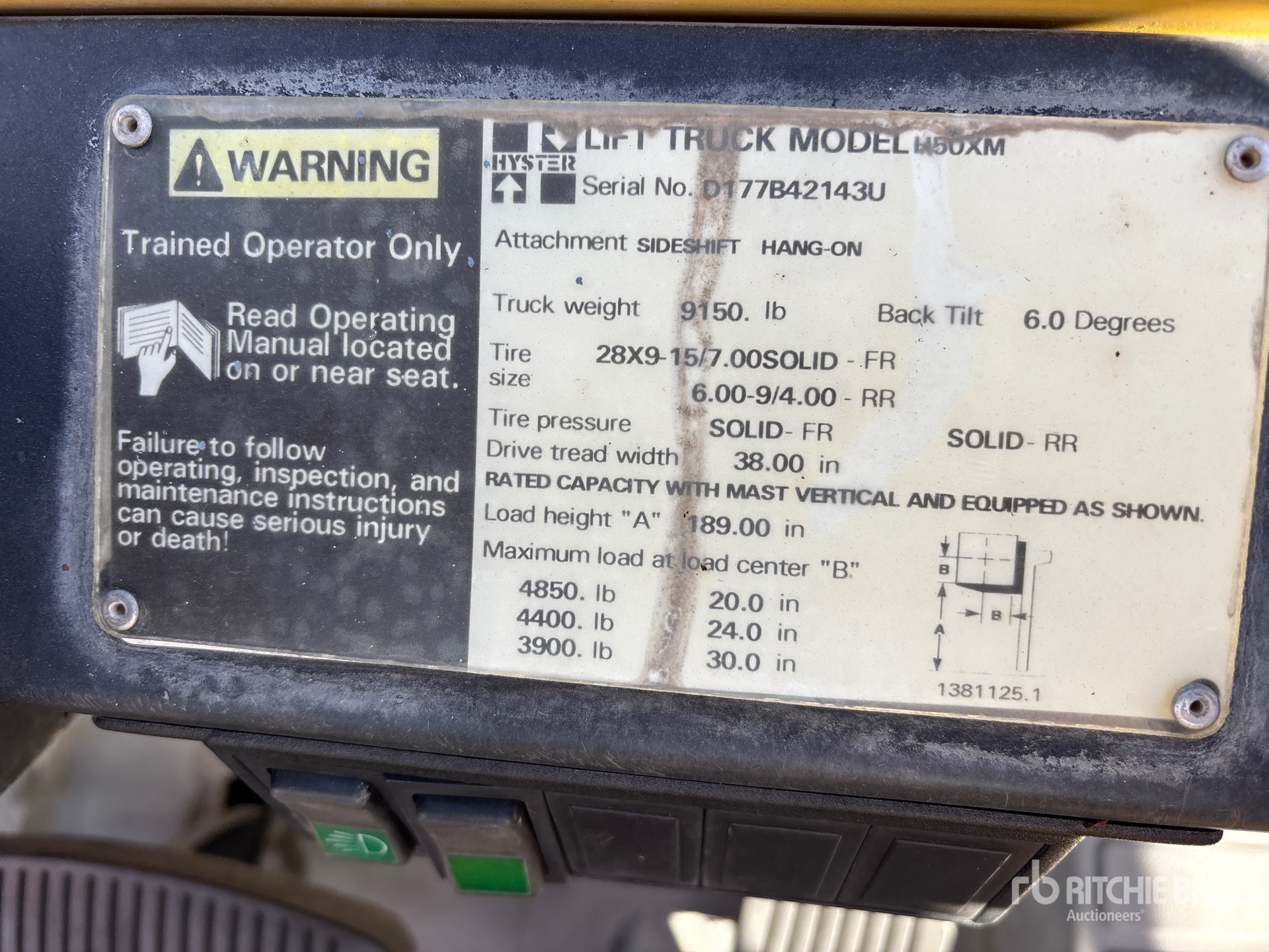 The detailed equipment information is limited in scope, and Ritchie Bros. Auctioneers has not inspected any aspects or components of the equipment other than those expressly set forth herein. Unless expressly stated, we make no representations or warranties, express or implied, concerning the equipment or its components, including without limitation any representations or warranties concerning functionality, conformity or compliance with any safety standard or requirement of any applicable authority or regulatory body, fitness for any particular purpose, or merchantability. You are strongly advised to perform your own detailed inspection of the equipment prior to bidding.