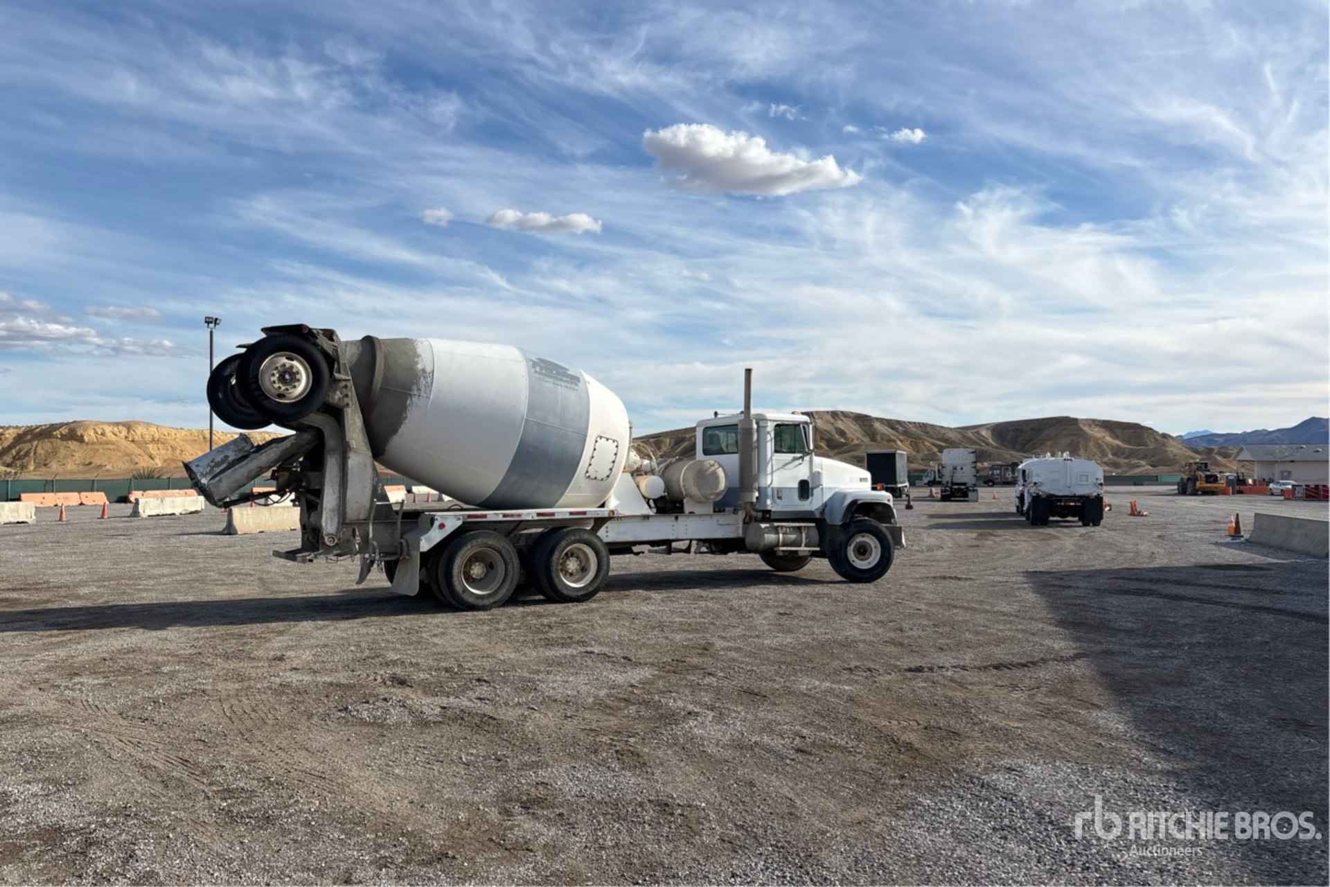 Located in Lane 7 Spot 16, Cummins 6 Cylinder Diesel Engine, 1998 US EPA Label, Eaton Fuller 9-Speed Manual Transmission, 20000 lb Front Axle, 46000 lb Rears, 79200 lb GVWR, 425/65R22.5 Front Tires, 11R22.5 Rear Tires, Steerable Air Lift Tag Axle, Trailing Tag Axle, 252 in Wheelbase, McNeilus 11 cyd Mixer Unit, 3 Removable Chutes