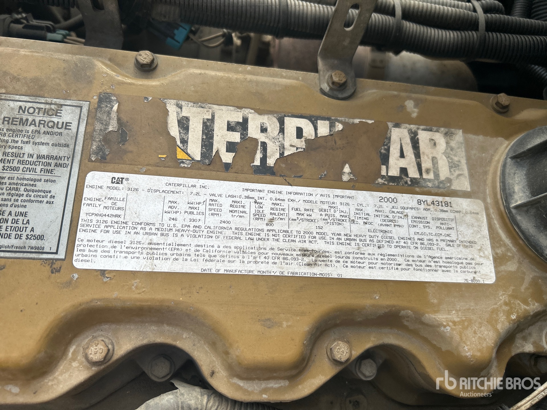 The detailed equipment information is limited in scope, and Ritchie Bros. Auctioneers has not inspected any aspects or components of the equipment other than those expressly set forth herein. Unless expressly stated, we make no representations or warranties, express or implied, concerning the equipment or its components, including without limitation any representations or warranties concerning functionality, conformity or compliance with any safety standard or requirement of any applicable authority or regulatory body, fitness for any particular purpose, or merchantability. You are strongly advised to perform your own detailed inspection of the equipment prior to bidding.