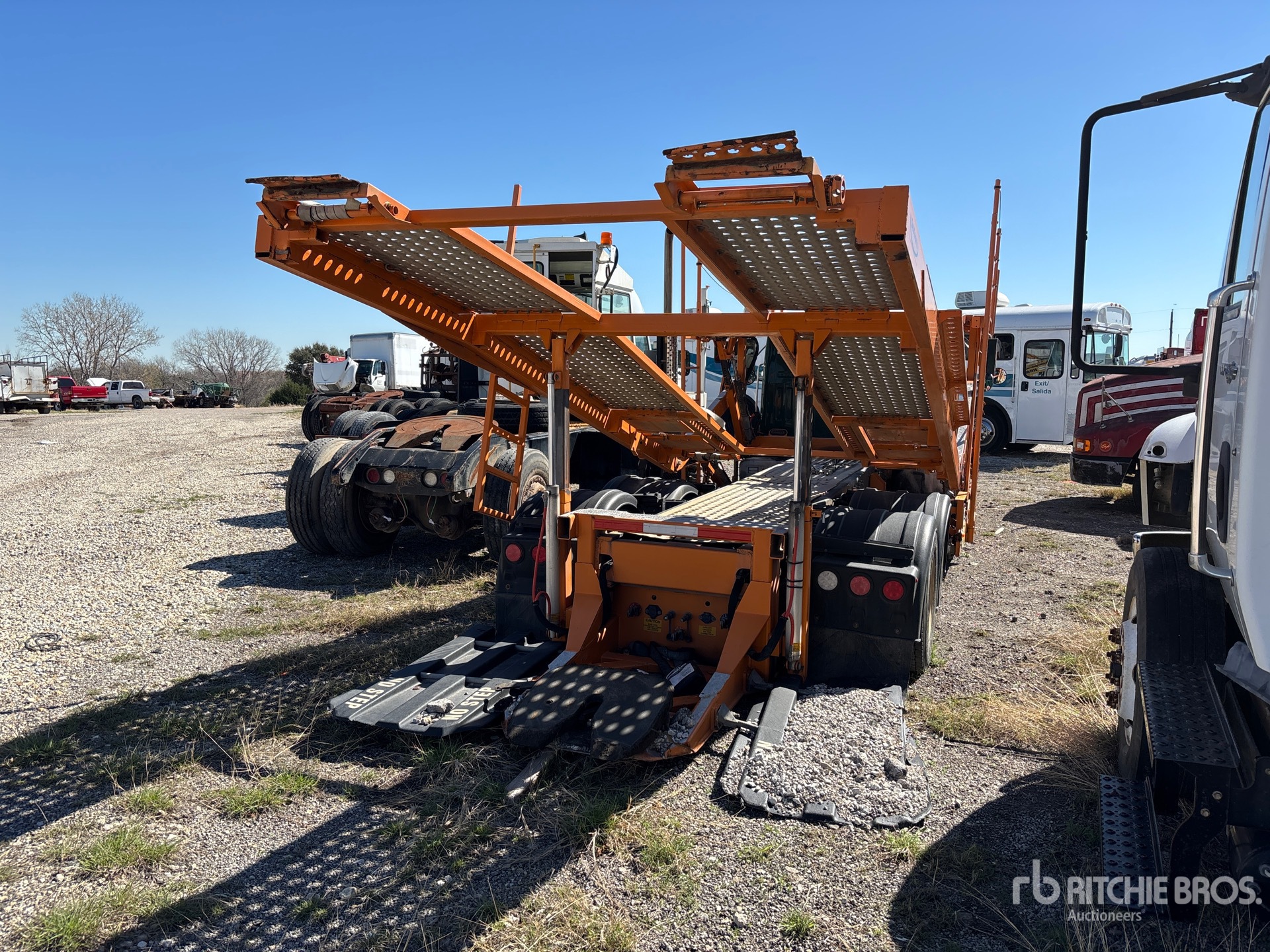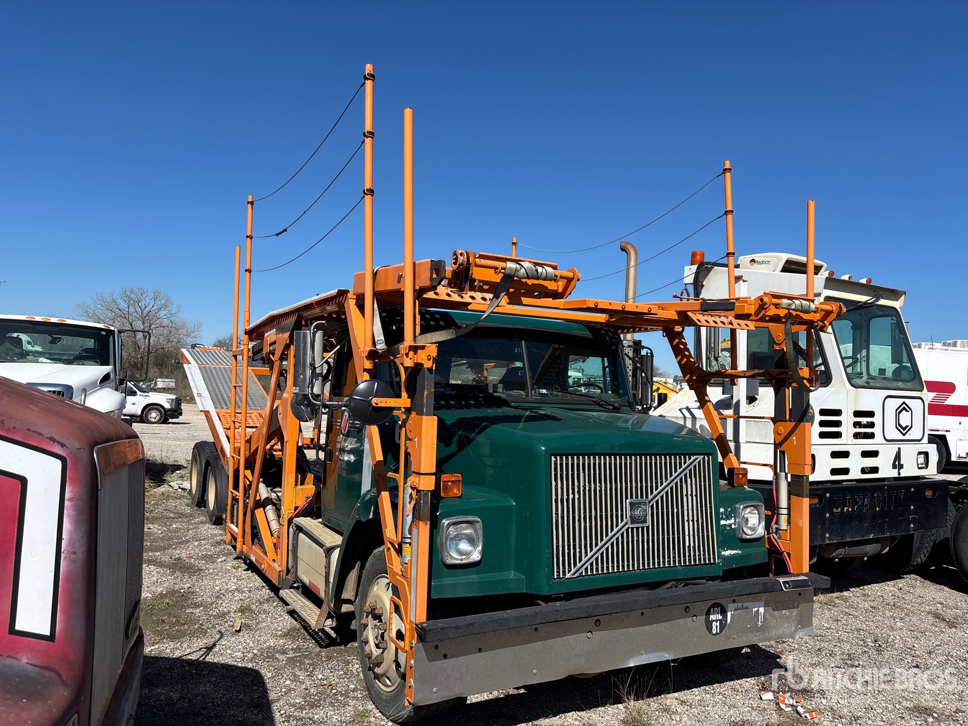 Cummins 6 Cylinder Diesel Engine, Eaton Fuller Manual Transmission, Air Ride Cab, Aluminum Wheels, 295/60R22.5 Front Tires, 265/70R19.5 Rear Tires, Volvo Air Ride Suspension, 250 in Wheelbase, PTO, 2 Vehicle Capacity, Hydraulic Lift, Soft Tie Downs