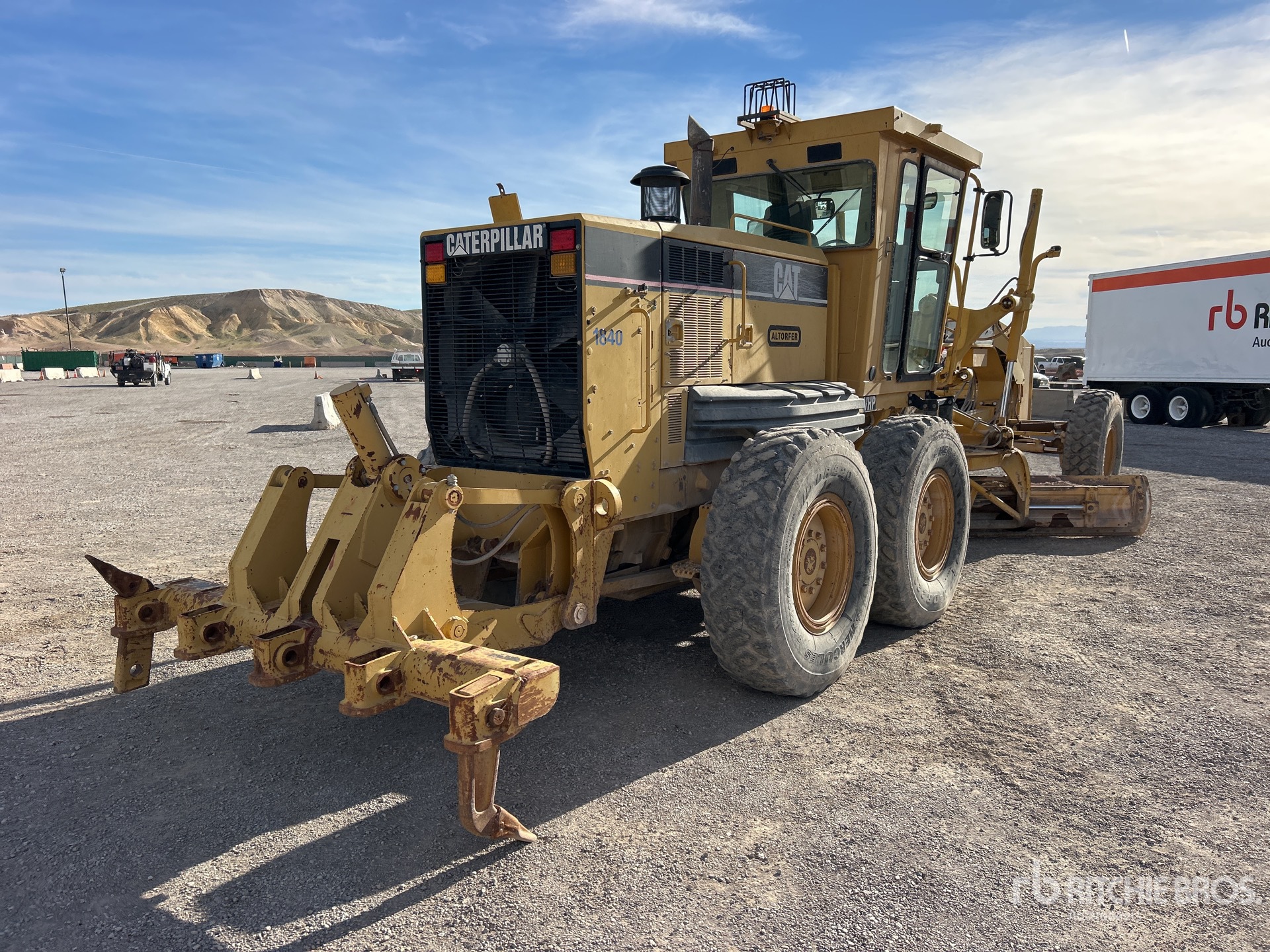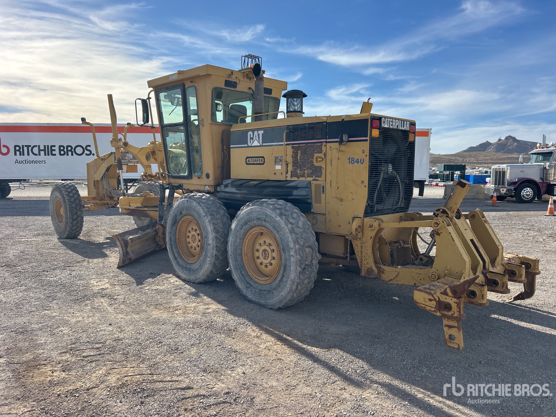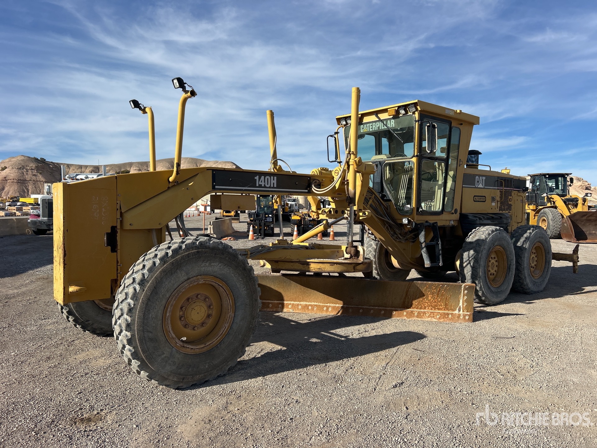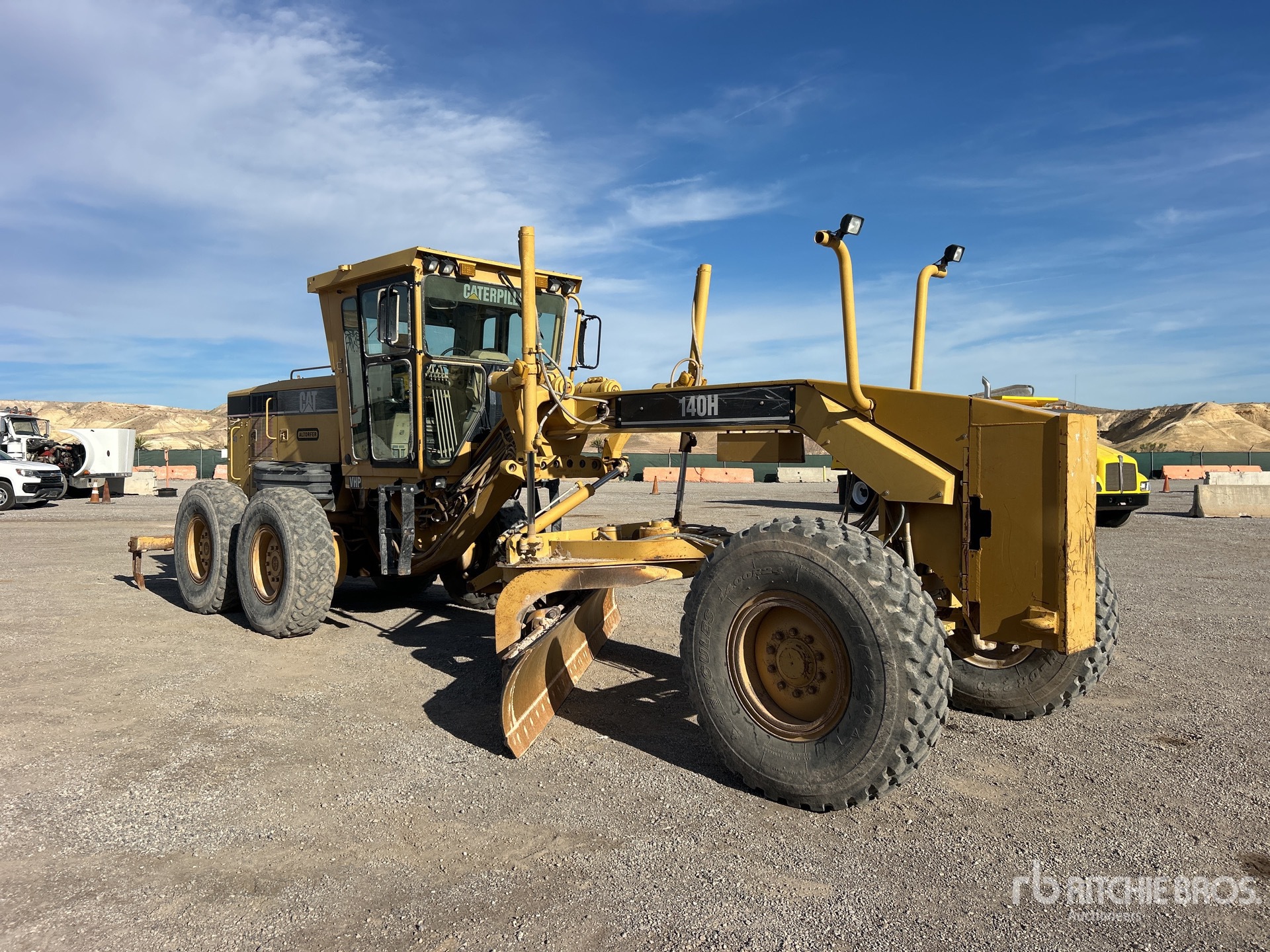 Enclosed Cab, Air Ride Seat, 2004 US EPA Label, 14 ft / 4.27 m Moldboard, Push Block, Ripper, 14.00R24 Tires