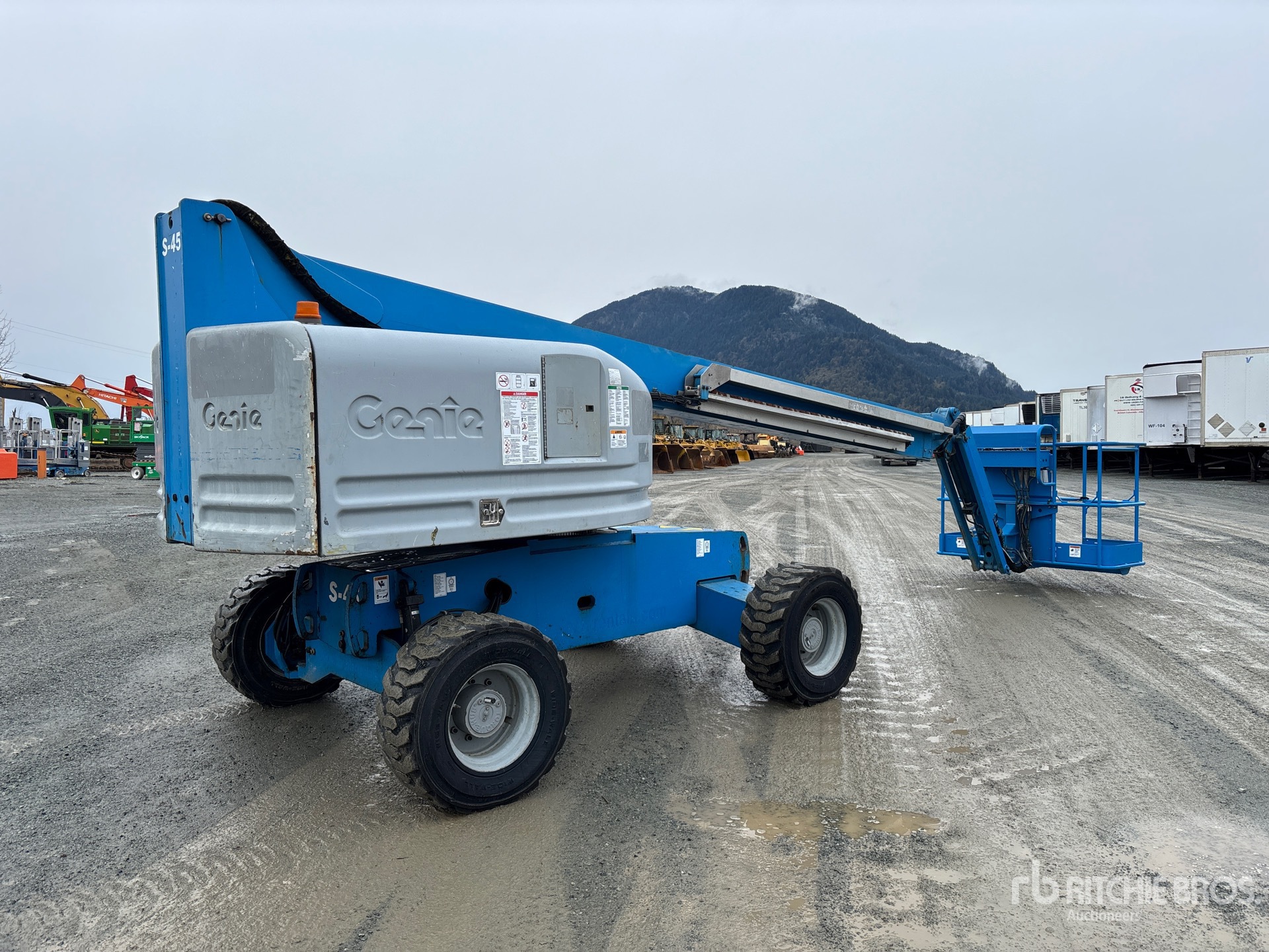 45 ft Max Platform Height, 500 lb Max Weight Capacity, Jib, Power to Platform, Ford 4 Cylinder Dual Fuel Engine, 12-16.6 NHS Tires