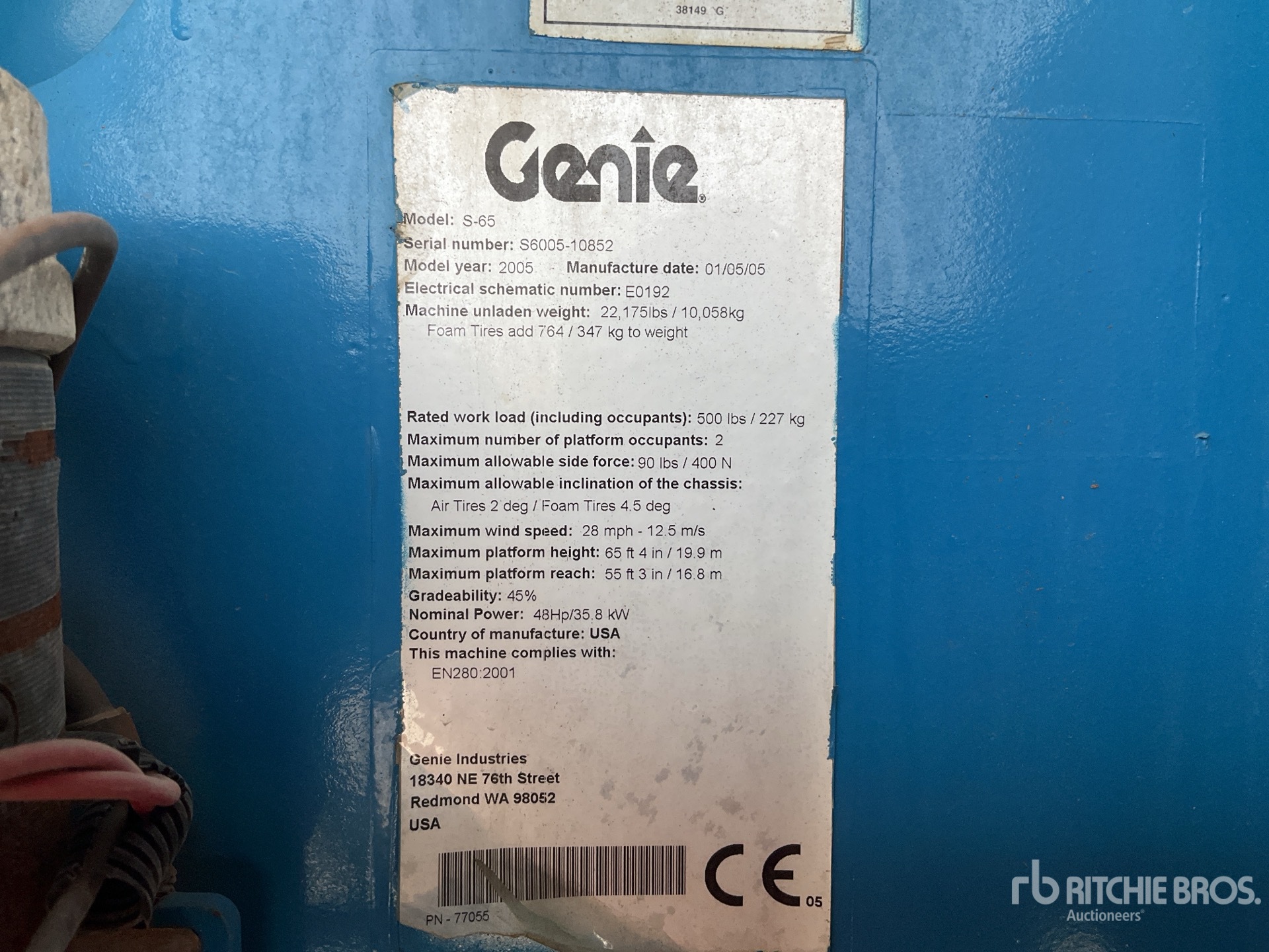The detailed equipment information is limited in scope, and Ritchie Bros. Auctioneers has not inspected any aspects or components of the equipment other than those expressly set forth herein. Unless expressly stated, we make no representations or warranties, express or implied, concerning the equipment or its components, including without limitation any representations or warranties concerning functionality, conformity or compliance with any safety standard or requirement of any applicable authority or regulatory body, fitness for any particular purpose, or merchantability. You are strongly advised to perform your own detailed inspection of the equipment prior to bidding.