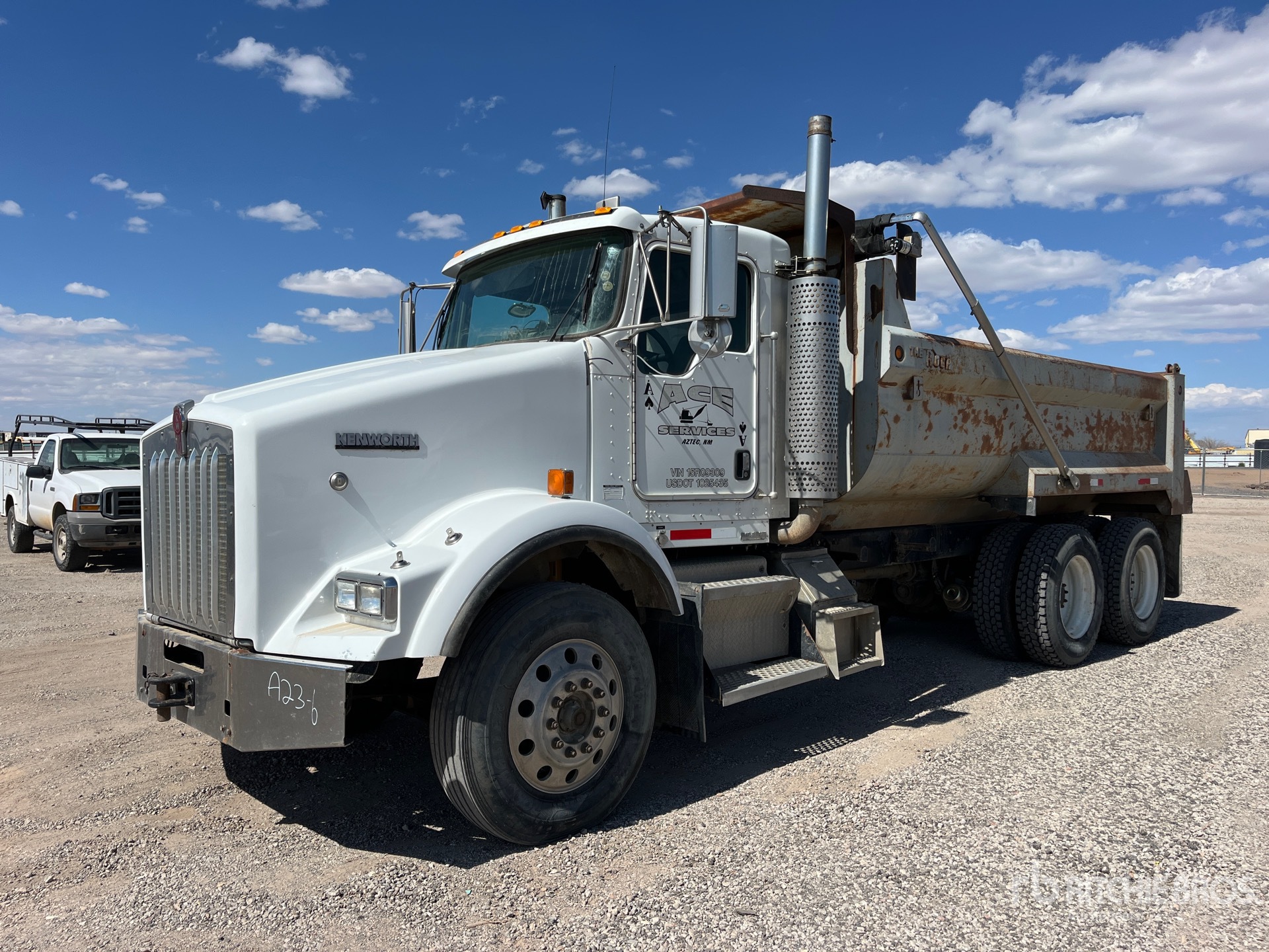 Cat C15 6 Cylinder Diesel 435 hp Engine, Eaton Fuller 8LL Manual Transmission, 11R24.5, Rubber over Walking Beam Suspension, 225 in Wheelbase, PTO, 16 ft Long x 3 ft High Steel Body, Round Bottom, Electric Roll Tarp