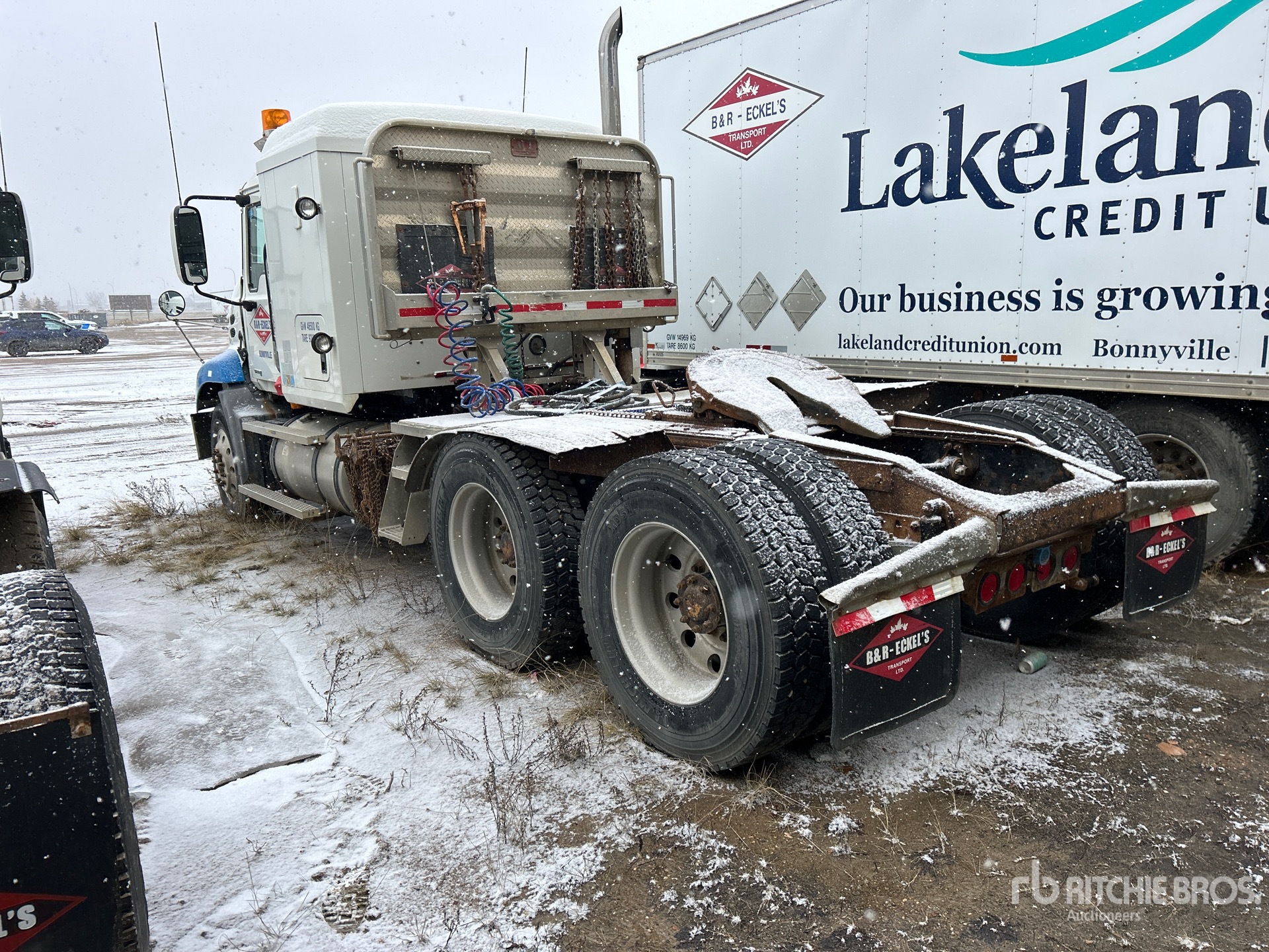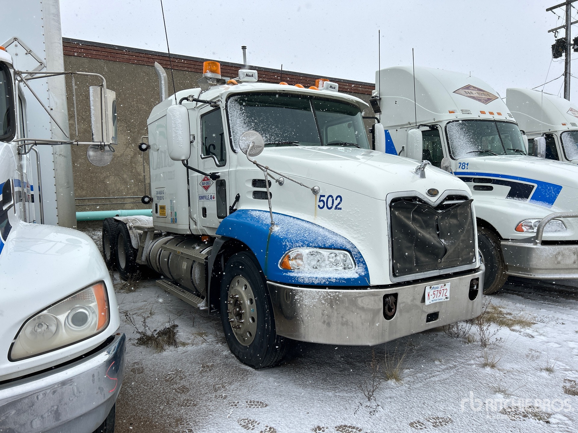 Mack 460 hp Engine, Positive Air Shutoff, 2004 US EPA Label, 17602 Engine hrs, Eaton Fuller 18-Speed Manual Transmission, 5443 kg Front Axle, 20866 kg Rears, 26309 kg GVWR, Engine Brake, Double Differential Locks, 48 in Mid Roof Sleeper Cab, 210 in Wheelbase, Air Suspension, Aluminum Wheels, 11R24.5, Wet Kit, Air Sliding 5th Wheel, Dual Fuel Tanks, Headache Rack