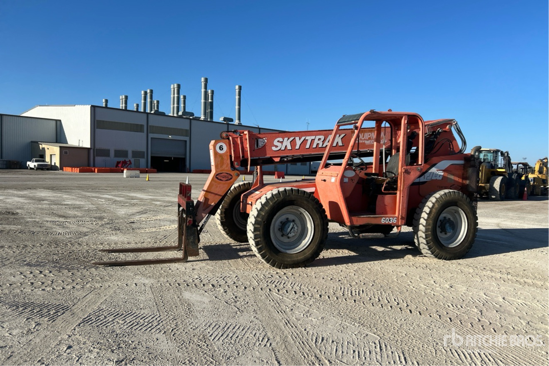 Open Operator Station, 36 ft Max Lift Height, 6000 lb Max Lift Capacity, 2006 US EPA Label, 48 in Forks, Manual Coupler, Frame Leveling, Auxiliary Hydraulic Plumbing, 13.00-24 Tires