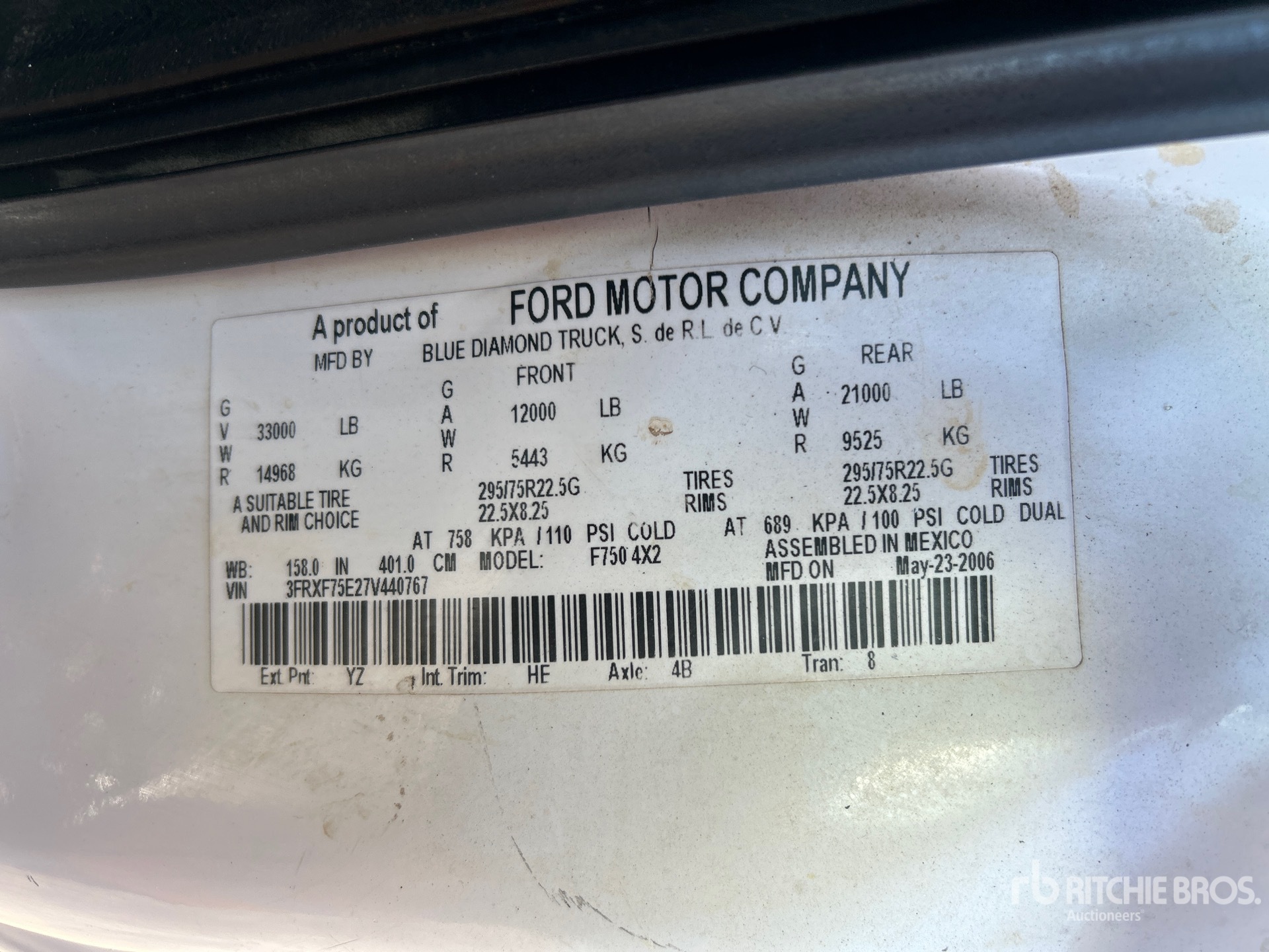 The detailed equipment information is limited in scope, and Ritchie Bros. Auctioneers has not inspected any aspects or components of the equipment other than those expressly set forth herein. Unless expressly stated, we make no representations or warranties, express or implied, concerning the equipment or its components, including without limitation any representations or warranties concerning functionality, conformity or compliance with any safety standard or requirement of any applicable authority or regulatory body, fitness for any particular purpose, or merchantability. You are strongly advised to perform your own detailed inspection of the equipment prior to bidding.