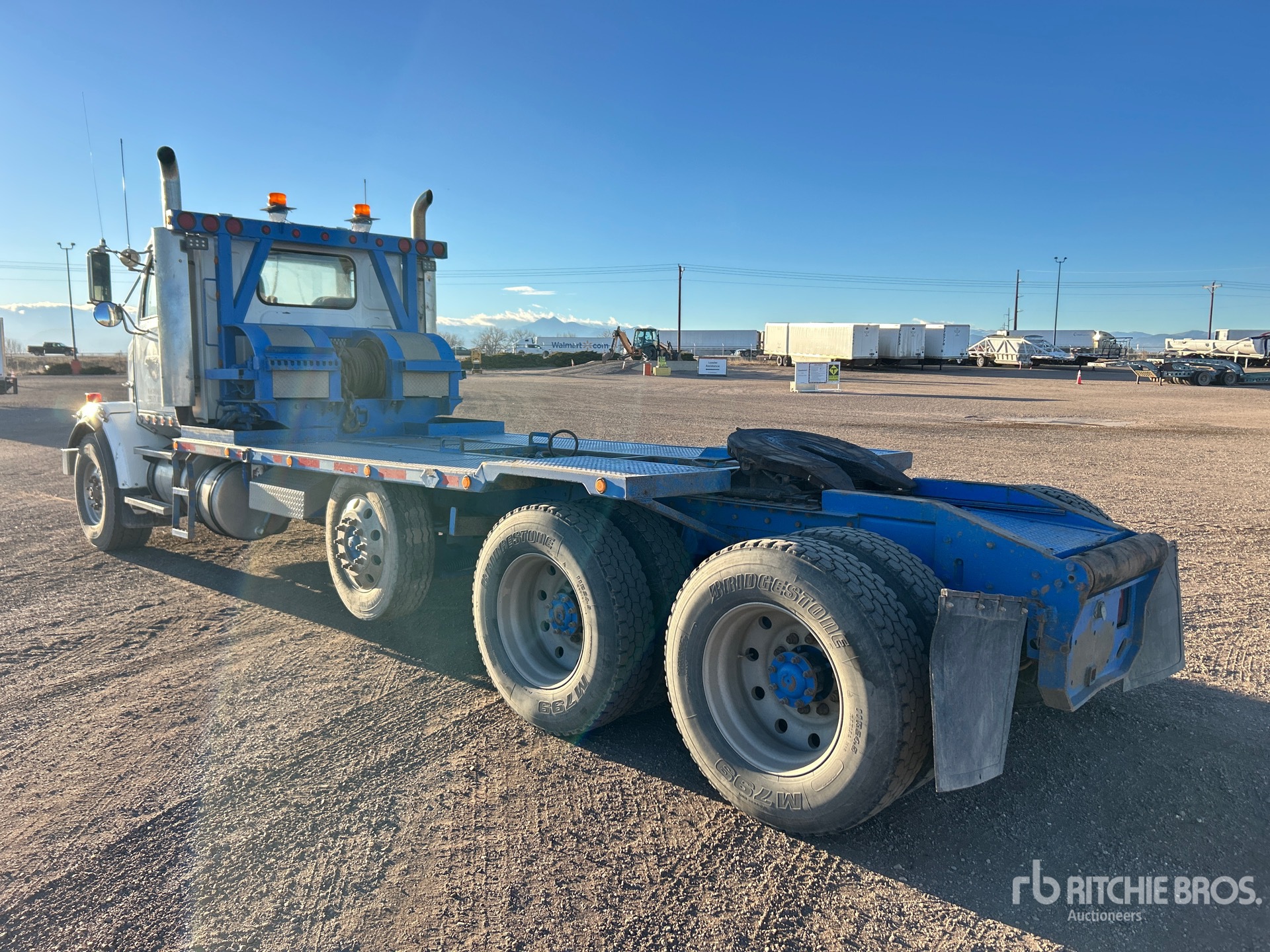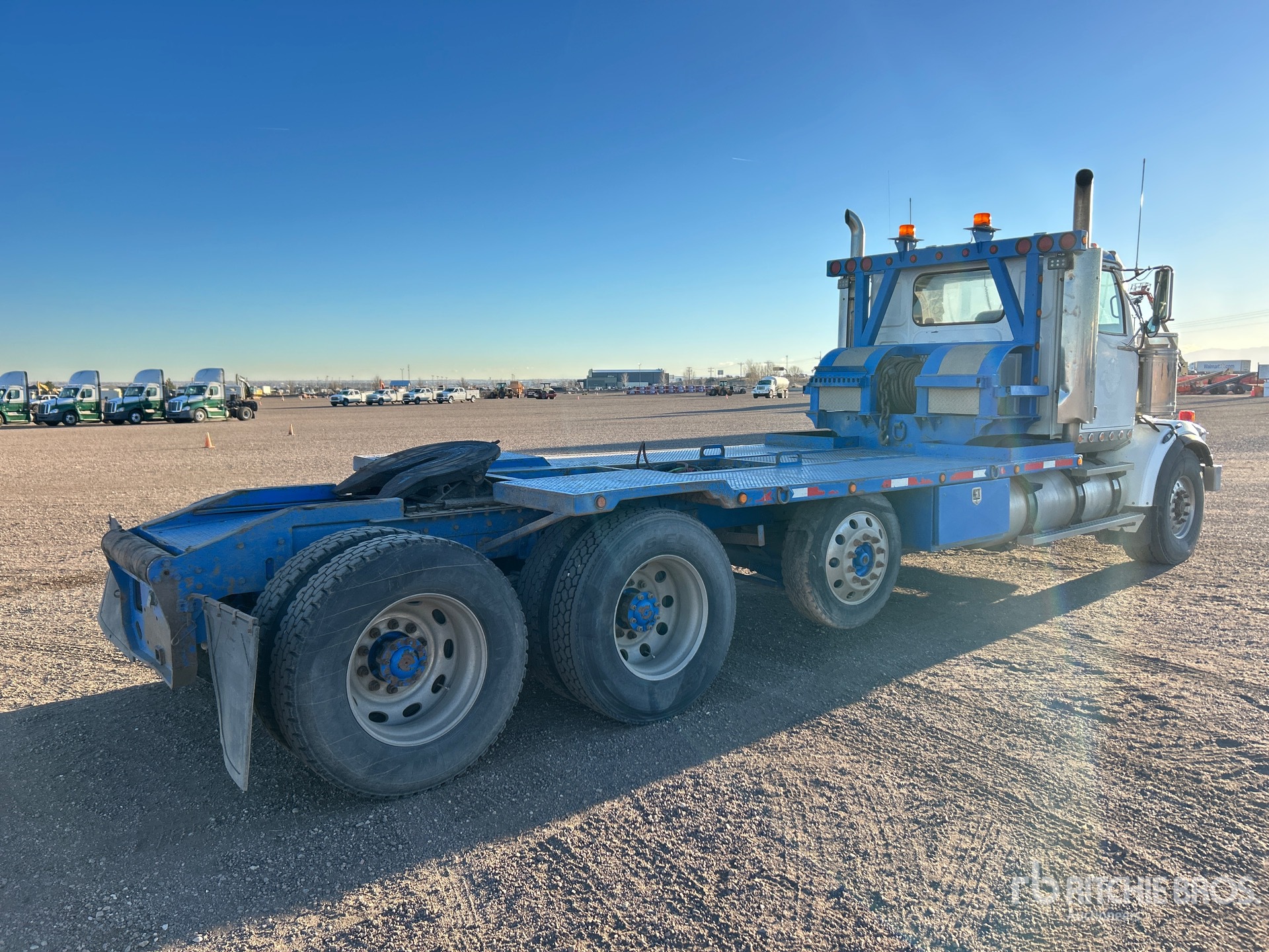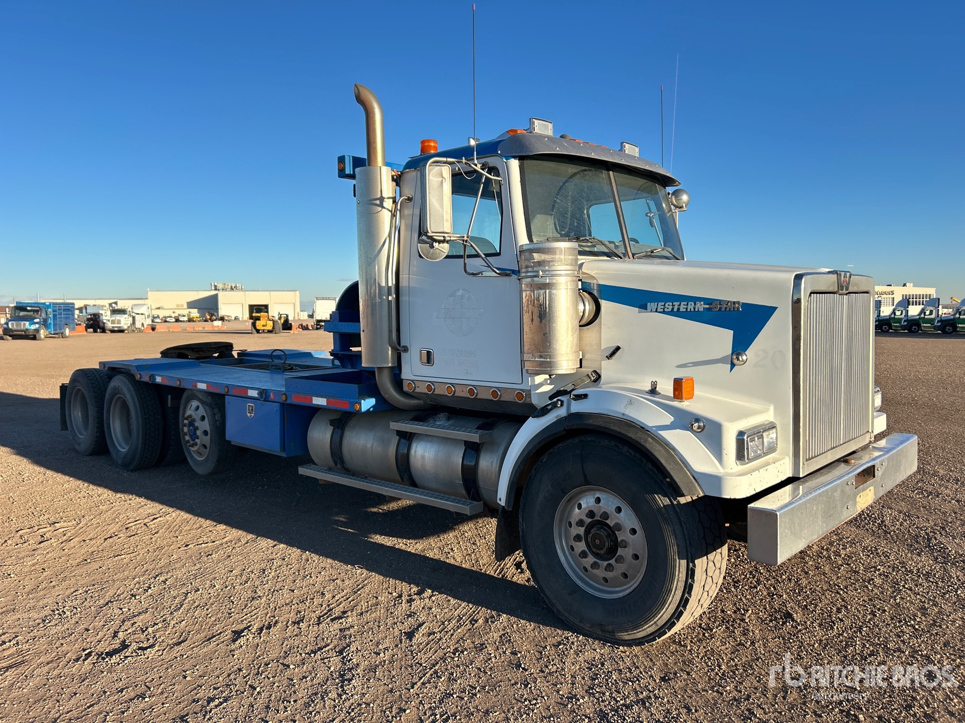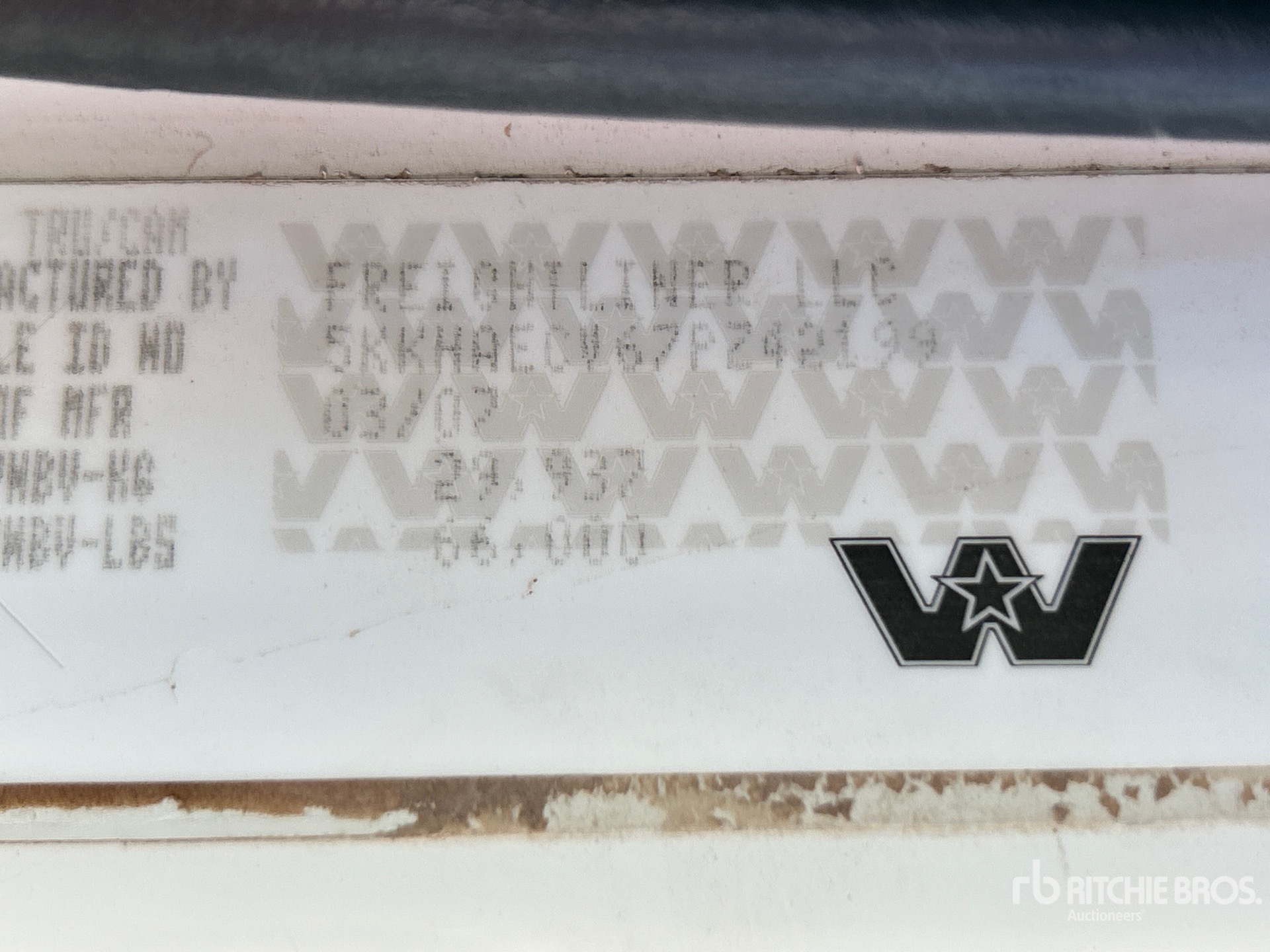 Mercedes-Benz MBE4000 12.8 L Diesel 450 hp Engine, Engine Brake, Eaton Fuller RTO-16908LL 8LL Manual Transmission, Double Differential Locks, Meritor RT-46-160 Drive Axles, 4.10:1 Axle Ratio, Aluminum Wheels, 425/65R22.5 Front Tires, 11R24.5 Rear Tires, Double Frame, Hendrickson Spring over Walking Beam Suspension, 280 in Wheelbase, PTO, 16 ft x 8 in Bed, Live Roll, Rufnek Winch, Lowboy Ramps