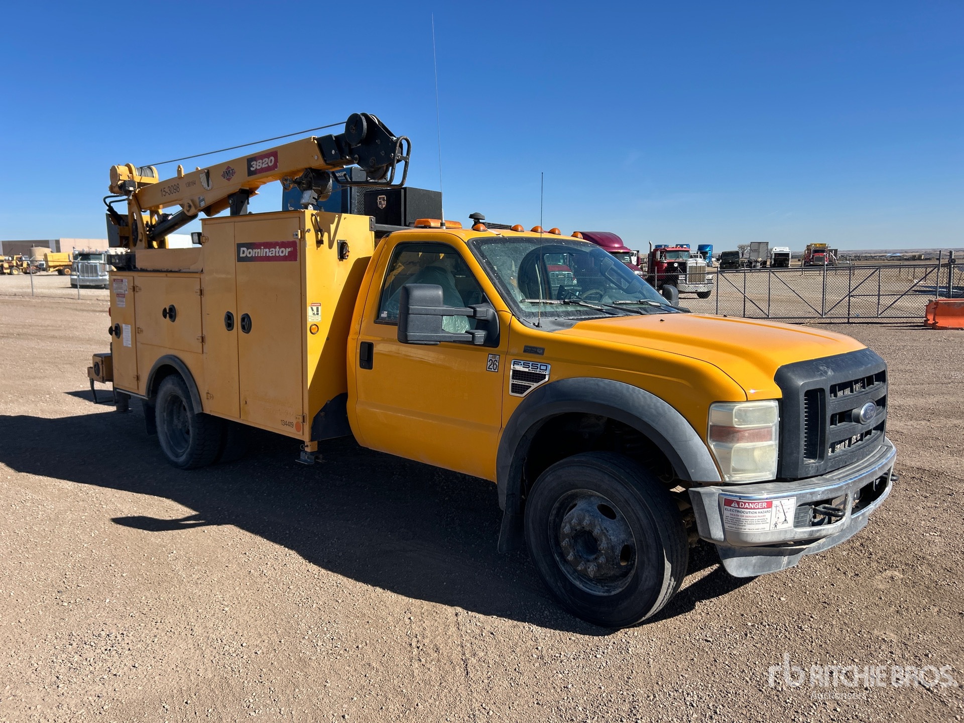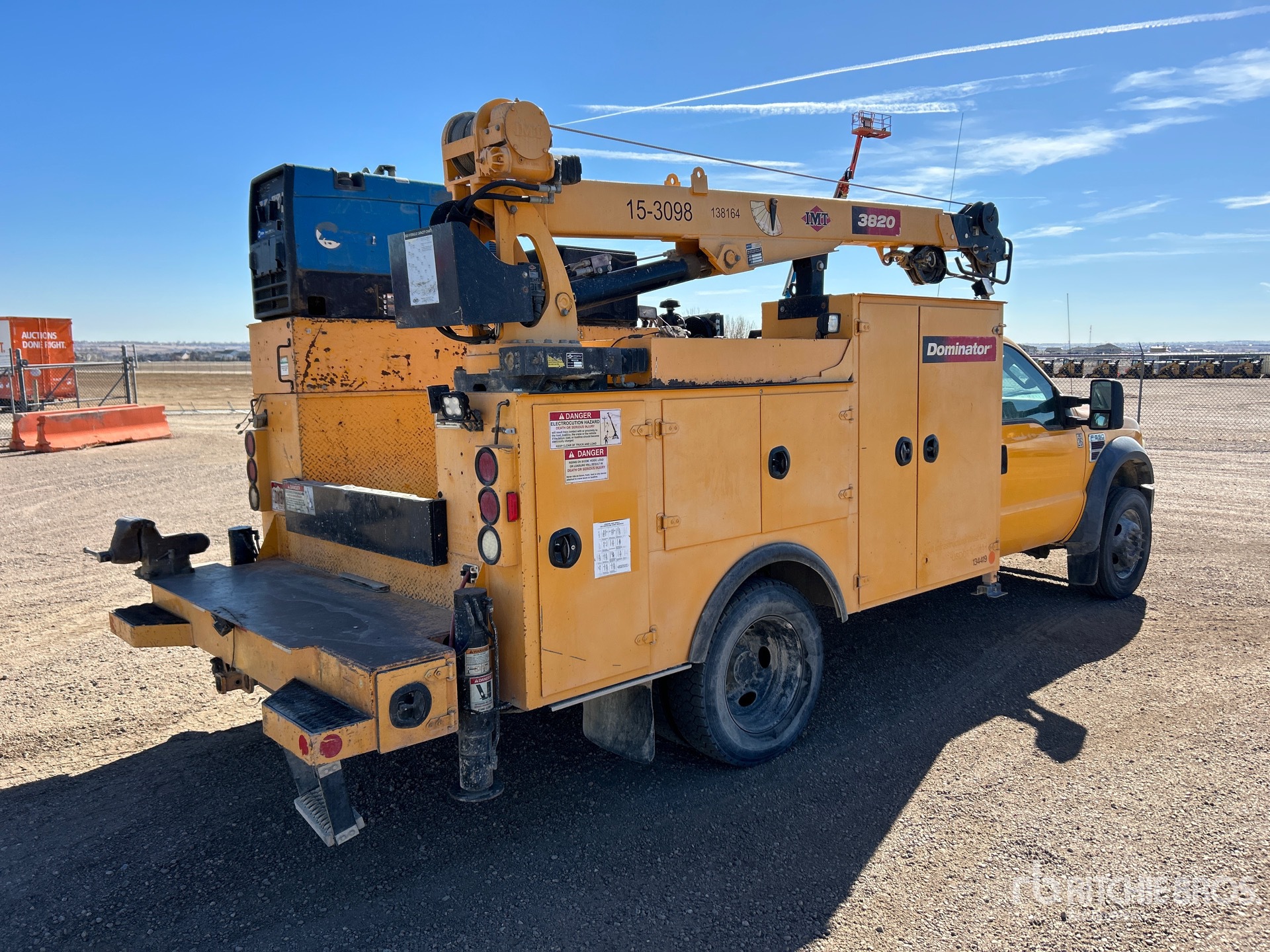 Located in Lane 8 Spot 15, V8 6.4 L Diesel Engine, 2008 US EPA Label, 7985 Engine hrs, Automatic Transmission, 6000 lb Front Axle, 13660 lb Rears, 17950 lb GVWR, 245/70R19.5, Spring Suspension, 165 in Wheelbase, PTO, 11 ft Body, Hydraulic Stabilizers, IMT 3820 7500 lb 3 Section Hydraulic Crane, Wireless Remote Control, IMT Hydraulic Air Compressor, Miller Bobcat 250 11 kW 250 A Gasoline Welder