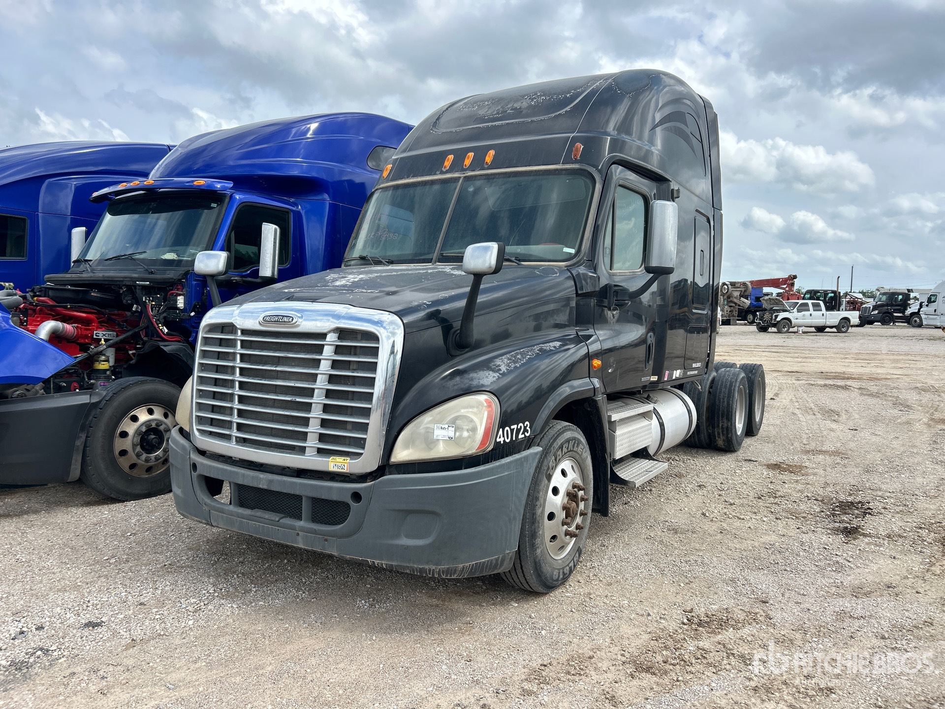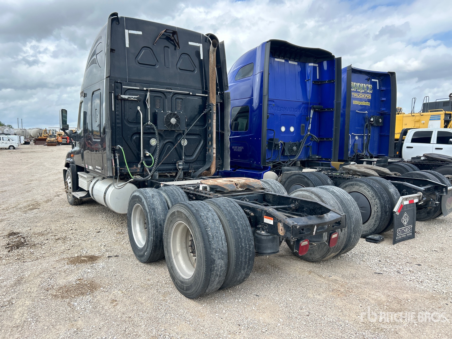 Detroit Series 60 455 hp Engine, 2007 US EPA Label, Eaton Fuller FRO-15210C 10-Speed Manual Transmission, 12000 lb Front Axle, 40000 lb Rears, 52000 lb GVWR, Engine Brake, 70 in High Rise Sleeper Cab, Bunk Beds, Auxiliary Power Unit, 230 in Wheelbase, Air Suspension, Aluminum Wheels, 295/75R22.5, Air Sliding 5th Wheel, Dual Fuel Tanks