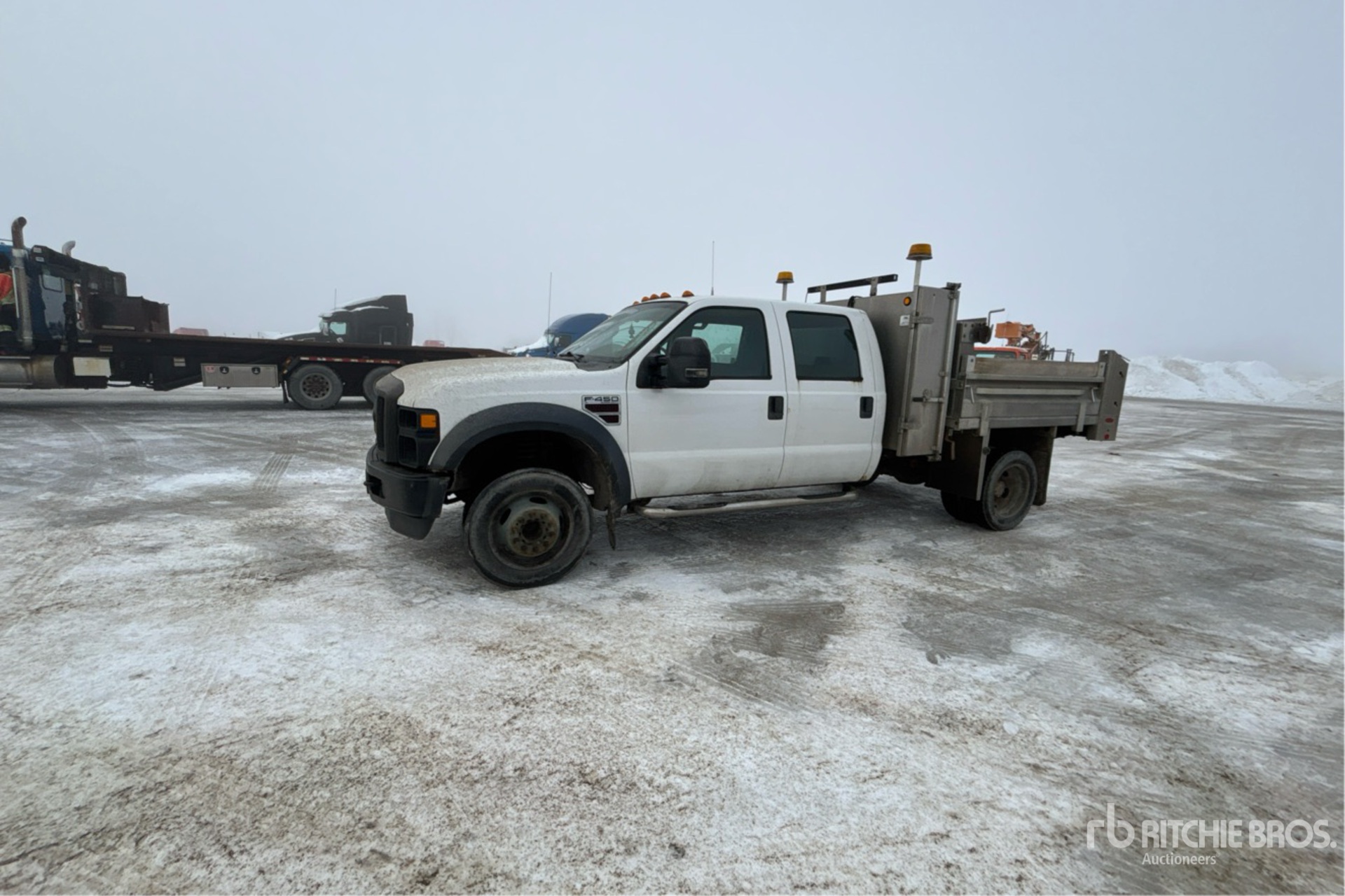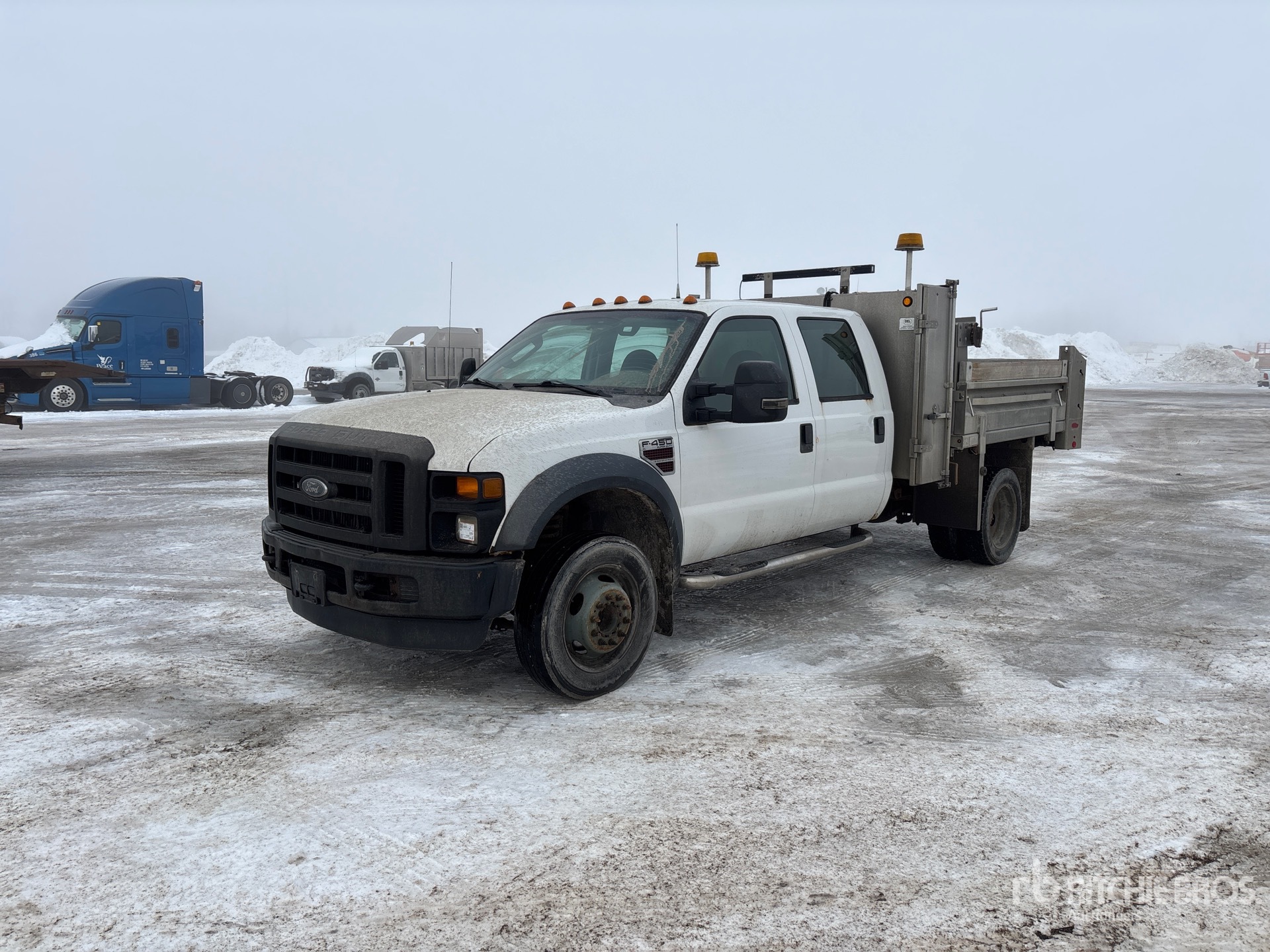 Ford V8 Diesel Engine, Automatic Transmission, 6000 lb Front Axle, 12000 lb Rears, 16500 lb GVWR, 225/70R19.5, Spring Suspension, 177 in Wheelbase, 8 ft Long x 1 ft 7 in High Aluminium Body, Manual Roll Tarp, Pintle Hitch