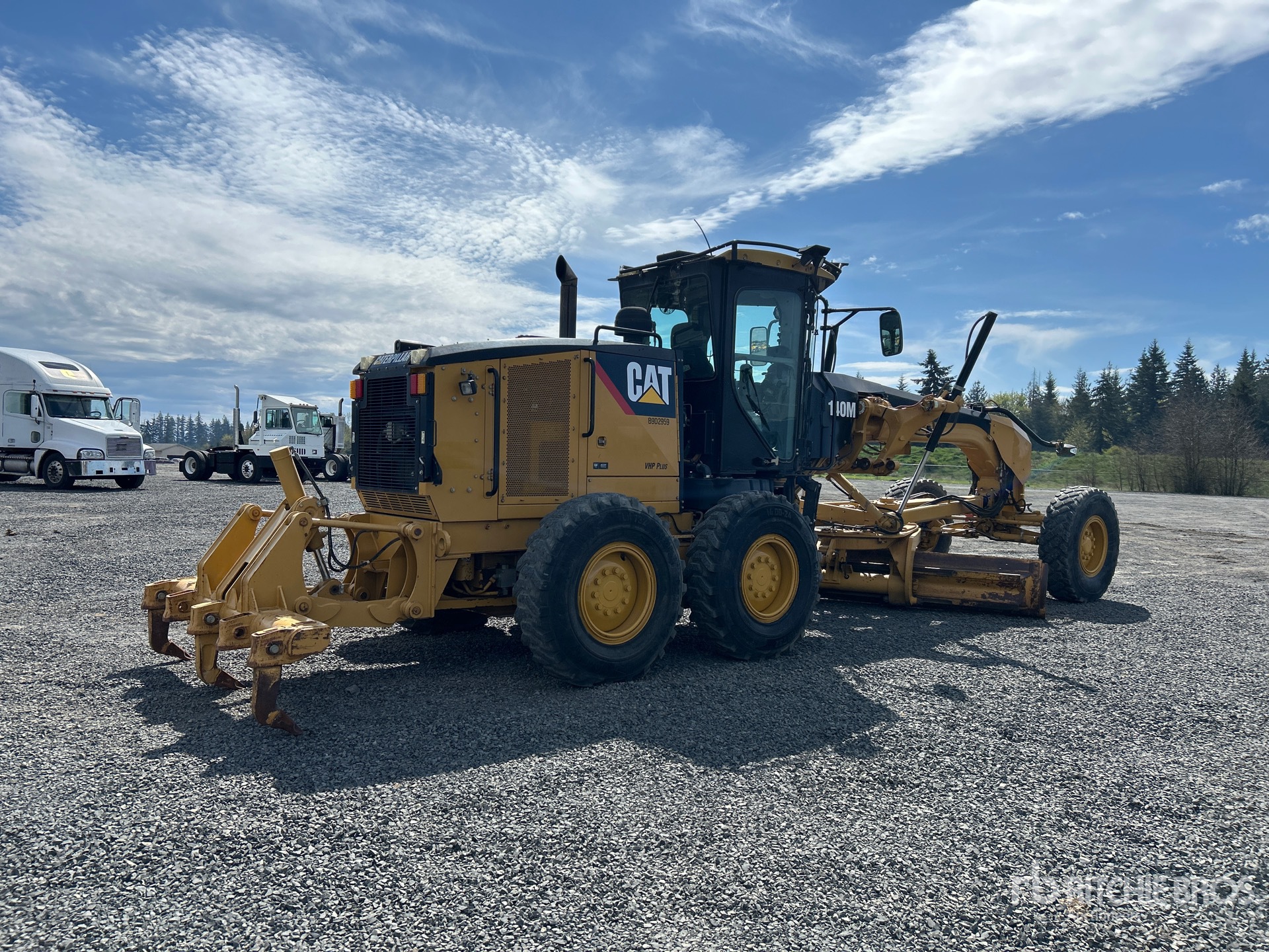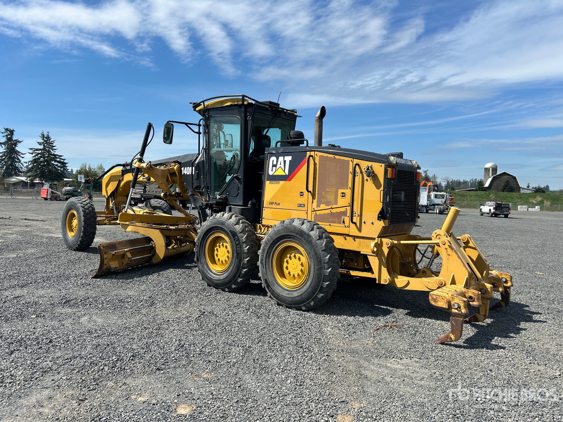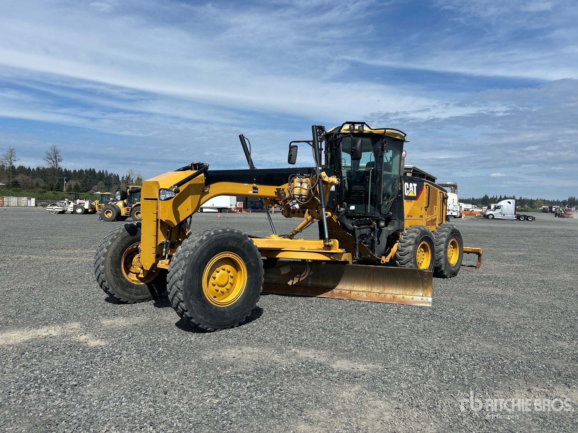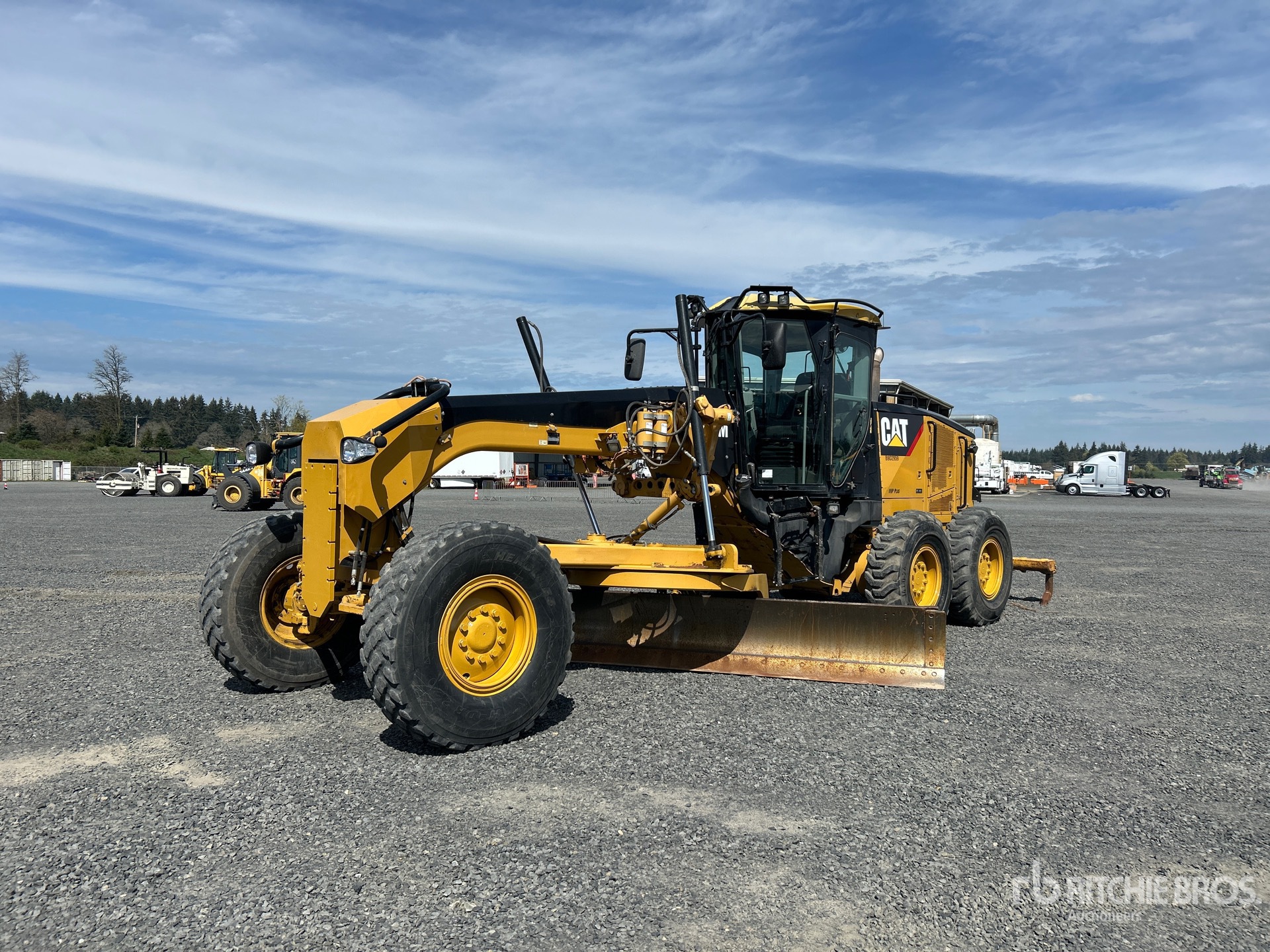 Enclosed Cab, Air Ride Seat, Joystick Steering, Rear View Camera, 2010 US EPA Label, 14 ft / 4.27 m Moldboard, Front Auxiliary Hydraulics, Push Block, Accumulators, Rear Scarifier, 14.00R24 Tires