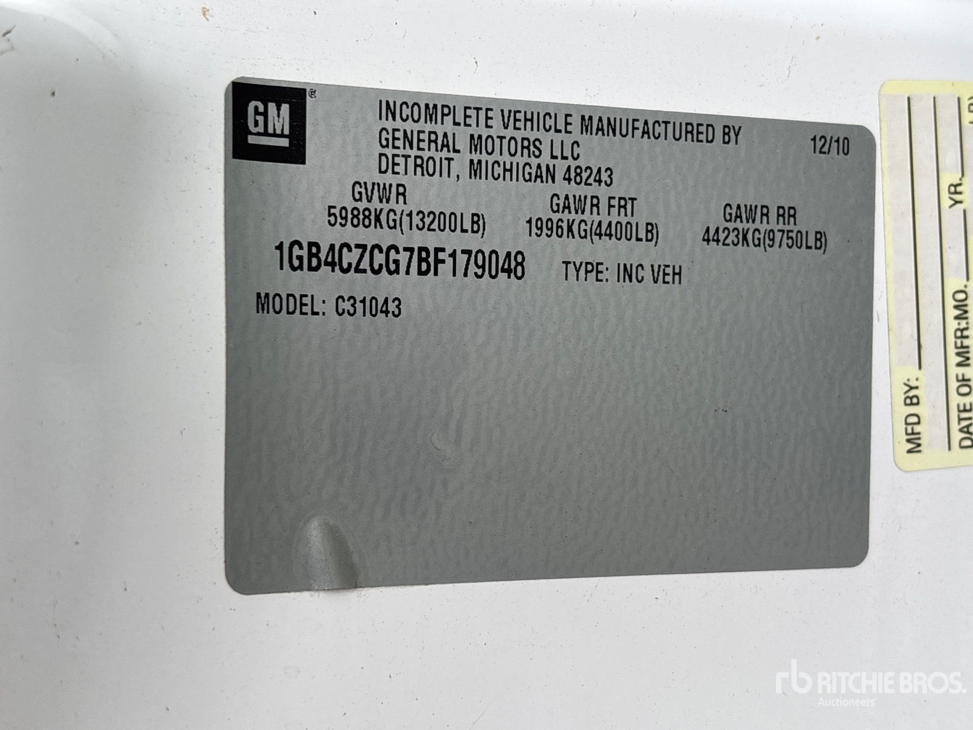 GM Vortec V8 6 L Gasoline Engine, Automatic Transmission, 4400 lb Front Axle, 9750 lb Rears, 13200 lb GVWR, 235/80R17 Front Tires, 235/80R17 Rear Tires, Spring Suspension, 172 in Wheelbase, 10 ft x 93 in Bed