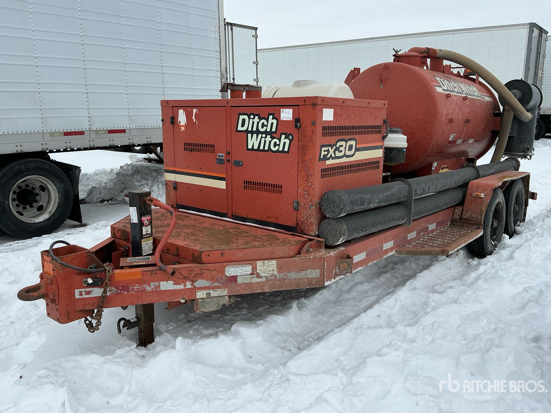 Lunette Ring Hitch, Spring Suspension, Electric Brakes, Ditch Witch Steel Debris Tank, Rear Hose Reel, 200 gal Fresh Water Tank, Full Open Tailgate, Manual Tailgate Locks, 4 in Suction Hose, Engine Driven Pump, 225/75R15 Tires, 5000 lb GVWR