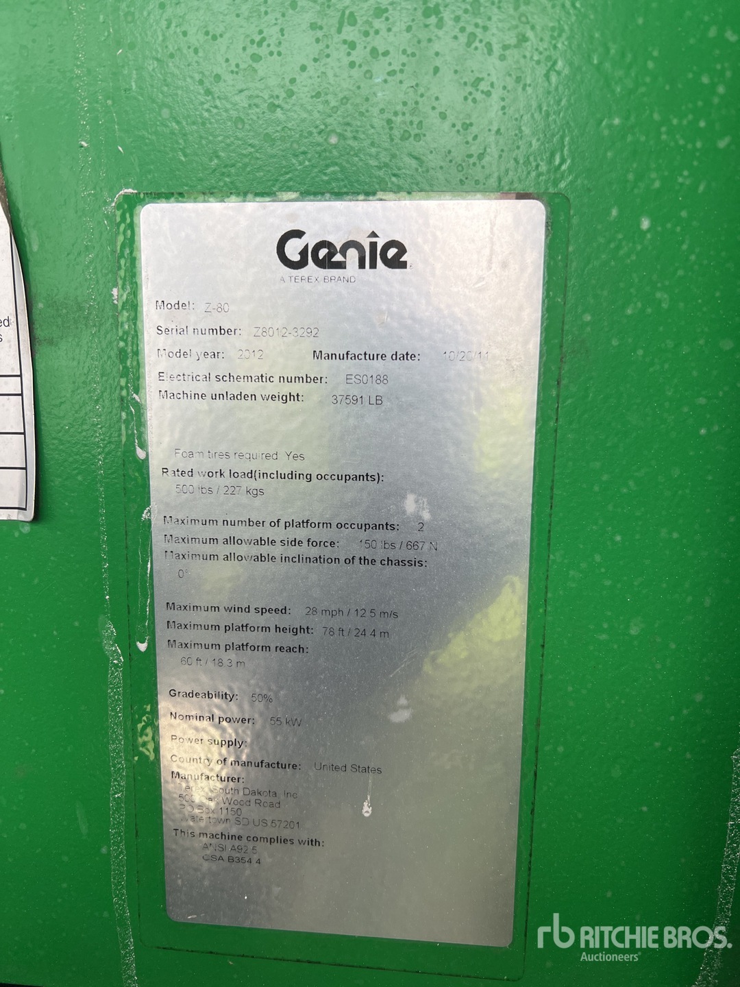 The detailed equipment information is limited in scope, and Ritchie Bros. Auctioneers has not inspected any aspects or components of the equipment other than those expressly set forth herein. Unless expressly stated, we make no representations or warranties, express or implied, concerning the equipment or its components, including without limitation any representations or warranties concerning functionality, conformity or compliance with any safety standard or requirement of any applicable authority or regulatory body, fitness for any particular purpose, or merchantability. You are strongly advised to perform your own detailed inspection of the equipment prior to bidding.