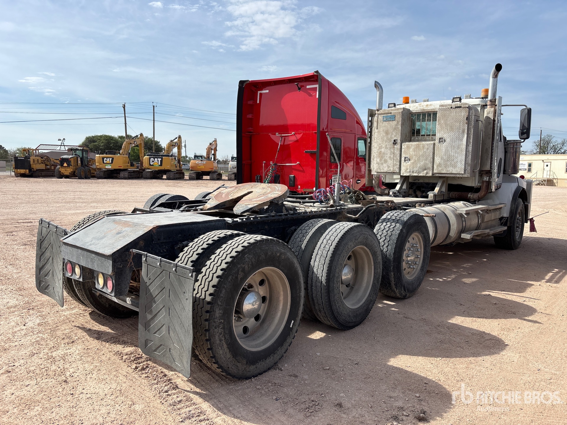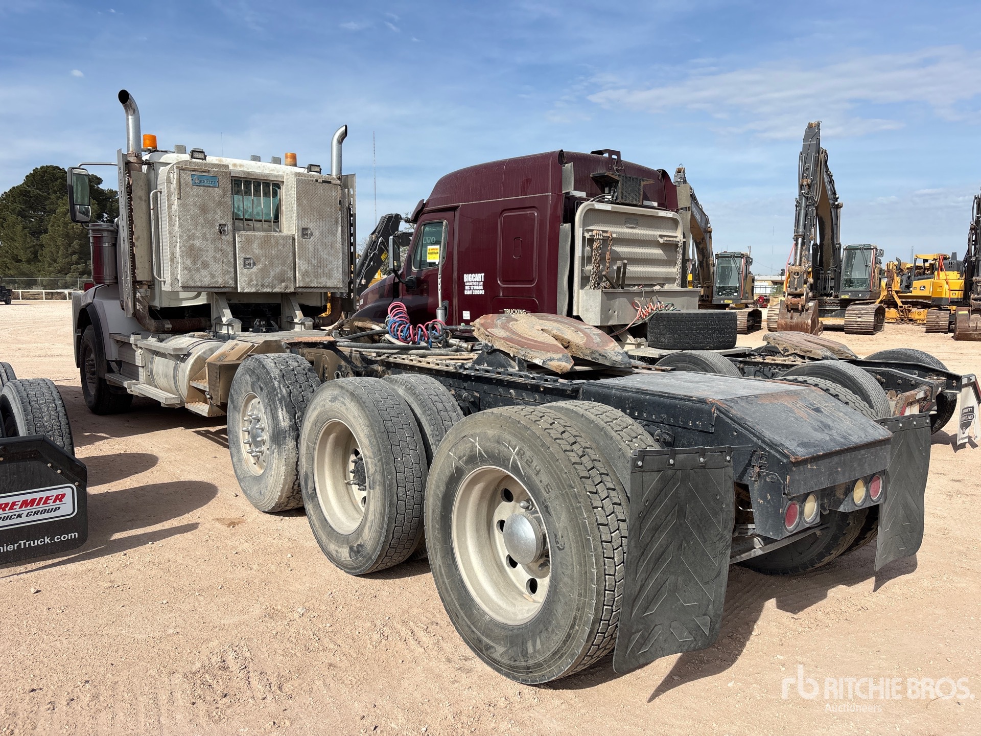 Cummins ISX15 525 hp Engine, Eaton Fuller RTLO-18918B 18-Speed Manual Transmission, 20000 lb Front Axle, Meritor RT-46-164P Drive Axles, 4.10:1 Axle Ratio, 46000 lb Rears, 66000 lb GVWR, Engine Brake, 280 in Wheelbase, Air Suspension, Aluminum Wheels, 425/65R22.5 Front Tires, 11R24.5 Rear Tires, Dual Steering Boxes, Double Frame, Wet Kit, Air Sliding 5th Wheel, Dual Fuel Tanks, Headache Rack, Steerable Air Lift Pusher Axle