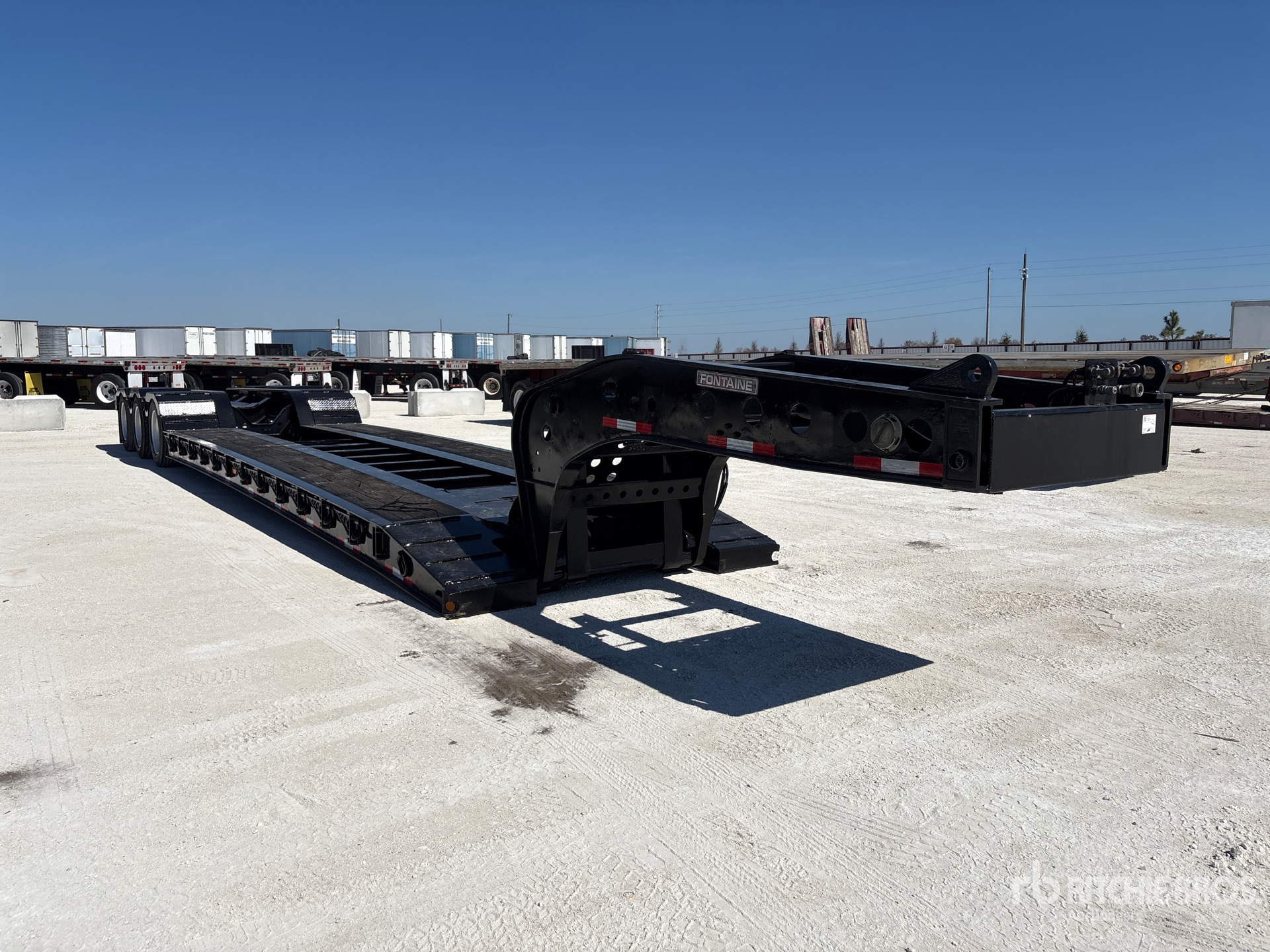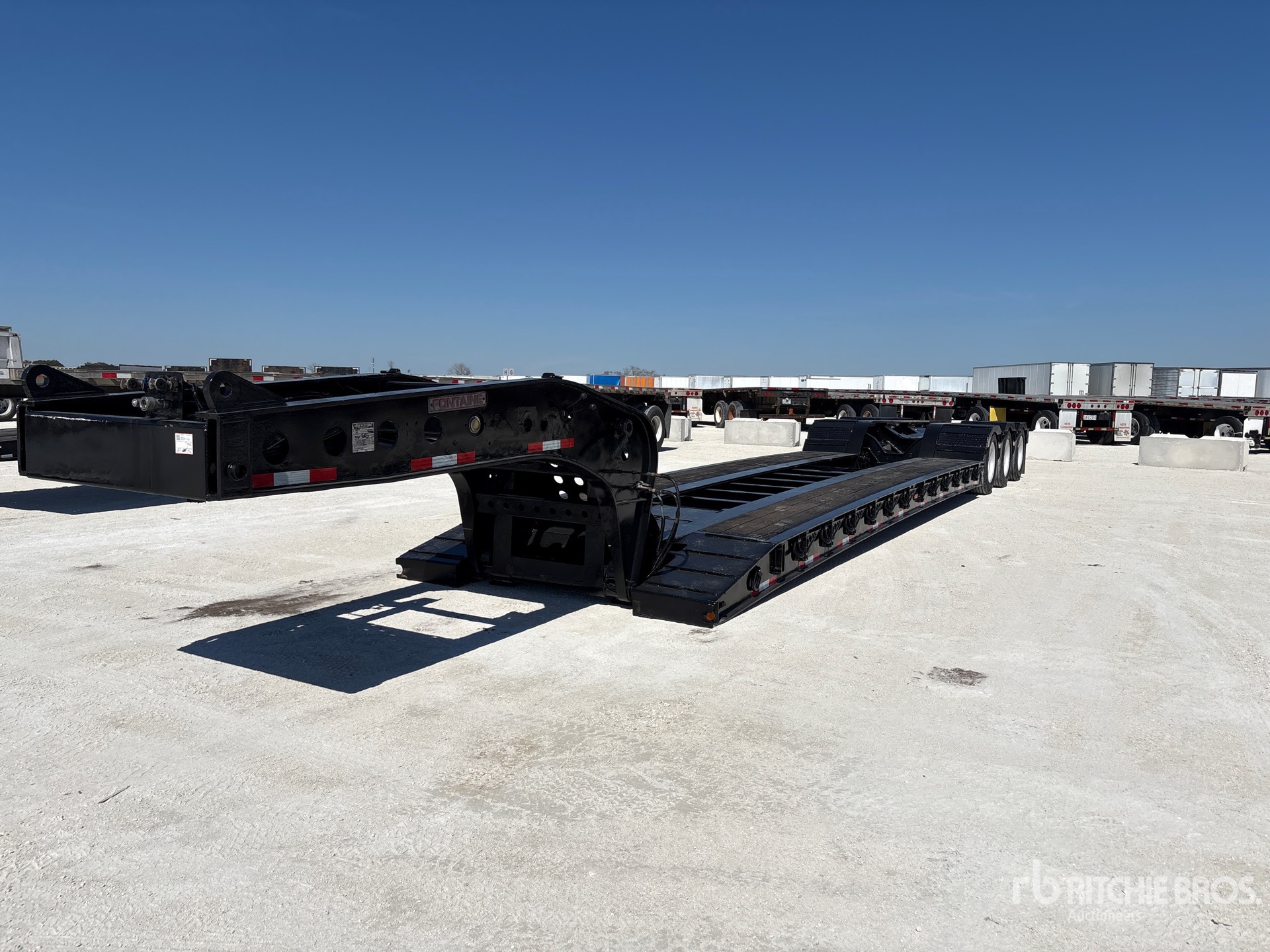 133800 lb GVWR, Hydraulic Removable Gooseneck, 25 ft 8 in x 102 in Main Deck, Deck Over Tires, Folding Side Extensions, Air Ride Suspension, Plumbed for Booster Axle