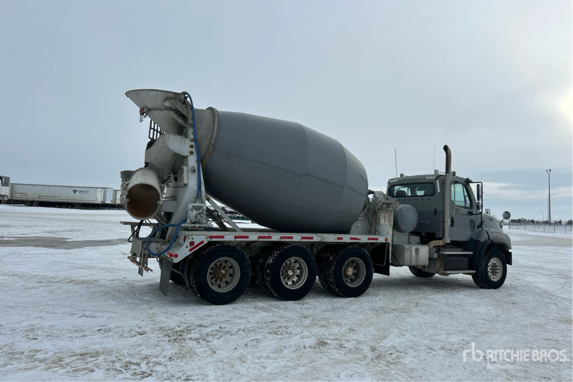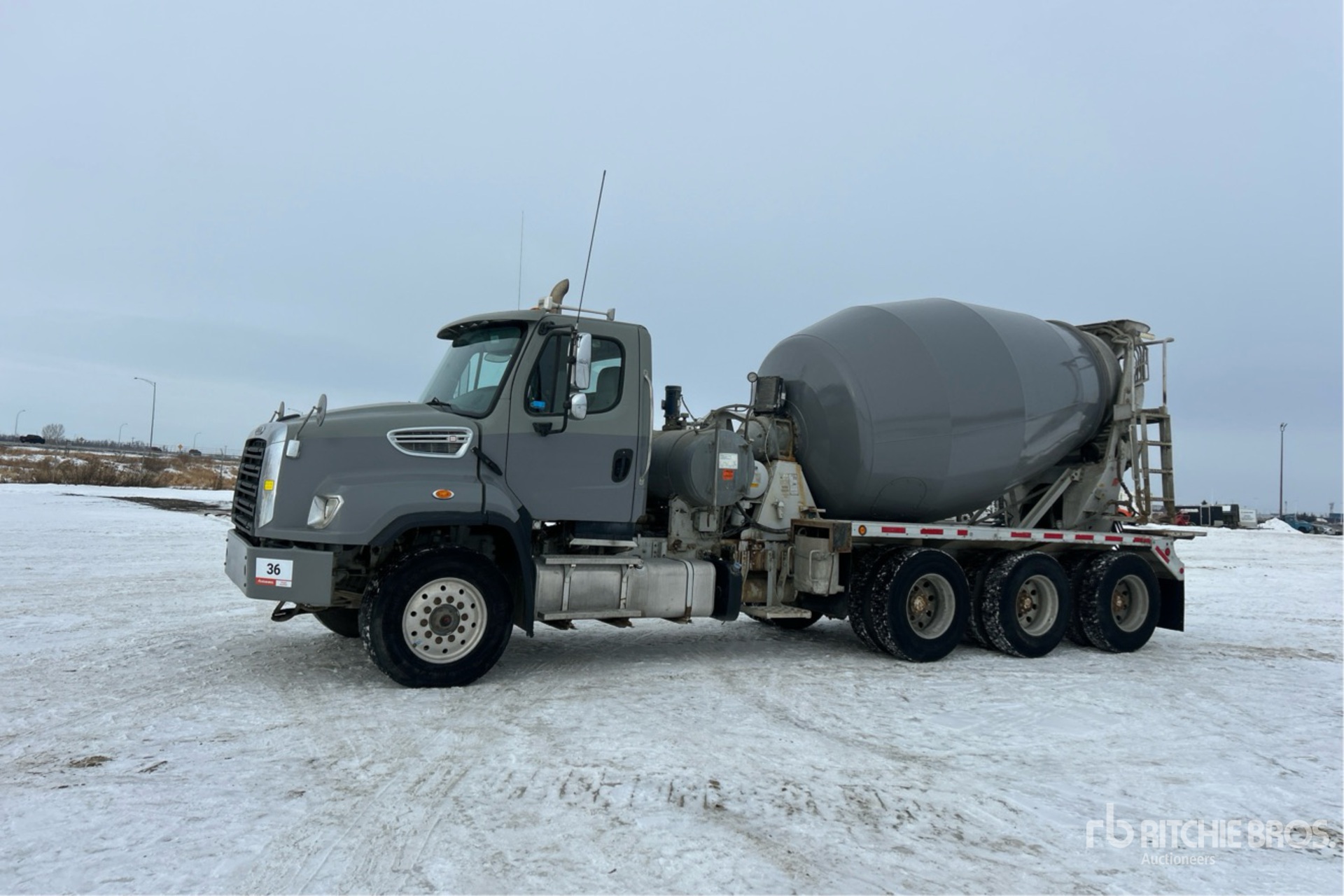 Located in Lane 39 Spot 5, Detroit DD13 6 Cylinder 12.8 L Diesel Engine, 2012 US EPA Label, 4207 Engine hrs, Engine Brake, Automatic Transmission, Triple Differential Locks, 18740 lb Front Axle, 56250 lb Rears, 74990 lb GVWR, Aluminum Wheels, 385/65R22.5 Front Tires, 11R22.5 Rear Tires, Airliner Air Ride Suspension, 232 in Wheelbase, PTO, Con-Tech Mixer Unit, Cordless Remote Control