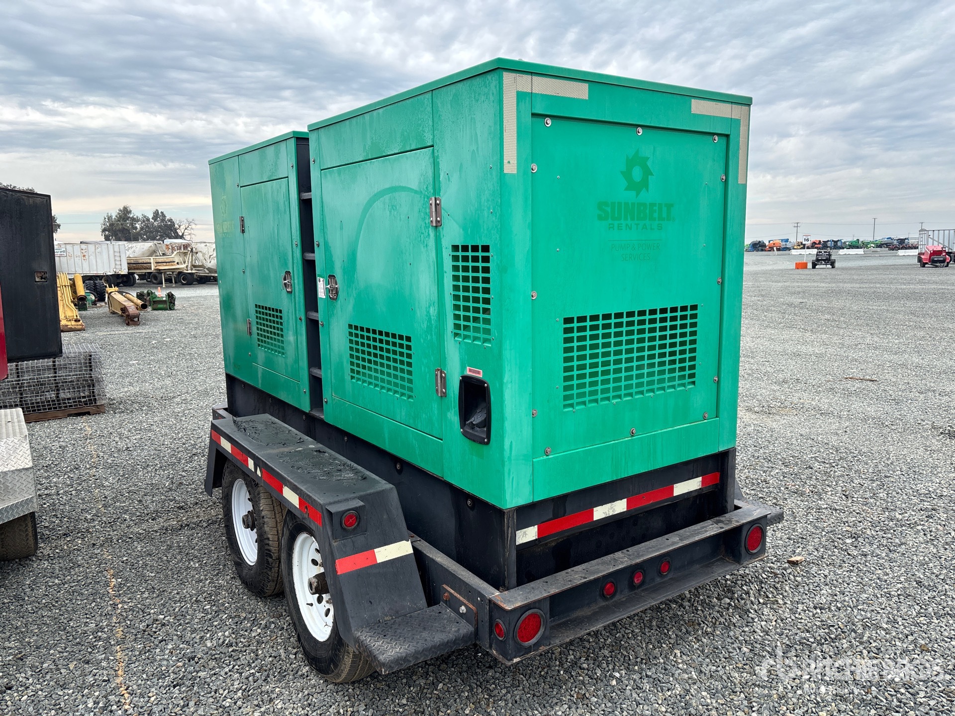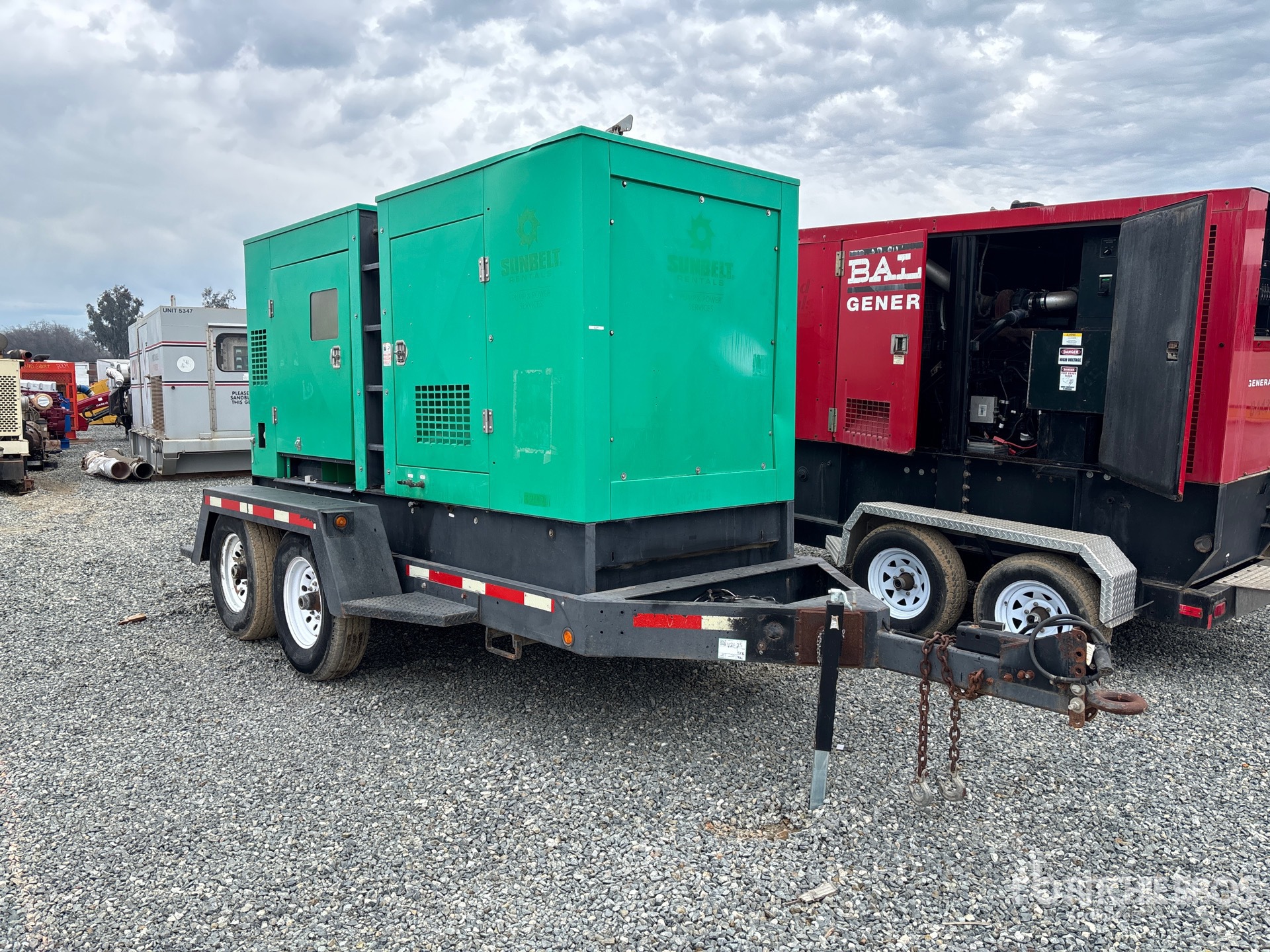 John Deere 6 Cylinder 6.8 L Diesel Engine, 237 kVA/190 kW Rated 3 Phase Output, 480 V / 208 V Rated Voltage, 190 kVA,/190 kW, Rated Single Phase Output, 240 V Rated Voltage, 240 V & 120 V Receptacles, Sound Attenuated, Lunette Ring Carrier Trailer, Electric Brakes