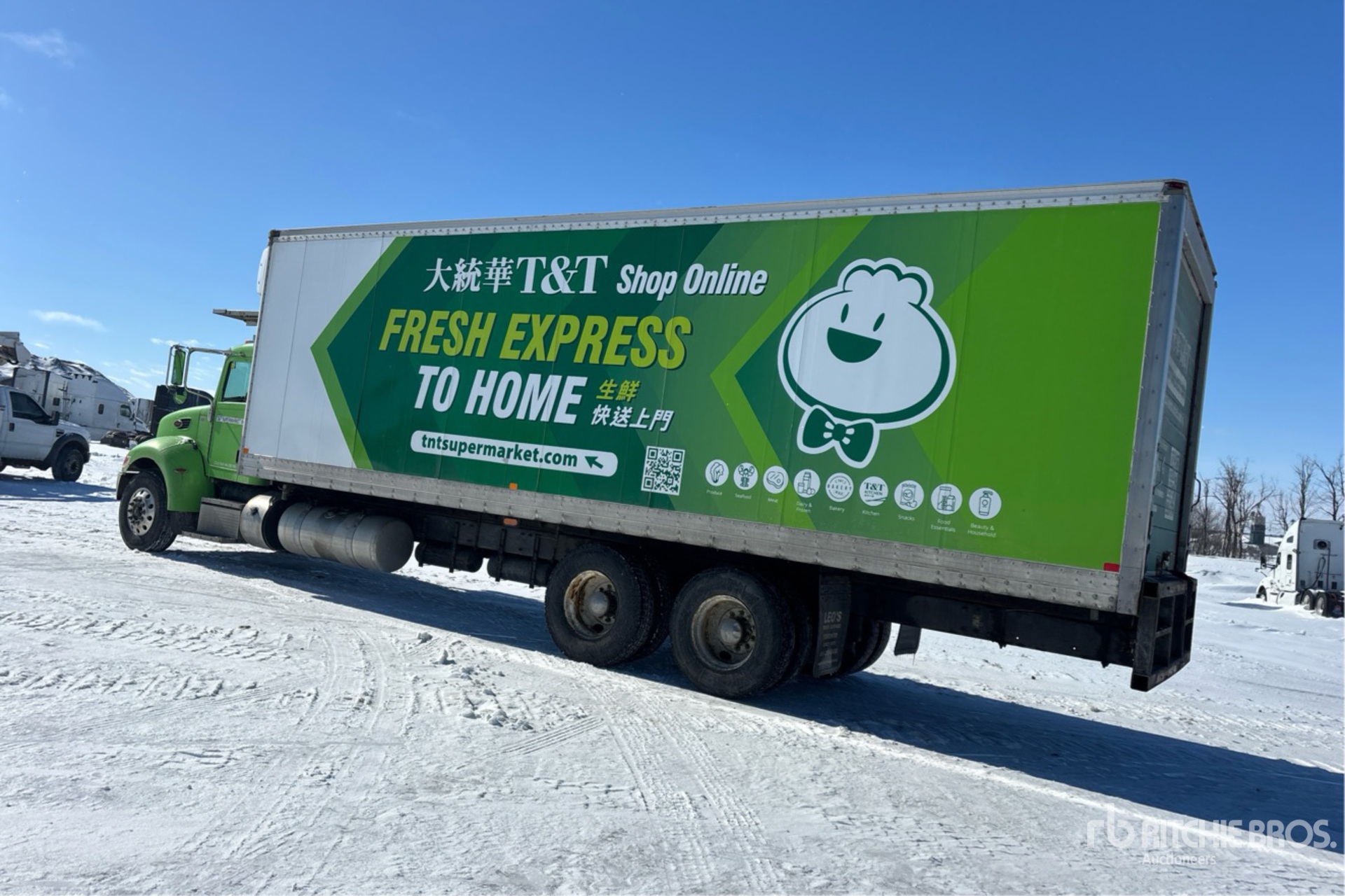 Paccar PX-8 6 Cylinder Diesel Engine, Requires Diesel Exhaust Fluid, 13344 Engine hrs, Engine Brake, Allison 3000 Automatic Transmission, 6623 kg Front Axle, 18144 kg Rears, 24767 kg GVWR, Aluminum Wheels, 11R22.5, Paccar Air Ride Suspension, 296 in Wheelbase, Carrier Transcold Reefer Unit, 9716 Reefer Engine Hours:, 10882 Reefer Total Hours:, Durabody 30 ft x 102 in Wide x 98 in High Body