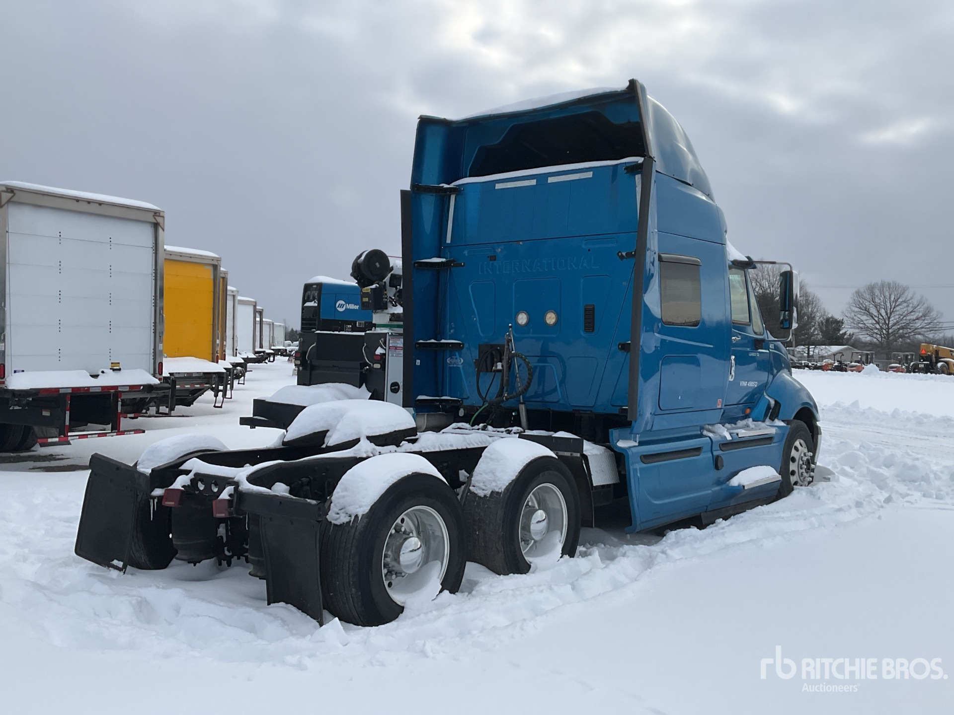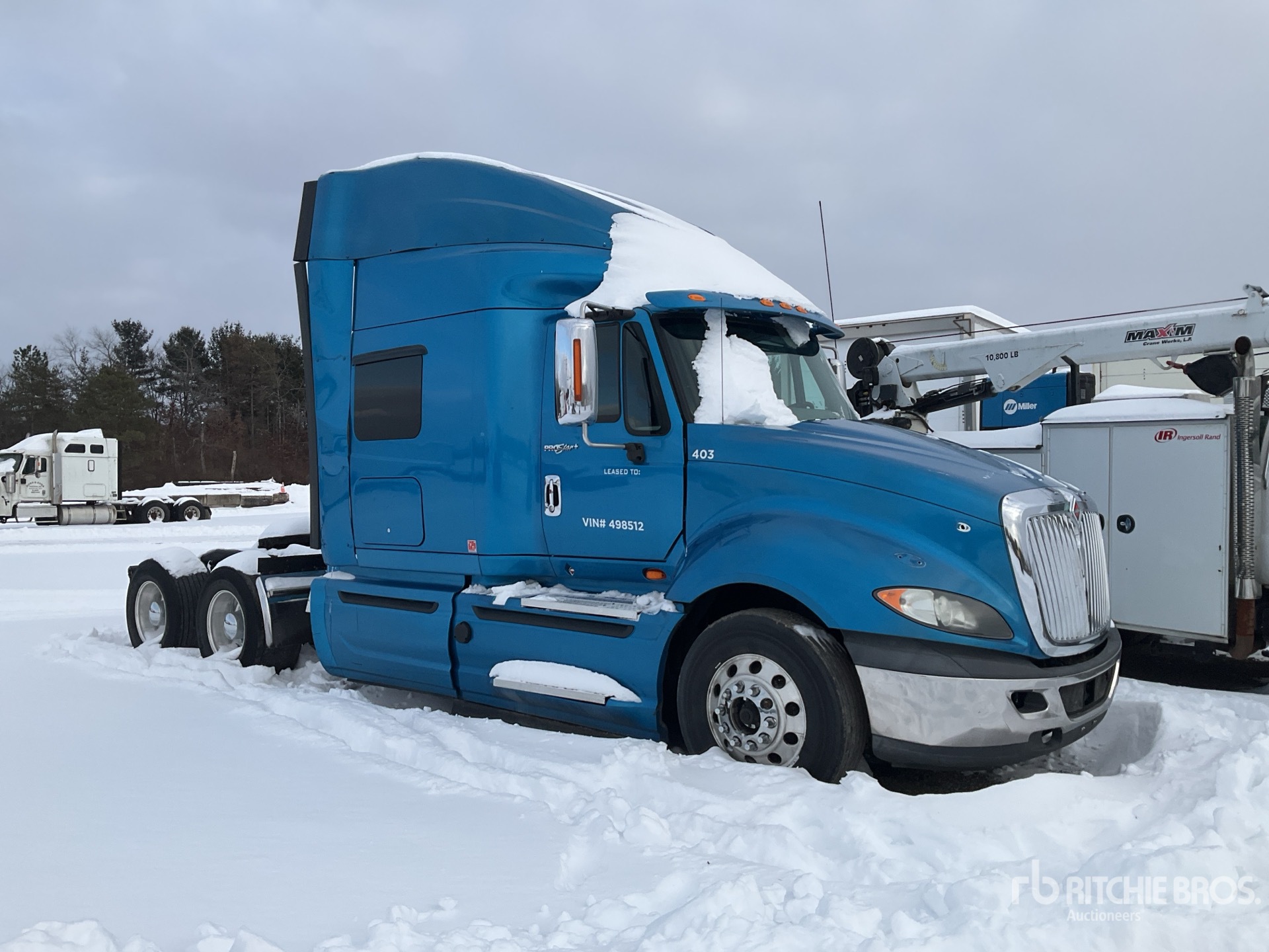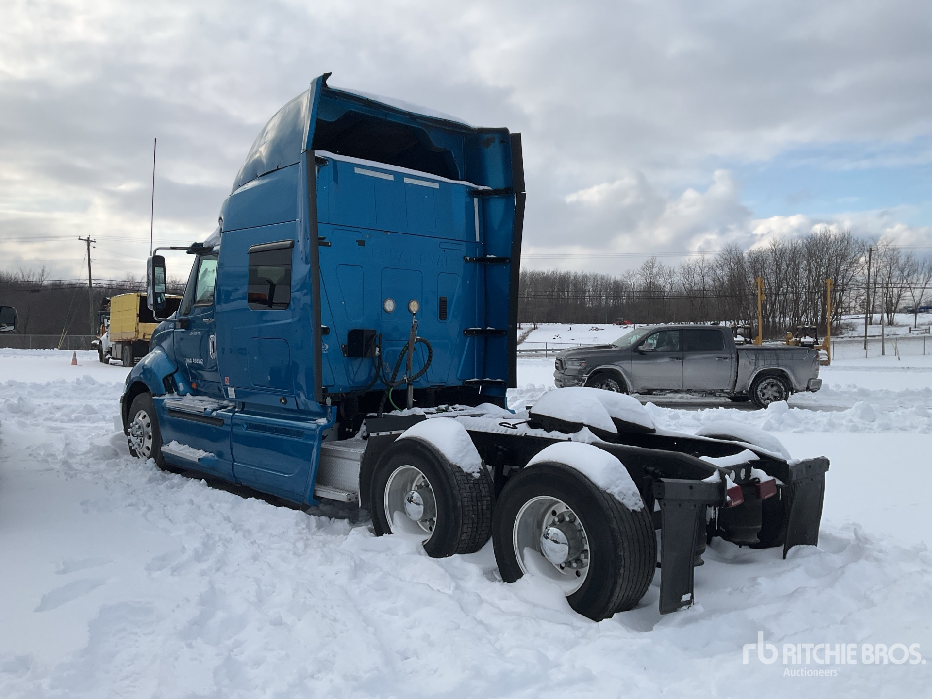 International MaxxForce 13 Engine, Eaton Fuller 10-Speed Manual Transmission, 12350 lb Front Axle, 40000 lb Rears, 52350 lb GVWR, Engine Brake, 56 in Mid Roof Sleeper Cab, 575 mm Wheelbase, Air Suspension, Aluminum Wheels, 295/75R22.5 Front Tires, 445/50R22.5 Super Singles Rear Tires, Air Sliding 5th Wheel, Dual Fuel Tanks