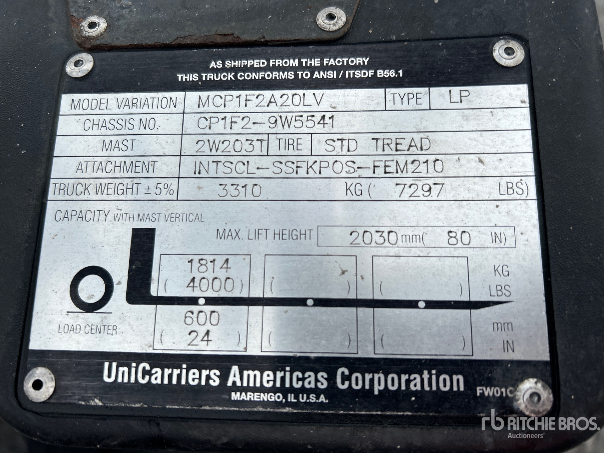 The detailed equipment information is limited in scope, and Ritchie Bros. Auctioneers has not inspected any aspects or components of the equipment other than those expressly set forth herein. Unless expressly stated, we make no representations or warranties, express or implied, concerning the equipment or its components, including without limitation any representations or warranties concerning functionality, conformity or compliance with any safety standard or requirement of any applicable authority or regulatory body, fitness for any particular purpose, or merchantability. You are strongly advised to perform your own detailed inspection of the equipment prior to bidding.