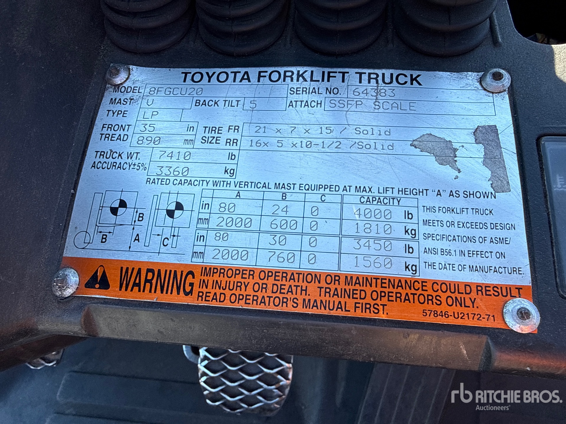 The detailed equipment information is limited in scope, and Ritchie Bros. Auctioneers has not inspected any aspects or components of the equipment other than those expressly set forth herein. Unless expressly stated, we make no representations or warranties, express or implied, concerning the equipment or its components, including without limitation any representations or warranties concerning functionality, conformity or compliance with any safety standard or requirement of any applicable authority or regulatory body, fitness for any particular purpose, or merchantability. You are strongly advised to perform your own detailed inspection of the equipment prior to bidding.