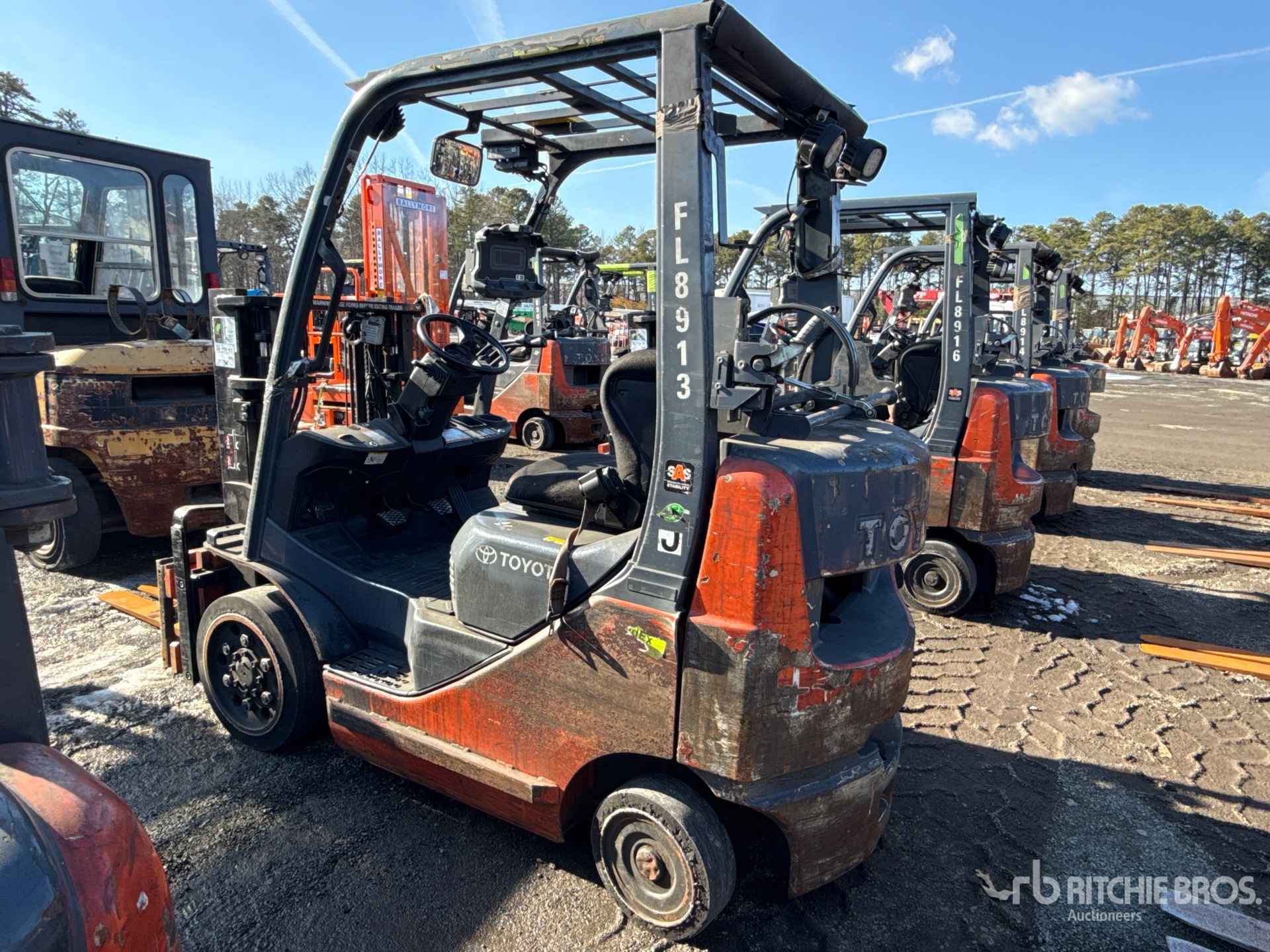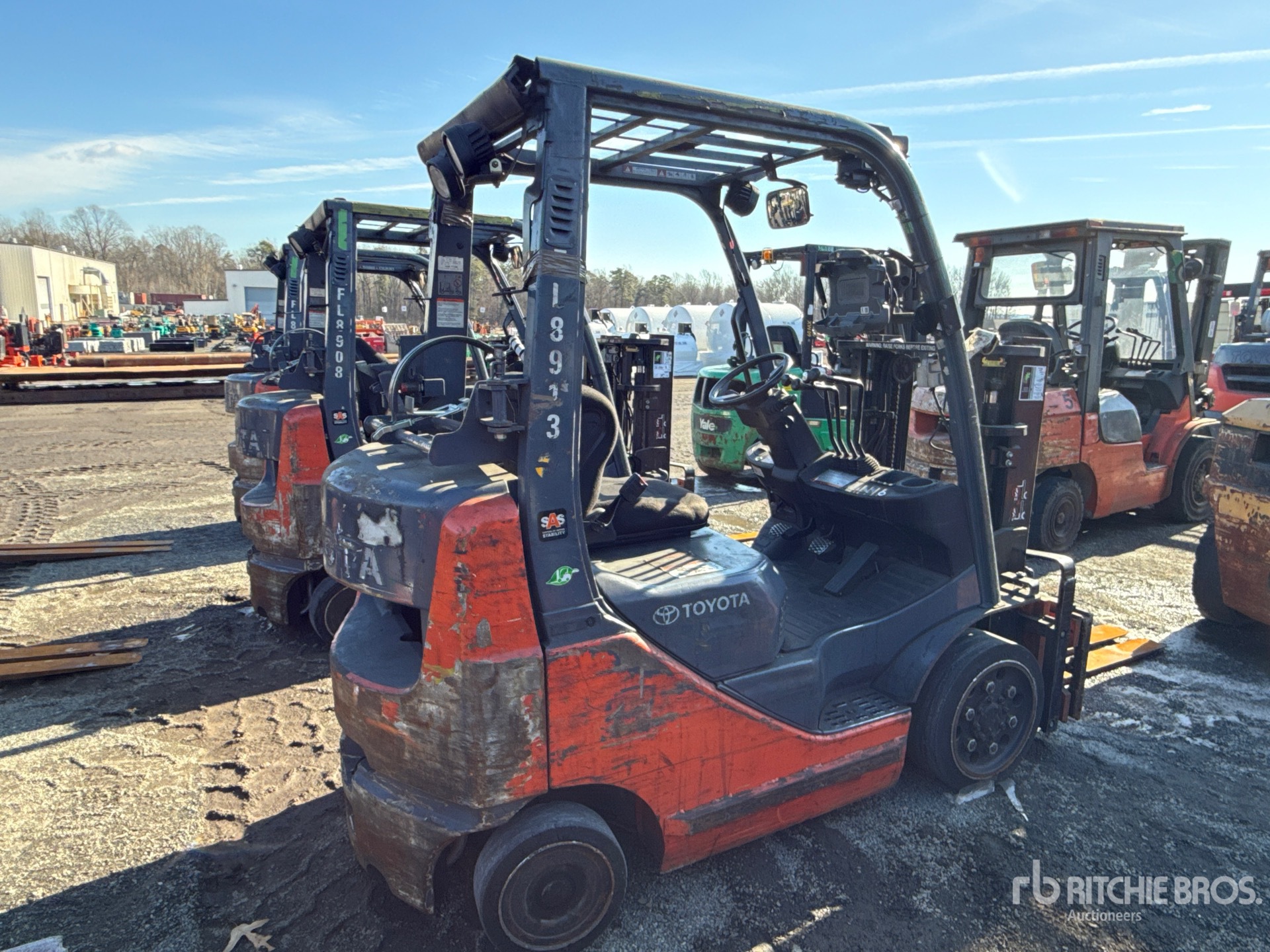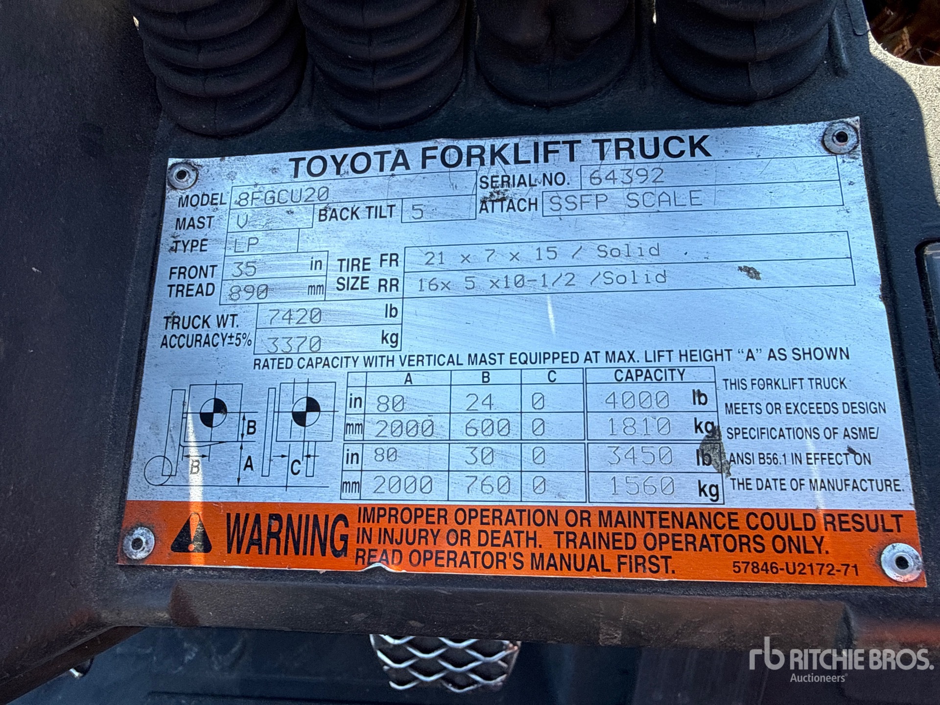 2 Stage Mast, 80 in Max Lift Height, 57 in Lowered Mast Height, 41 in Forks, Side Shift, Fork Positioner, Load Weigh System, 2014 US EPA Label, Toyota 4Y ECS 4 Cylinder 2.2 L LPG Engine