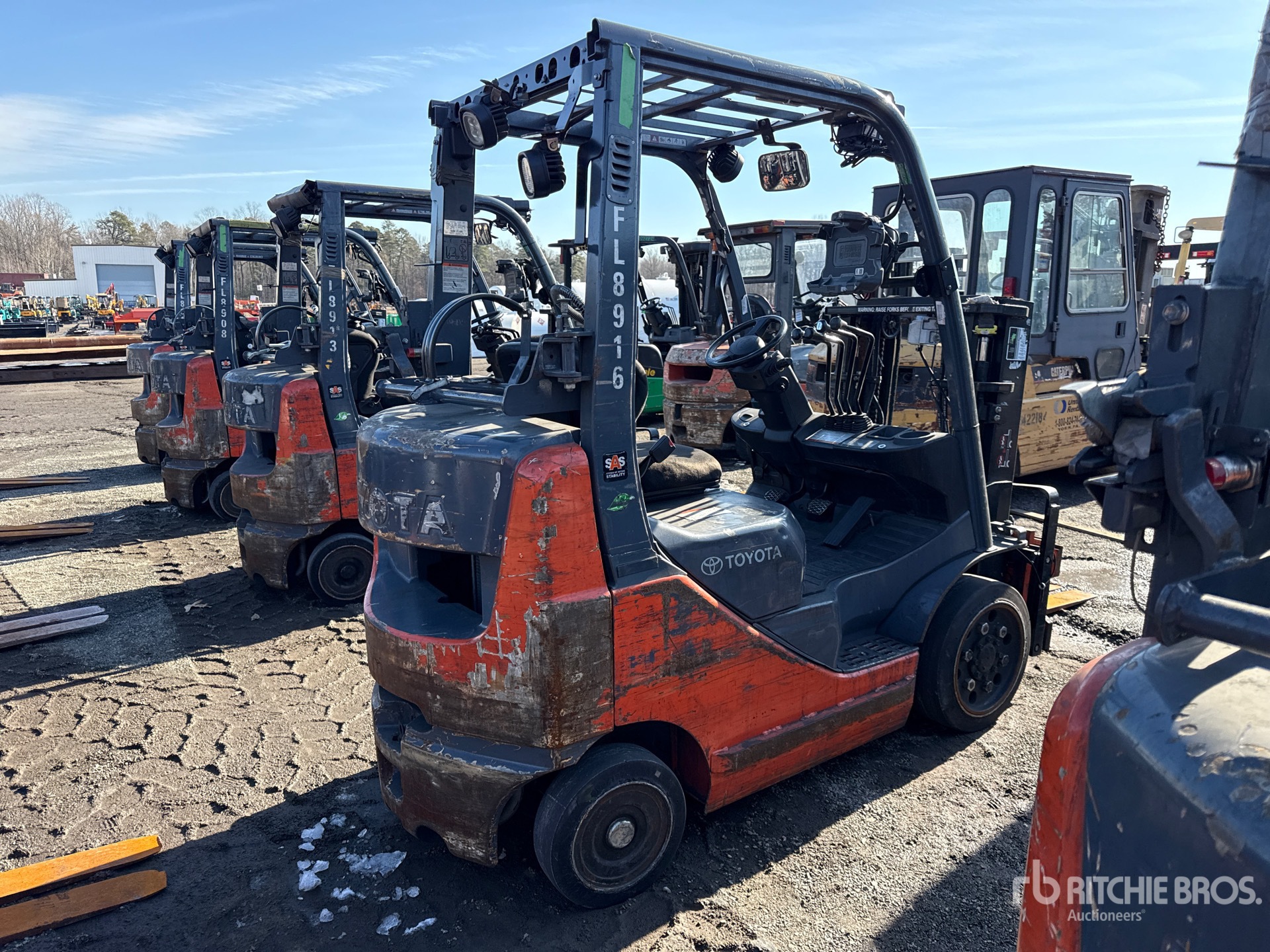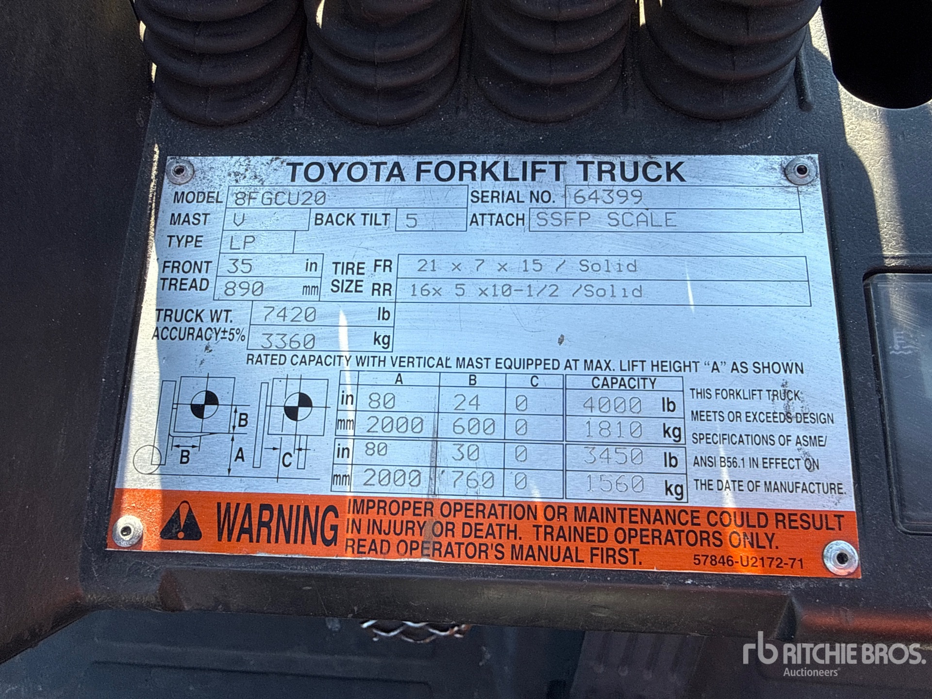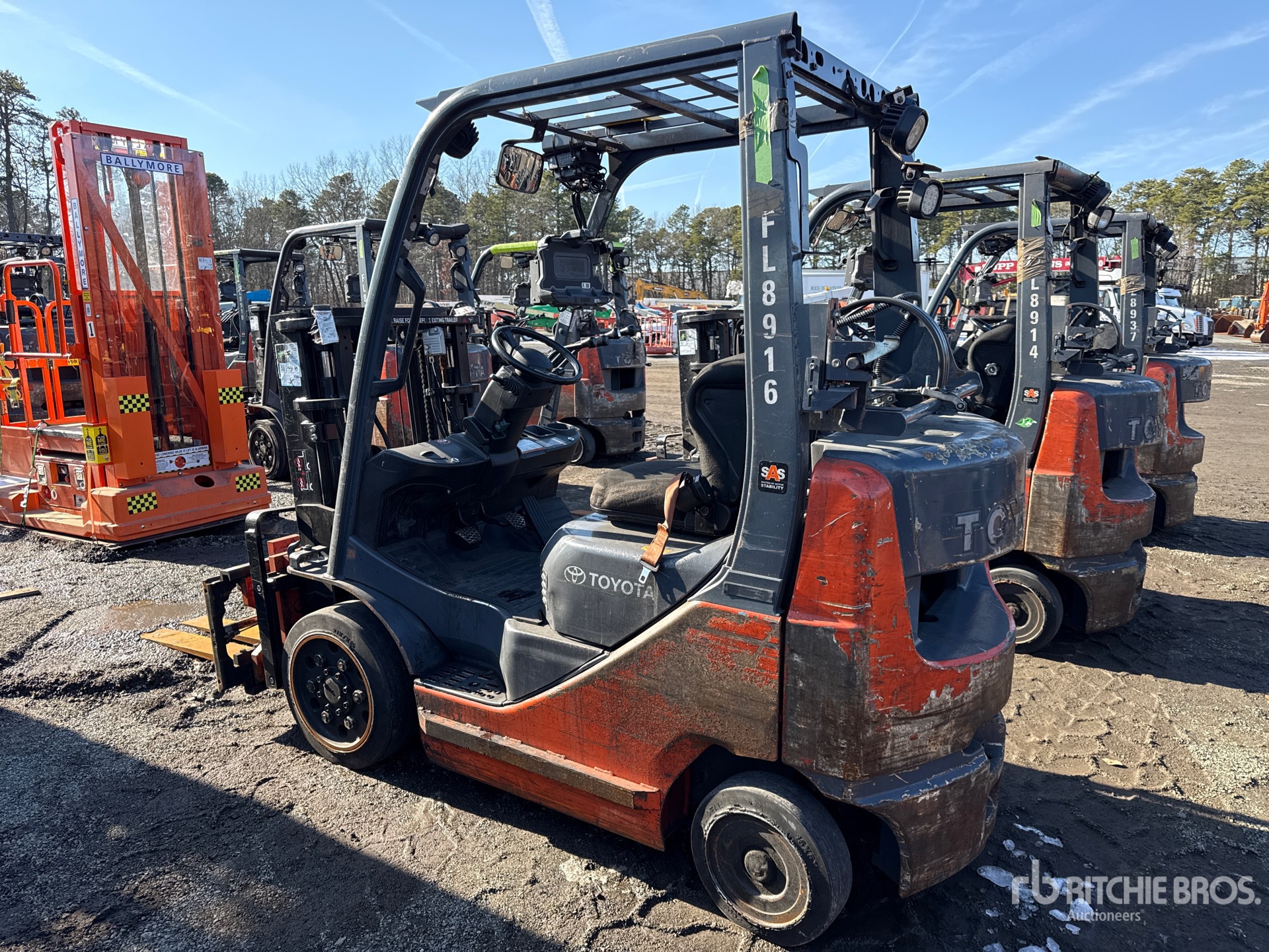 2 Stage Mast, 80 in Max Lift Height, 57 in Lowered Mast Height, 41 in Forks, Side Shift, Fork Positioner, Load Weigh System, 2014 US EPA Label, Toyota 4Y ECS 4 Cylinder 2.2 L LPG Engine