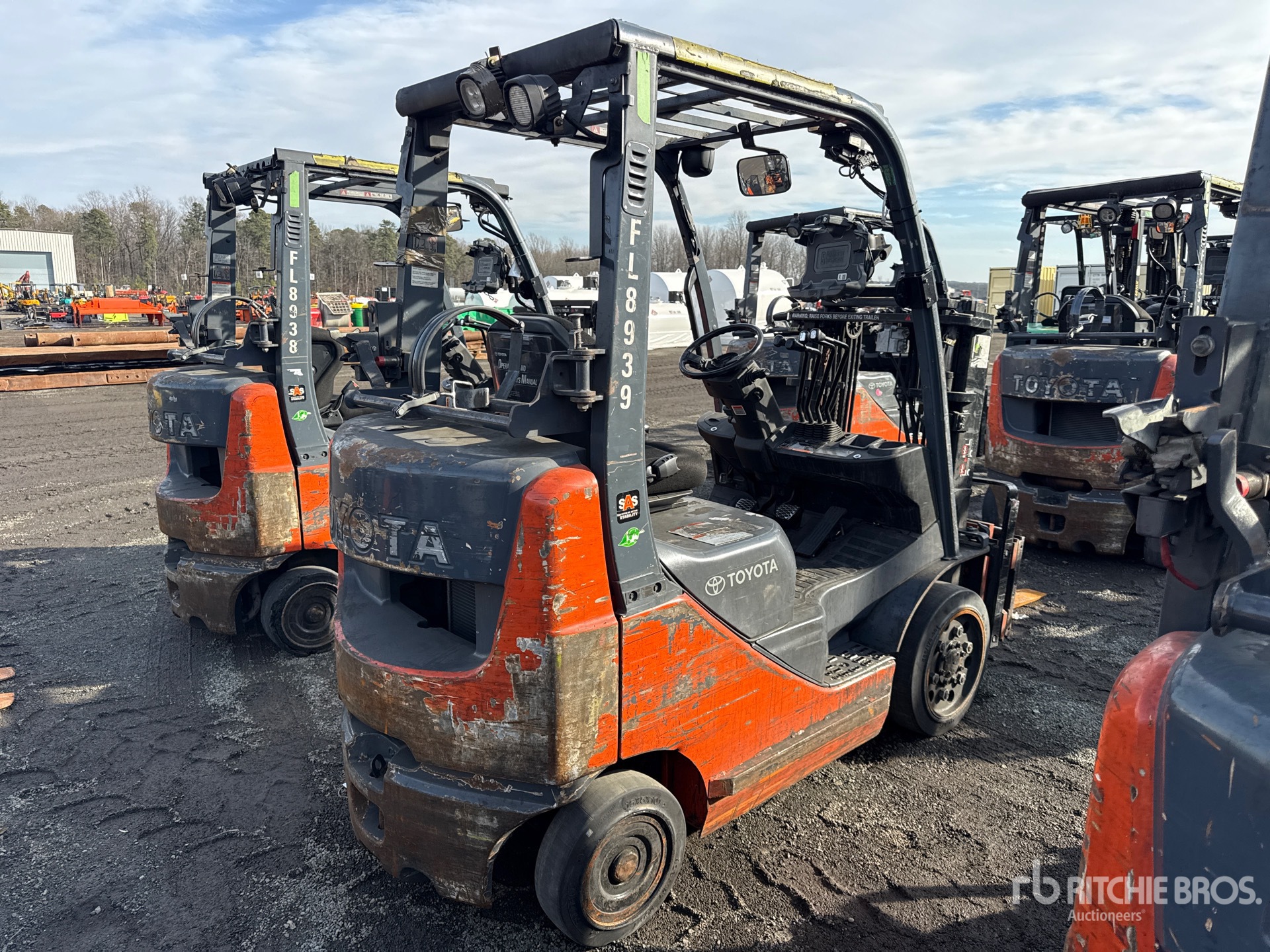 2 Stage Mast, 80 in Max Lift Height, 57 in Lowered Mast Height, 40 in Forks, Side Shift, Fork Positioner, Load Weigh System, 2014 US EPA Label, Toyota 4Y ECS 4 Cylinder 2.2 L LPG Engine