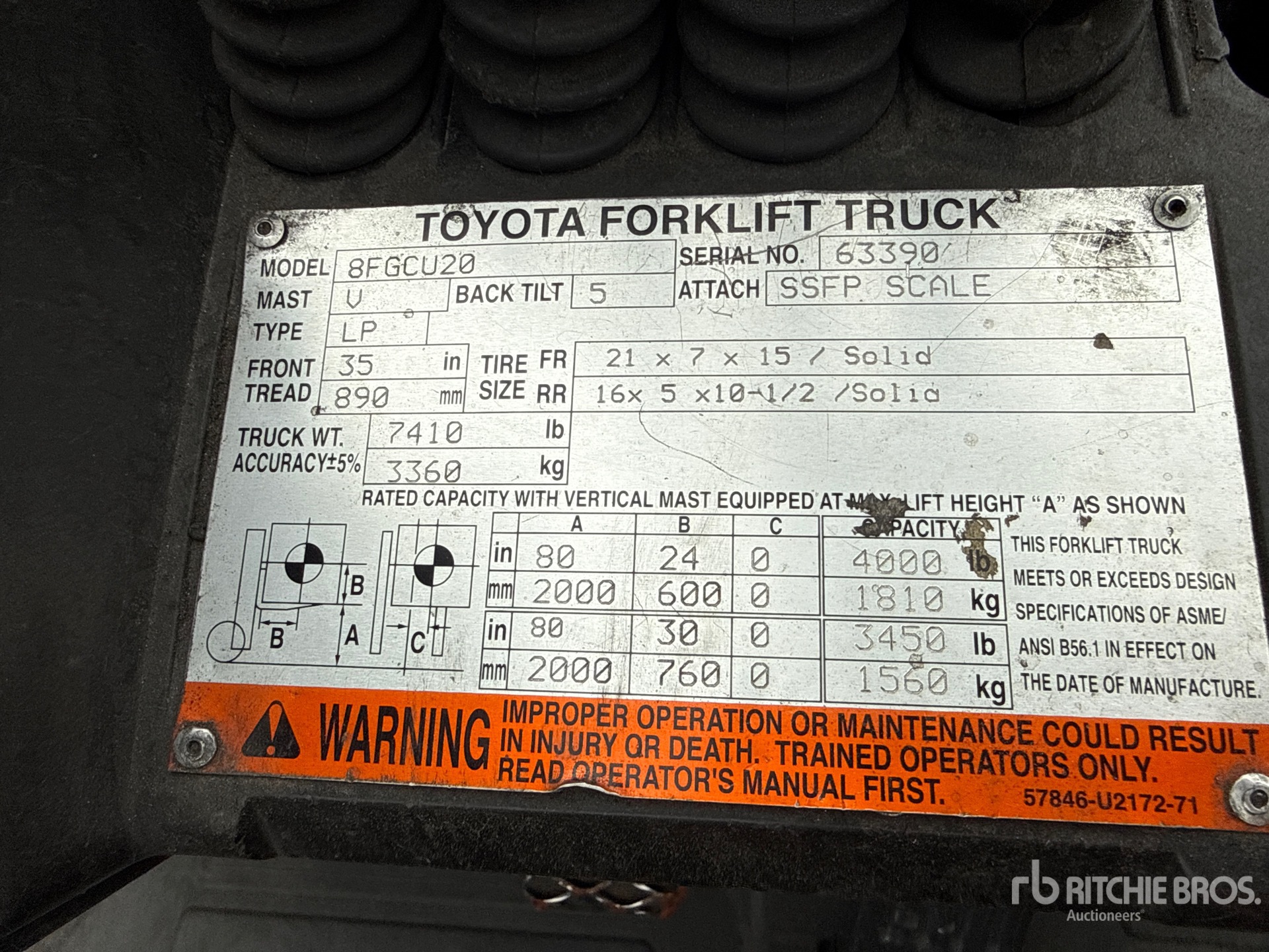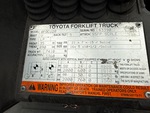 2 Stage Mast, 80 in Max Lift Height, 57 in Lowered Mast Height, 42 in Forks, Side Shift, Fork Positioner, Load Weigh System, 2014 US EPA Label, Toyota 4Y ECS 4 Cylinder 2.2 L LPG Engine