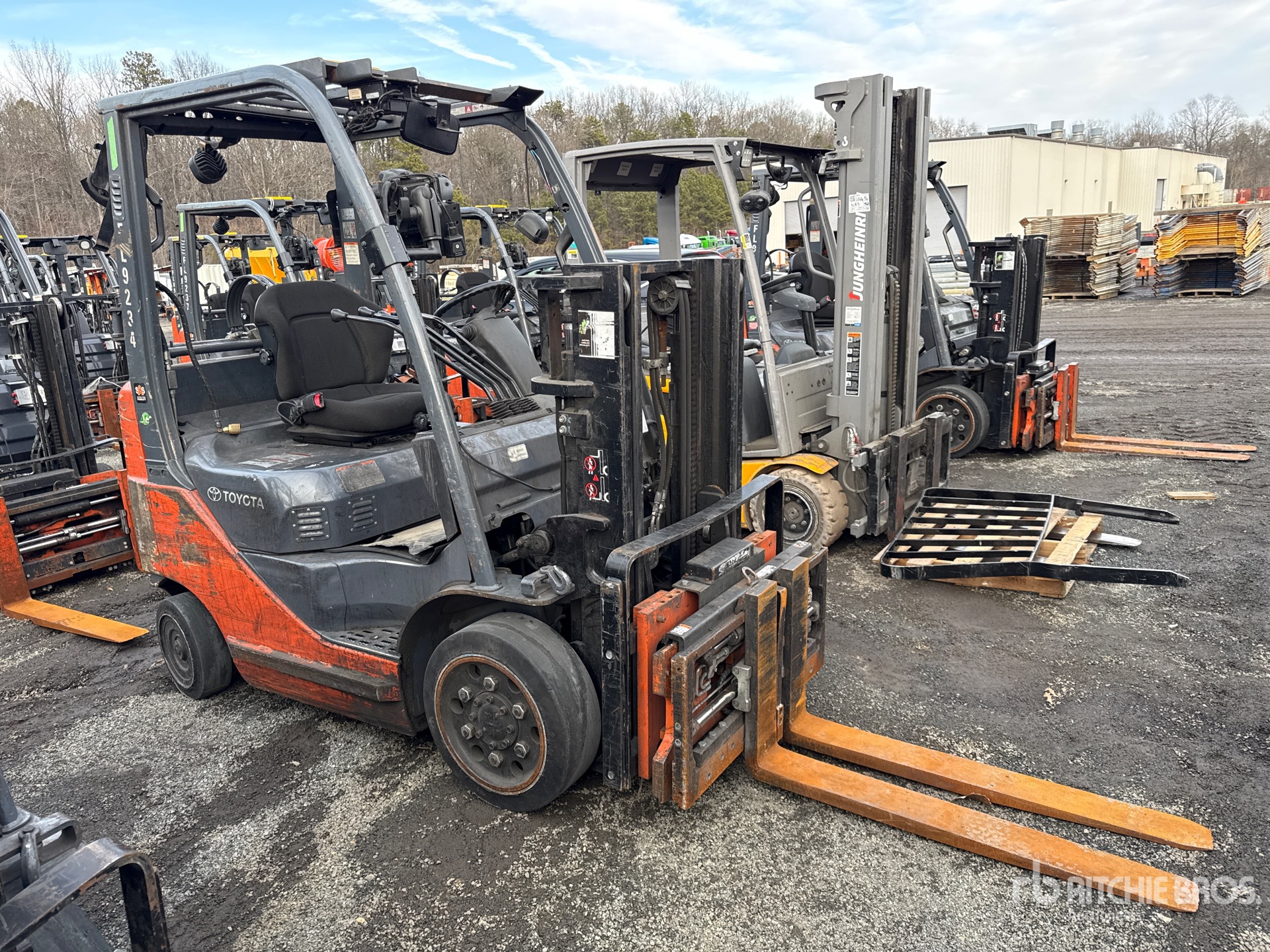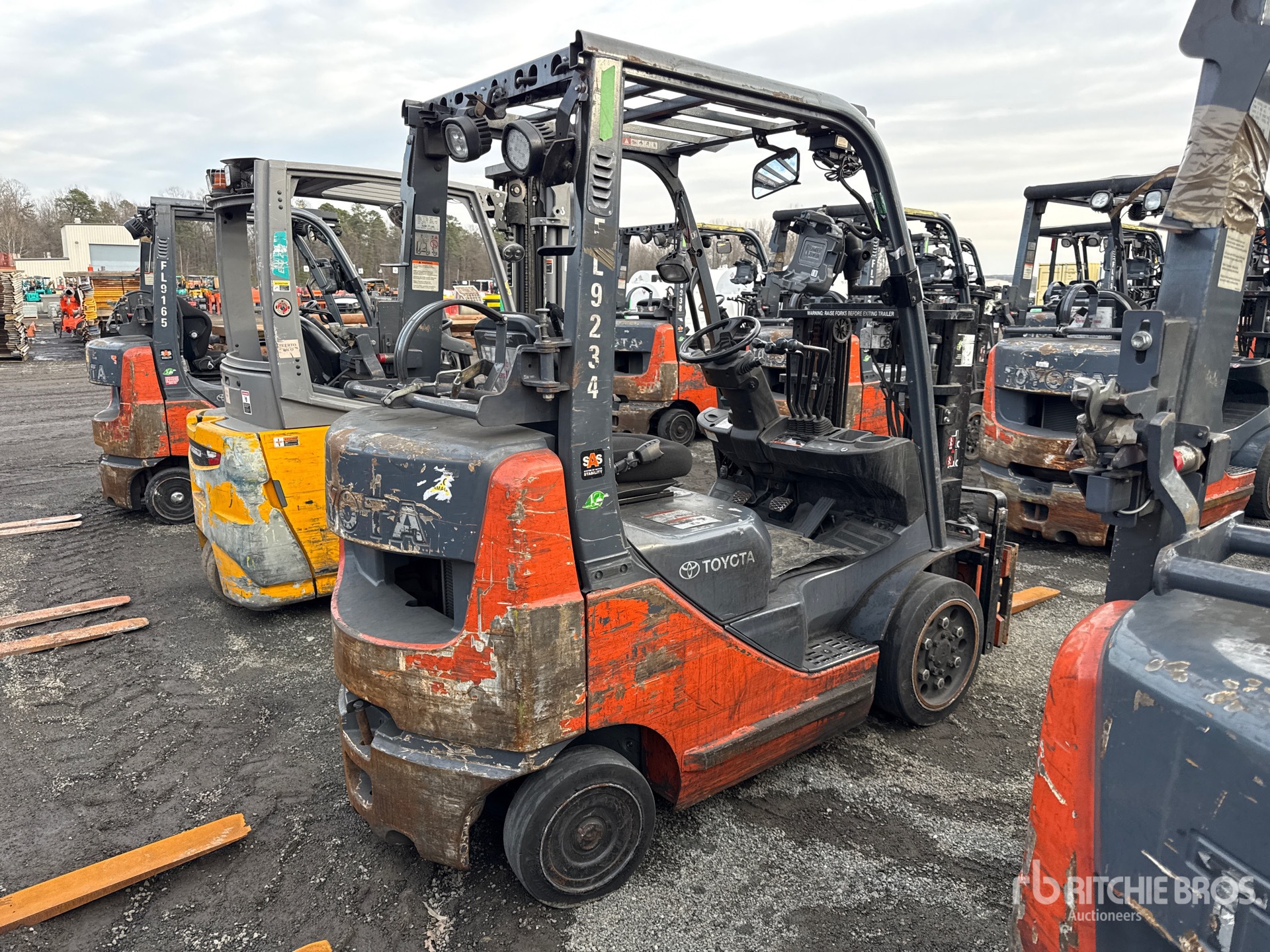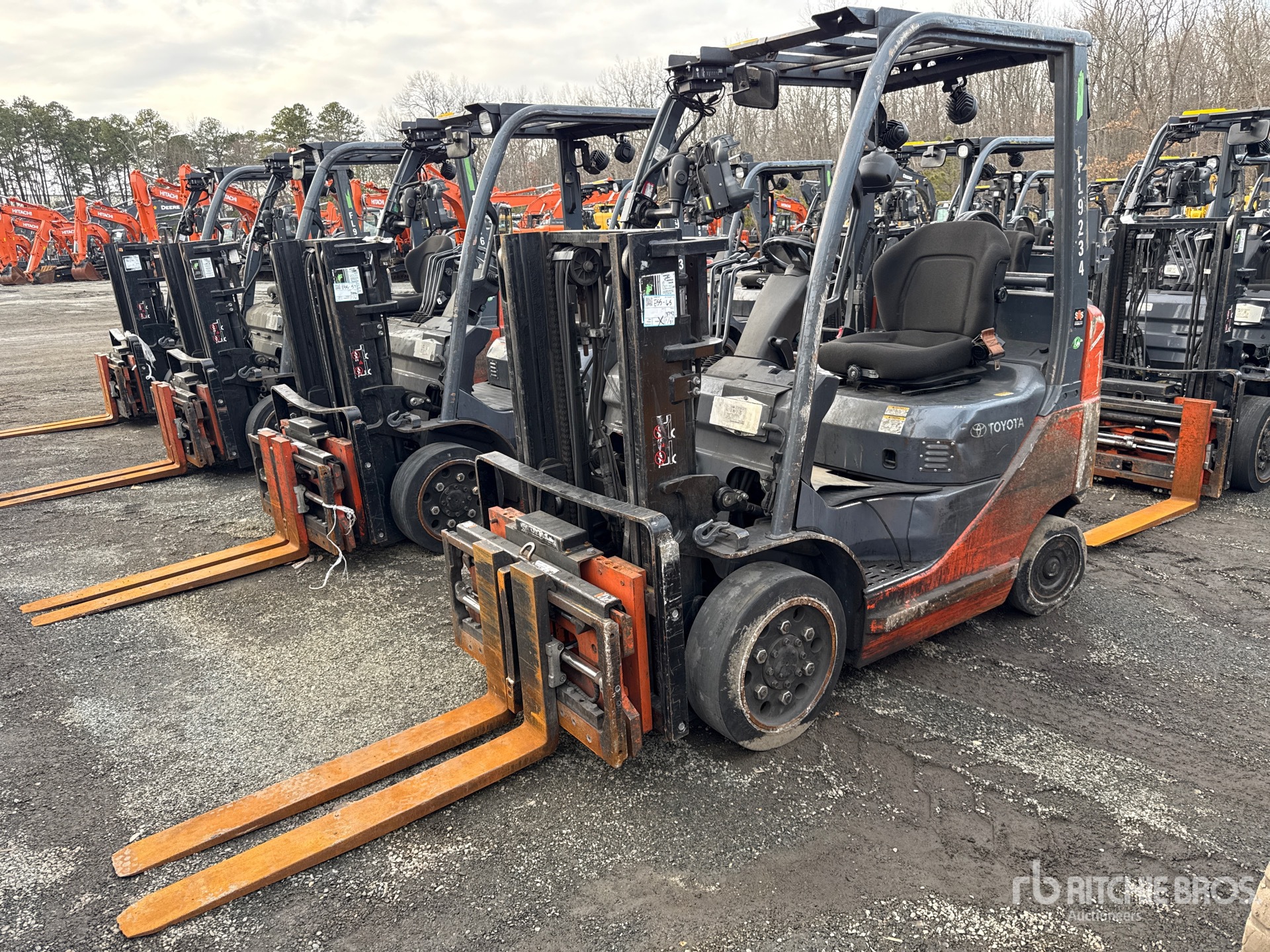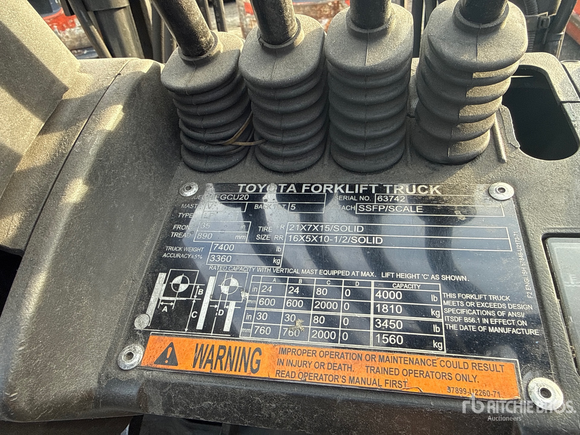 2 Stage Mast, 80 in Max Lift Height, 57 in Lowered Mast Height, 42 in Forks, Side Shift, Fork Positioner, Load Weigh System, 2014 US EPA Label, Toyota 4Y ECS 4 Cylinder 2.2 L LPG Engine
