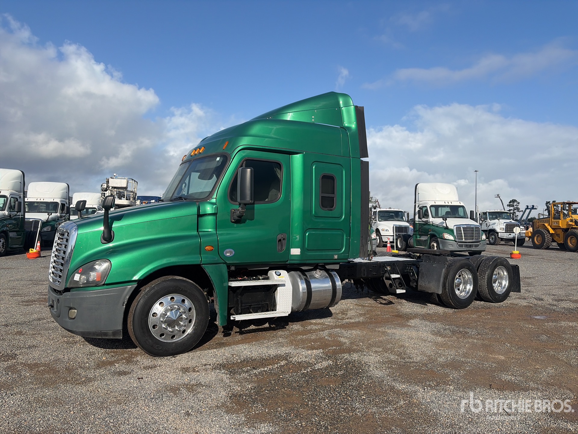 Cummins ISX15 485 hp Engine, 2014 US EPA Label, 17340 Engine hrs, Eaton Fuller FRO-18210C 10-Speed Manual Transmission, 14320 lb Front Axle, 40000 lb Rears, 64730 lb GVWR, Engine Brake, 48 in High Rise Sleeper Cab, 257 in Wheelbase, Air Suspension, Aluminum Outer Wheels, 295/75R22.5, Air Sliding 5th Wheel, Dual Fuel Tanks
