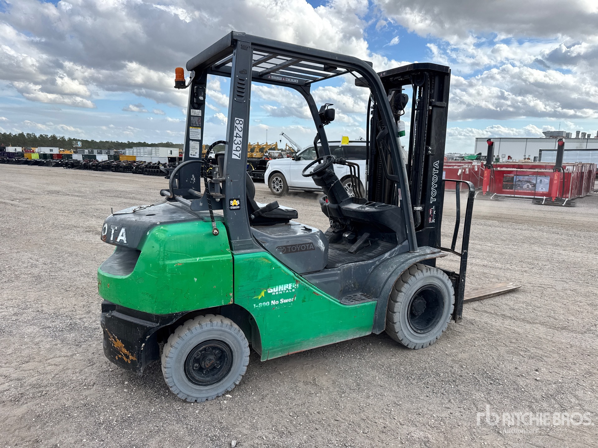 3 Stage Mast, Full Free Lift, 189 in Max Lift Height, 80 in Lowered Mast Height, 59 in Forks, Side Shift, Solid Pneumatic Tires, 2016 US EPA Label, Toyota 4YECS 4 Cylinder 2.2 L Dual Fuel Engine