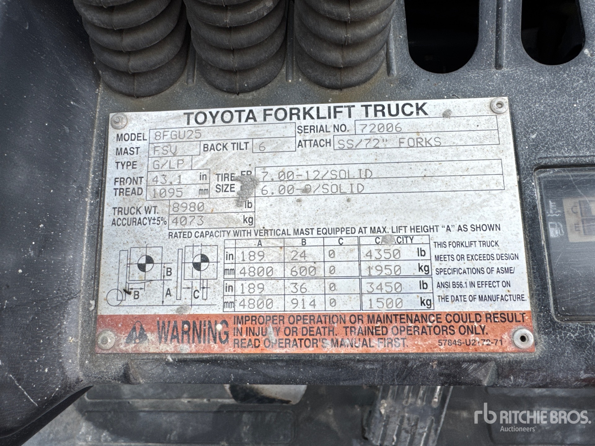 A qualified Ritchie Bros. employee collected detailed equipment information and performed functional tests on the key components of this asset. You, or a proxy, may also inspect any items on site prior to bidding on auction day.