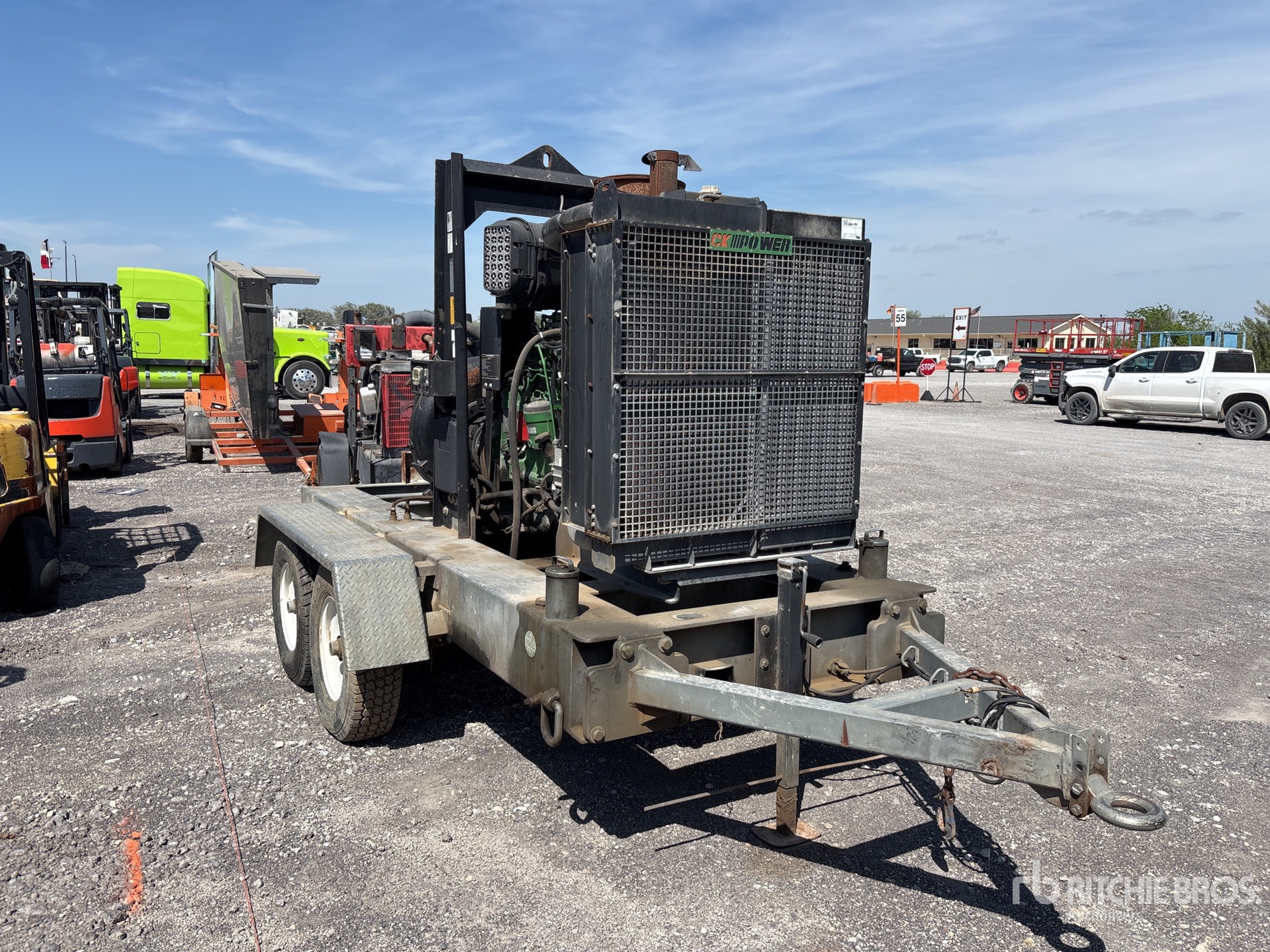 10 in Intake, 8 in Discharge, Centrifugal John Deere Engine, Lunette Ring Carrier Trailer