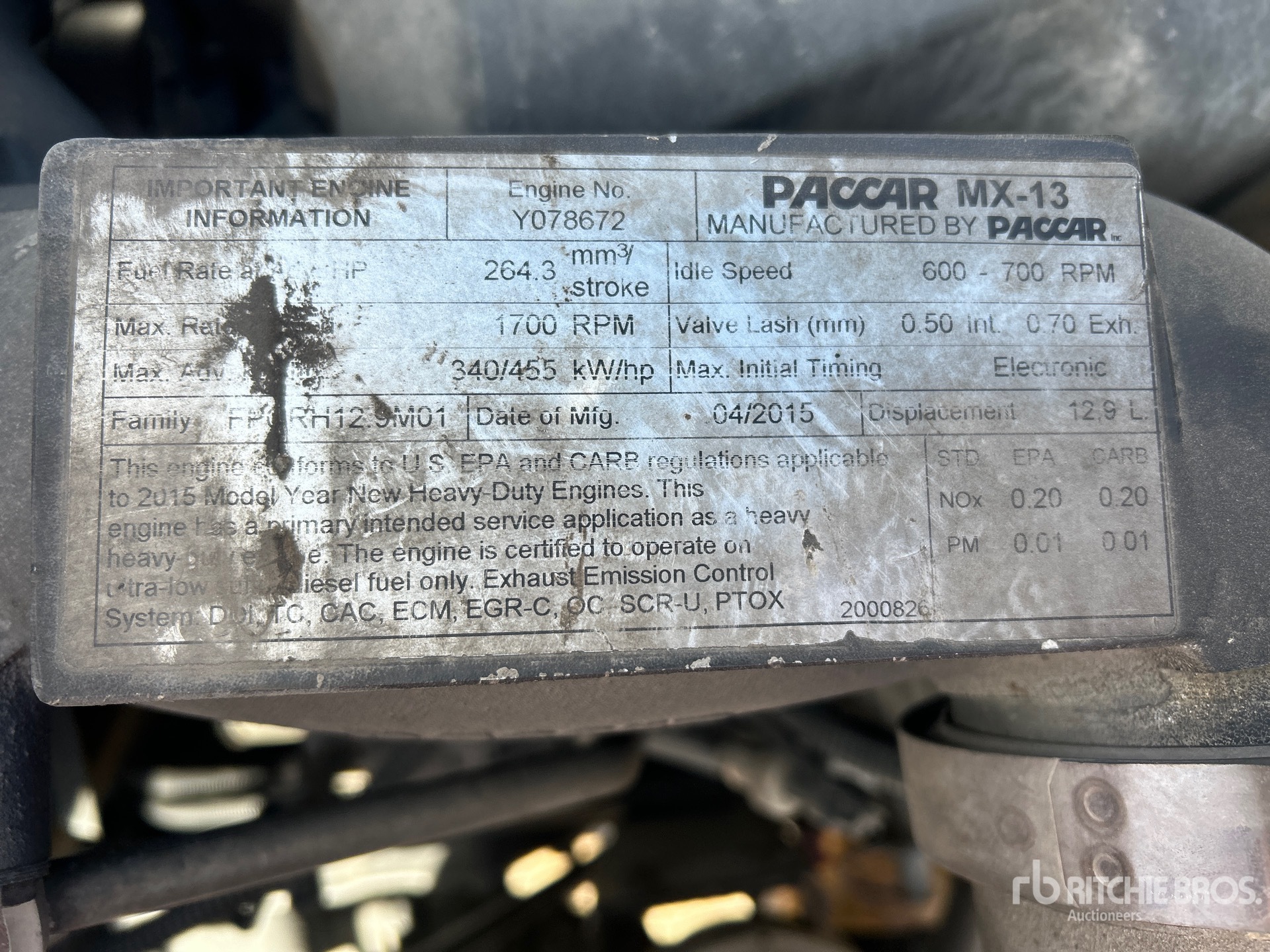 Paccar MX-13 455 hp Engine, 2015 US EPA Label, Eaton Fuller FOM-16E310C LAS 10-Speed Automated, 12000 lb Front Axle, 40000 lb Rears, 52000 lb GVWR, 62 in High Rise Sleeper Cab, 235 in Wheelbase, Air Suspension, 11R22.5 Front Tires, 285/75R24.5 Rear Tires, Air Sliding 5th Wheel, Dual Fuel Tanks