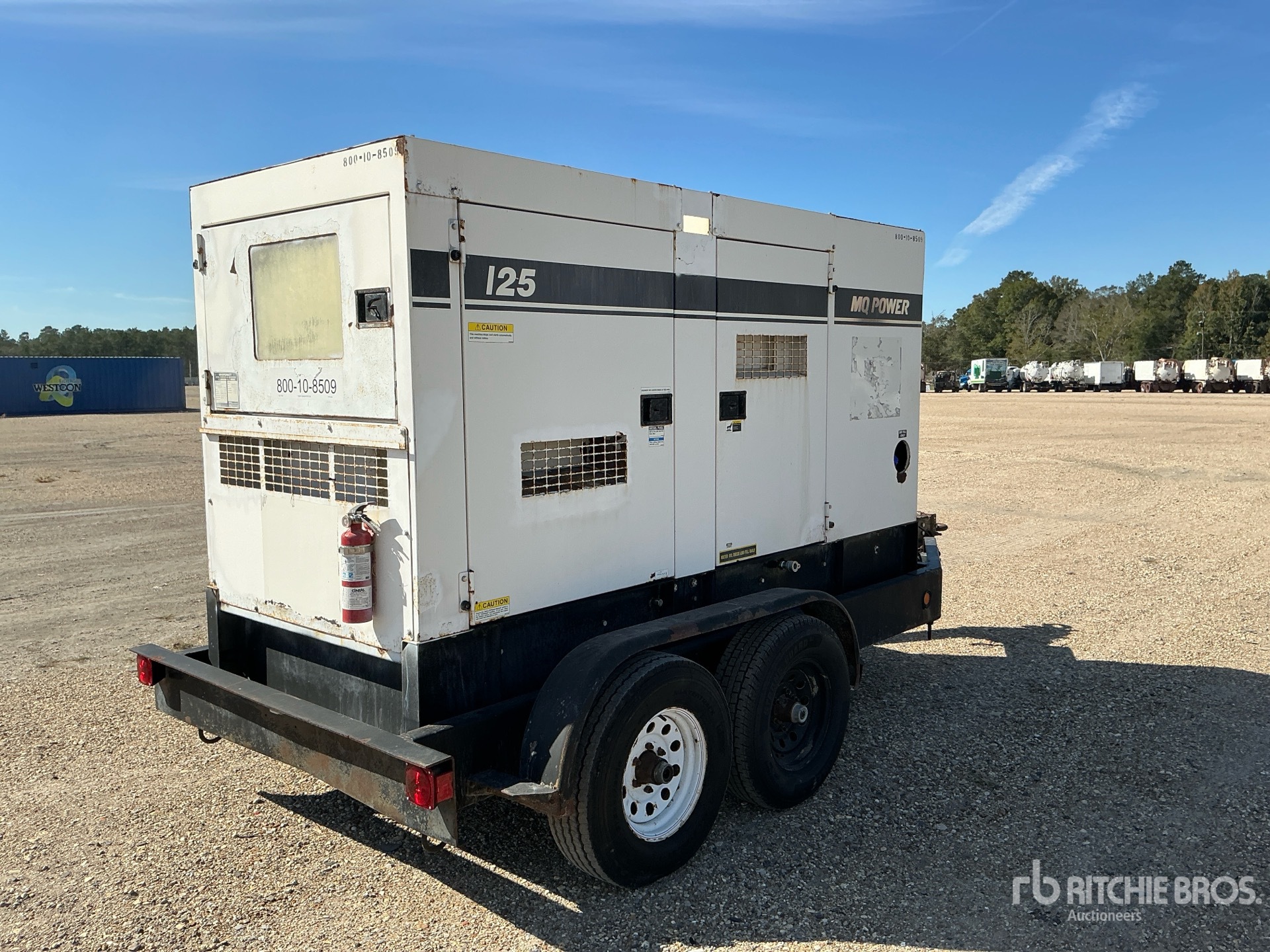 Isuzu BR-4HK1X 4 Cylinder 5.193 L Diesel Engine, Requires Diesel Exhaust Fluid, 125 kVA/100 kW Rated 3 Phase Output, 240 V / 480 V Rated Voltage, 72 kVA,/72 kW, Rated Single Phase Output, 120 V / 240 V Rated Voltage, 240 V & 120 V Receptacles, Bottom Mounted Fuel Tank, Lunette Ring Carrier Trailer, Surge Brakes, EQUIPMENT-FROM-HERC-RENTALS