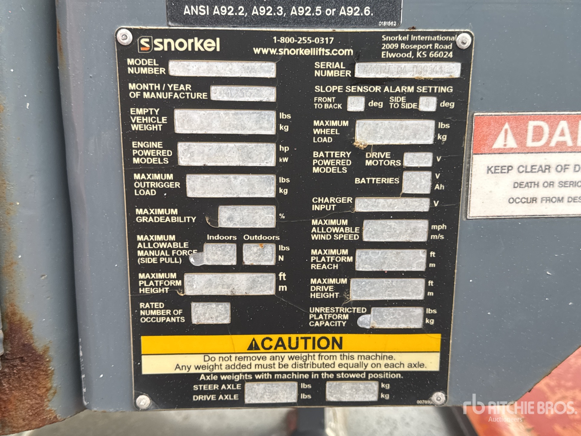 The detailed equipment information is limited in scope, and Ritchie Bros. Auctioneers has not inspected any aspects or components of the equipment other than those expressly set forth herein. Unless expressly stated, we make no representations or warranties, express or implied, concerning the equipment or its components, including without limitation any representations or warranties concerning functionality, conformity or compliance with any safety standard or requirement of any applicable authority or regulatory body, fitness for any particular purpose, or merchantability. You are strongly advised to perform your own detailed inspection of the equipment prior to bidding.