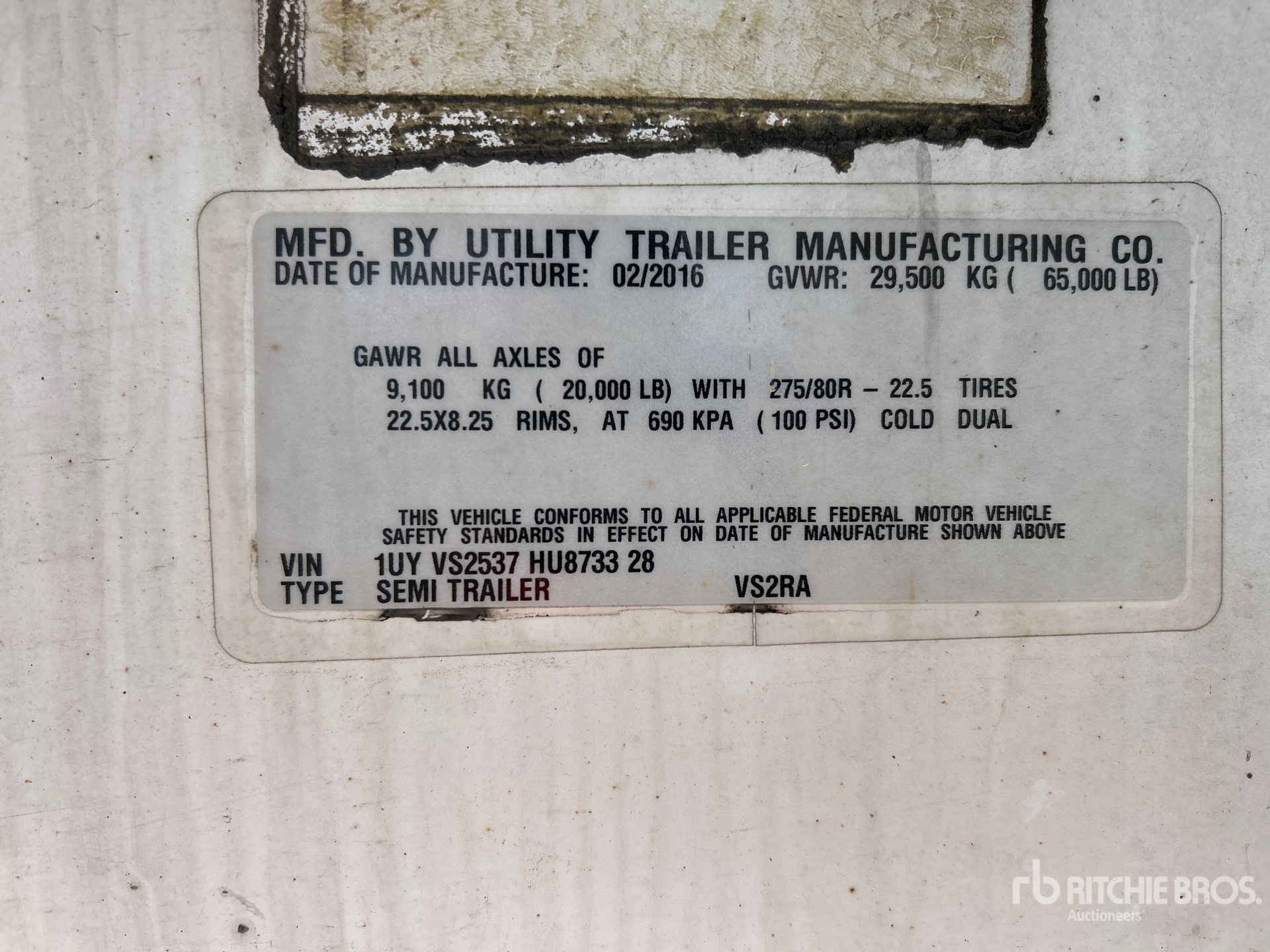 2016 Carrier X4 7300 Refrigeration Unit, Air Ride Sliding Suspension, Side Skirts, Ducted Floor, Swing Door, 295/75R22.5 Tires 65000 lb GVWR
