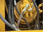 The hydraulic system was operational. Hydraulic hose at main hydraulic pump leaking