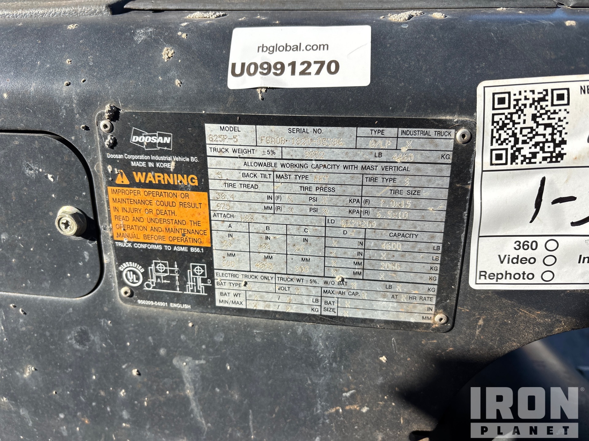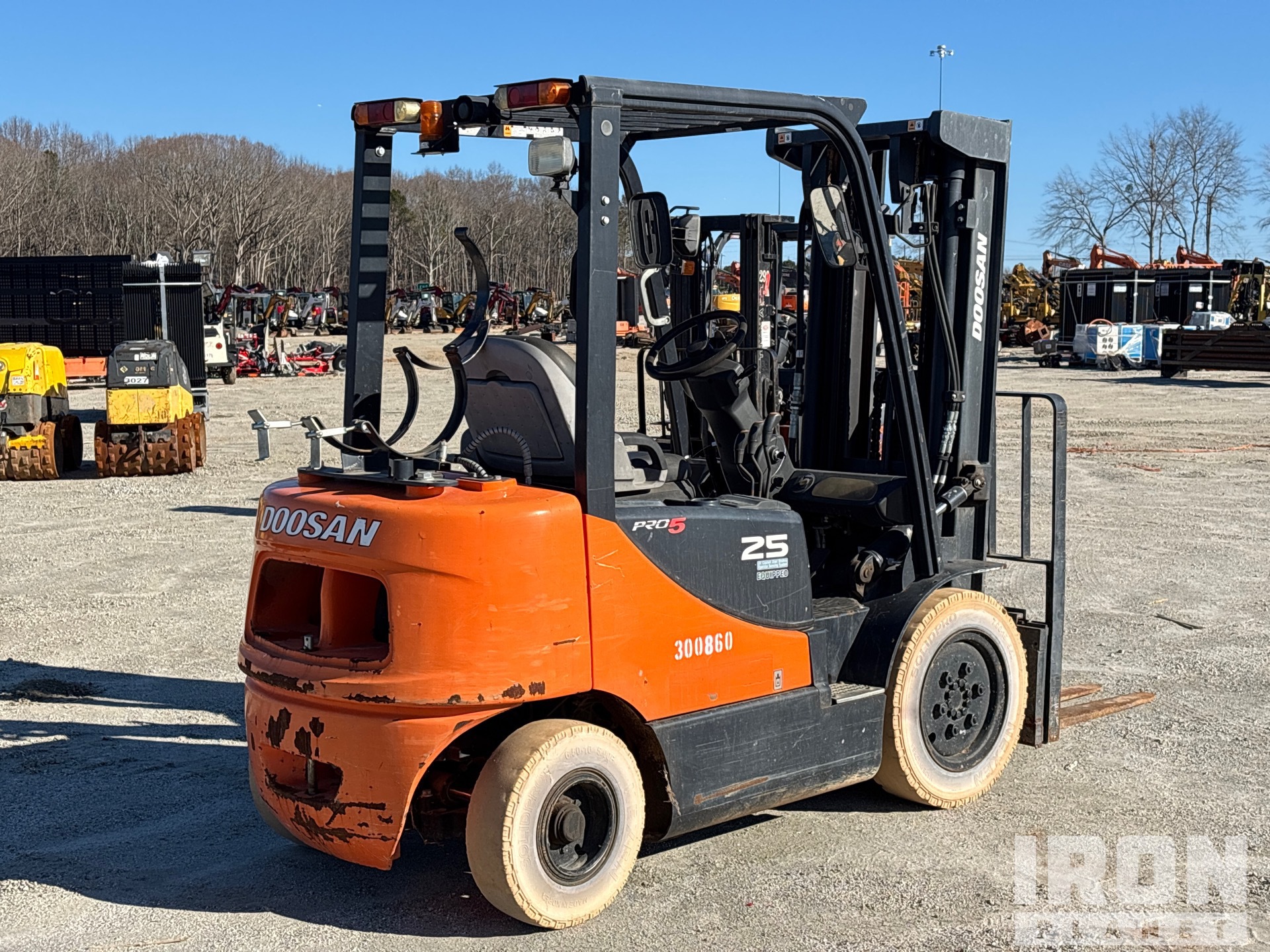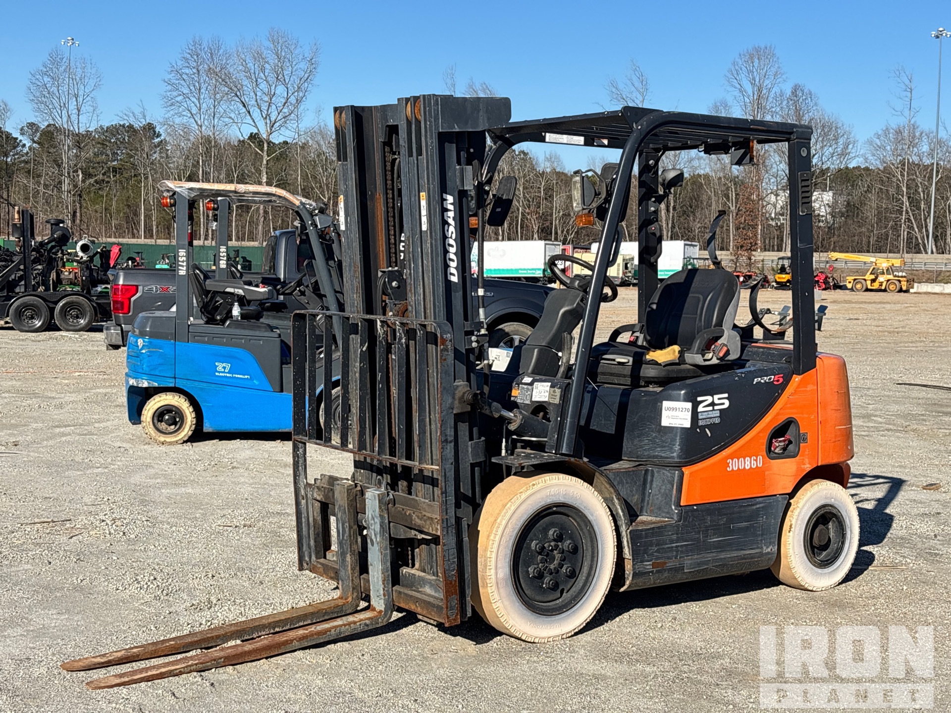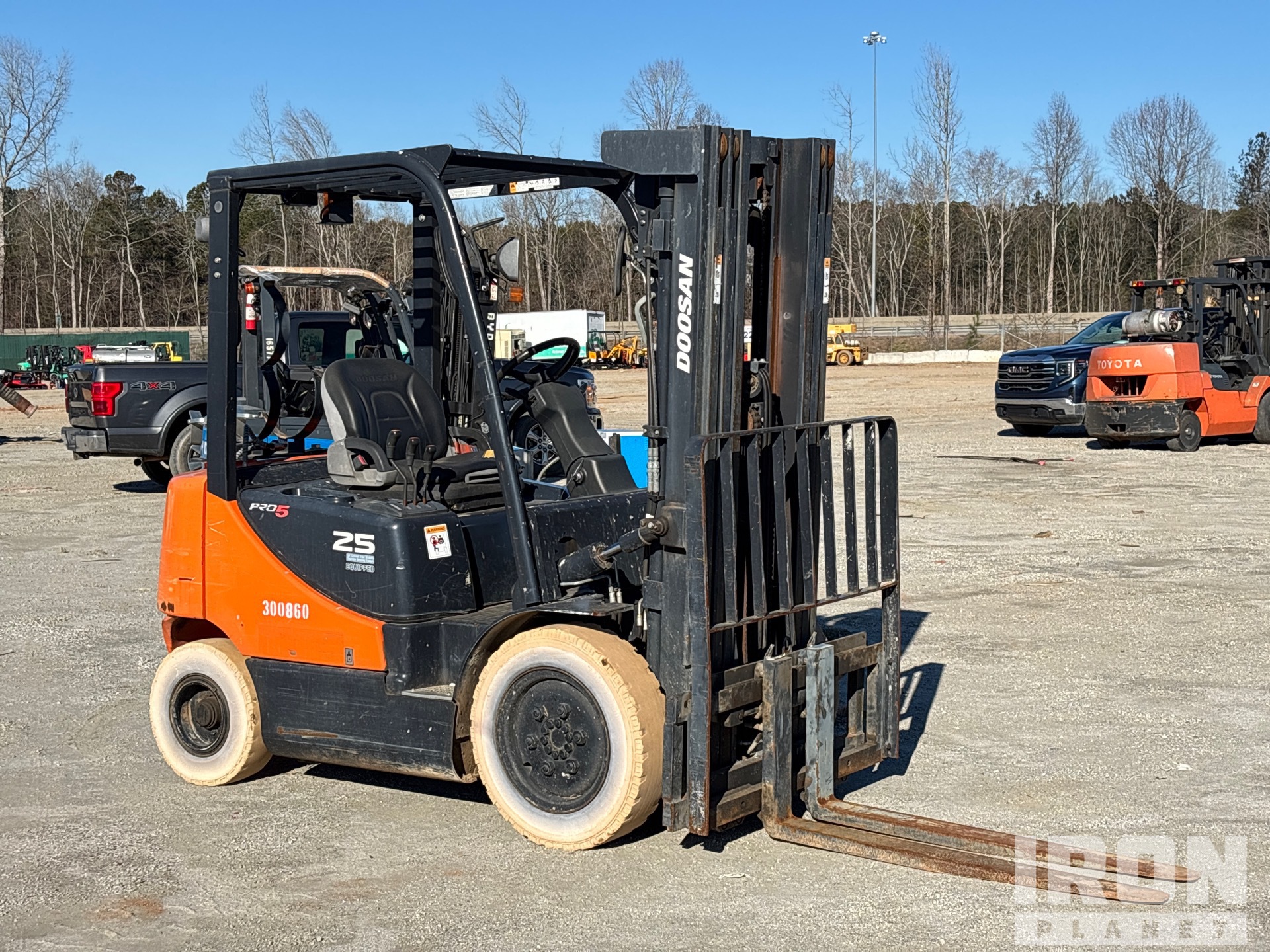 3 Stage Mast, Full Free Lift, 189 in Max Lift Height, 85 in Lowered Mast Height, 47 in Forks, Side Shift, Solid Pneumatic Tires, 2017 US EPA Label, PSI 4 Cylinder 2.4 L Dual Fuel Engine, LP Tank is not included