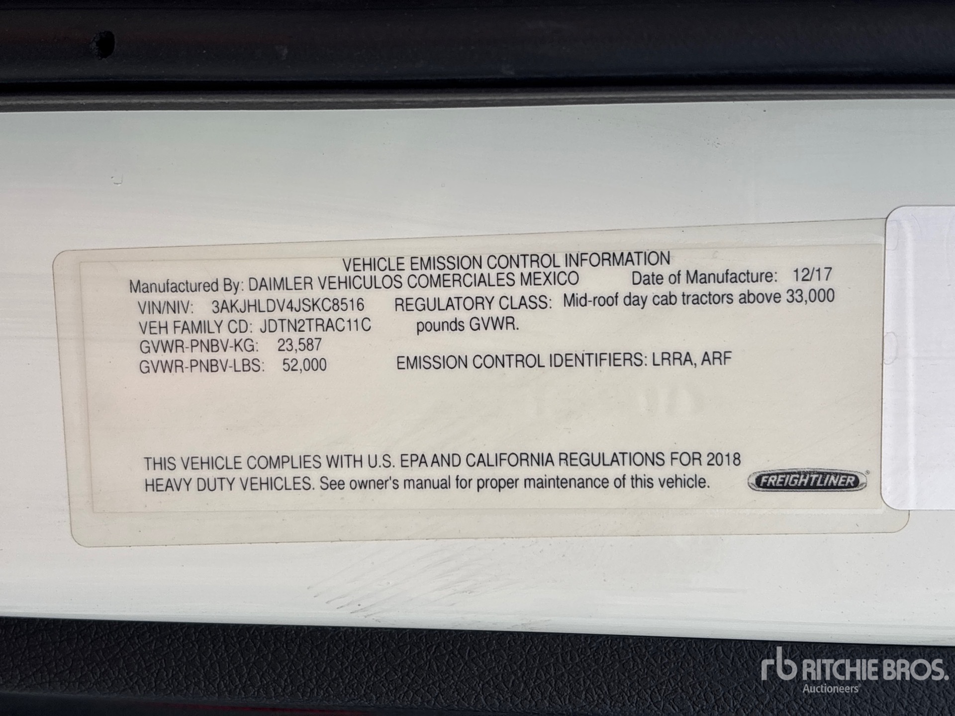 Detroit DD13 435 hp Engine, 2017 US EPA Label, 15977 Engine hrs, Detroit DT12-1550-OH1 12-Speed Automated Transmission, 12000 lb Front Axle, 40000 lb Rears, 52000 lb GVWR, Engine Brake, 178 in Wheelbase, Air Suspension, 11R22.5, Air Sliding 5th Wheel, Dual Fuel Tanks, Professionally-Maintained-Fleet-Vehicle-PAG