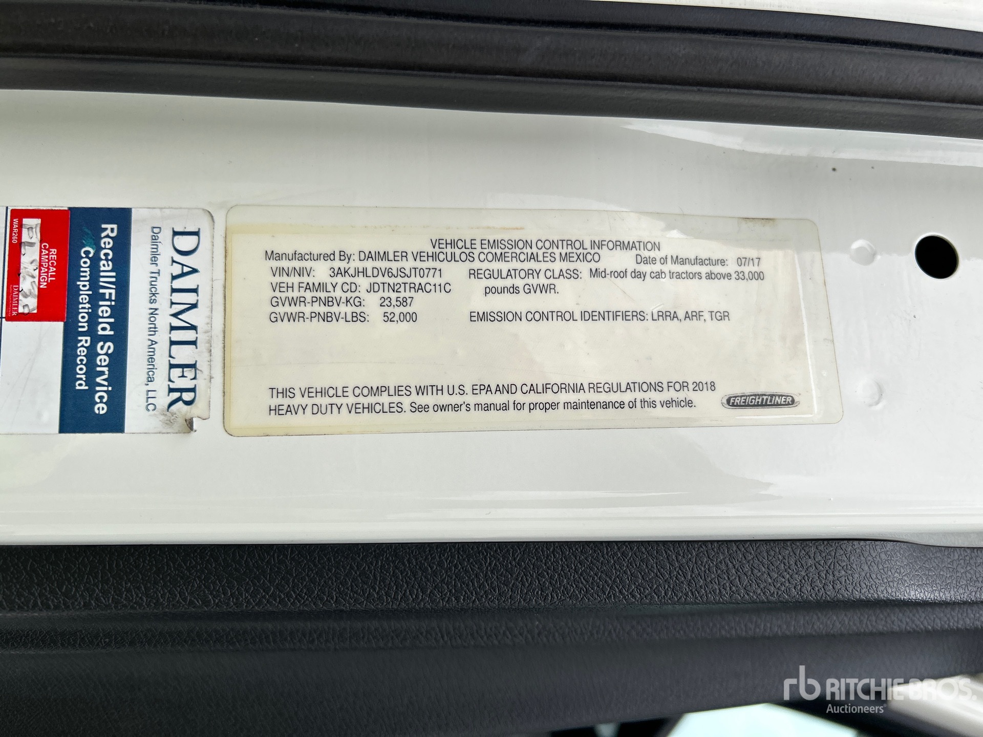 Detroit DD13 435 hp Engine, 2017 US EPA Label, 14495.48 Engine hrs, Detroit DT12-1550-OH1 12-Speed Automated Transmission, 12000 lb Front Axle, 40000 lb Rears, 52000 lb GVWR, Engine Brake, 178 in Wheelbase, Air Suspension, 11R22.5, Air Sliding 5th Wheel, Dual Fuel Tanks