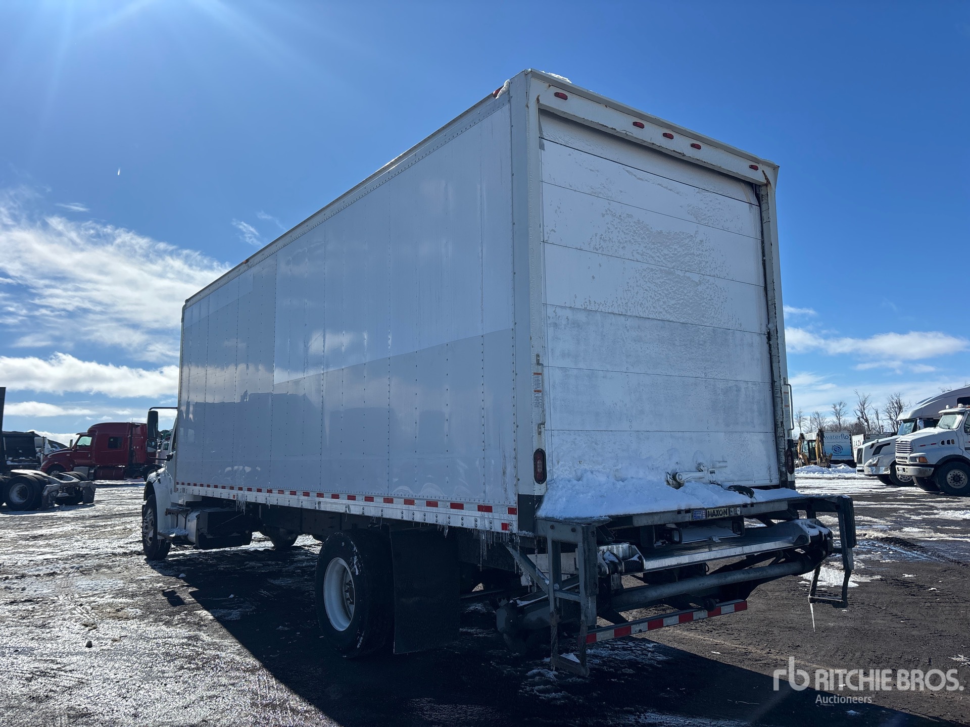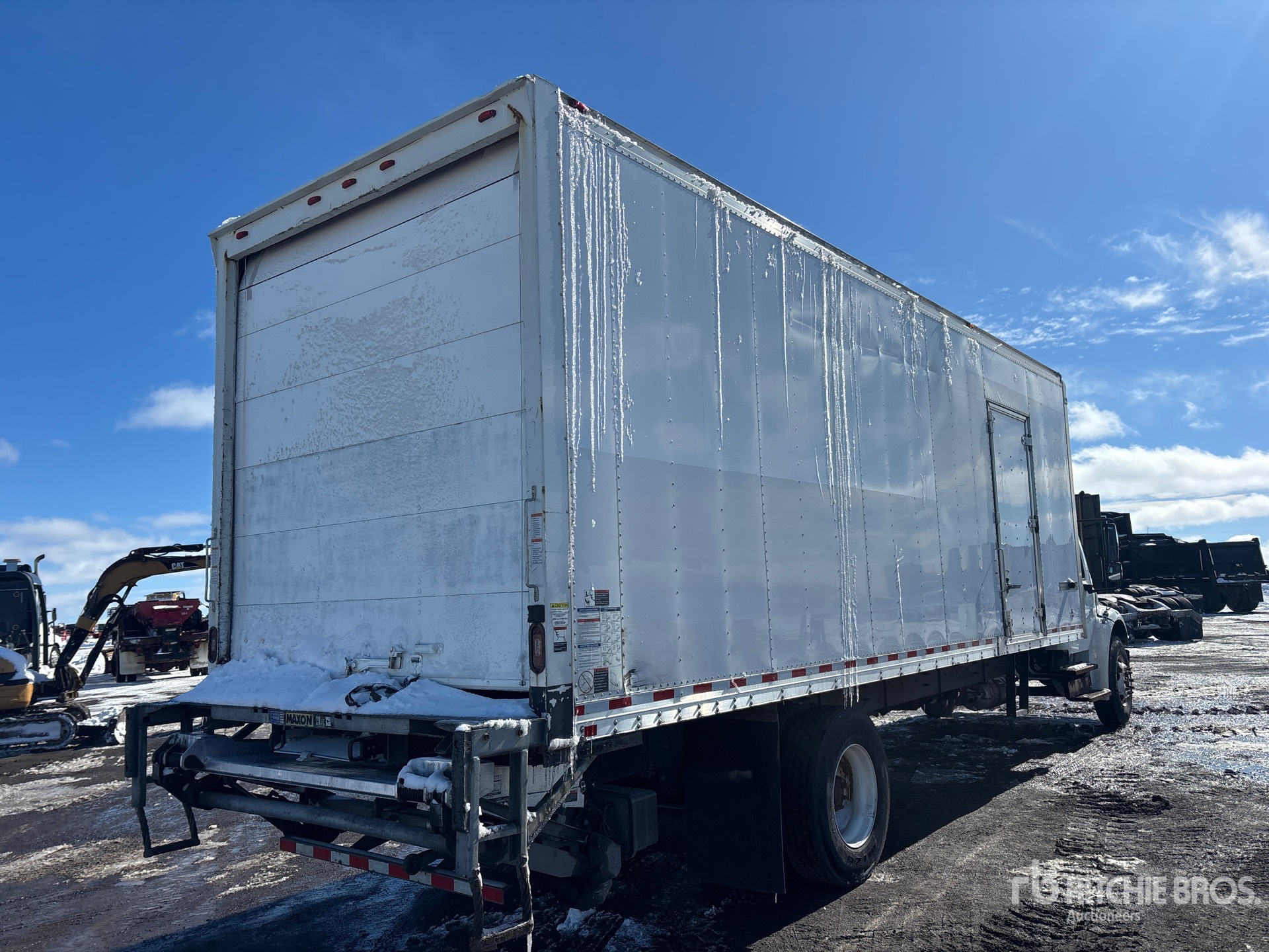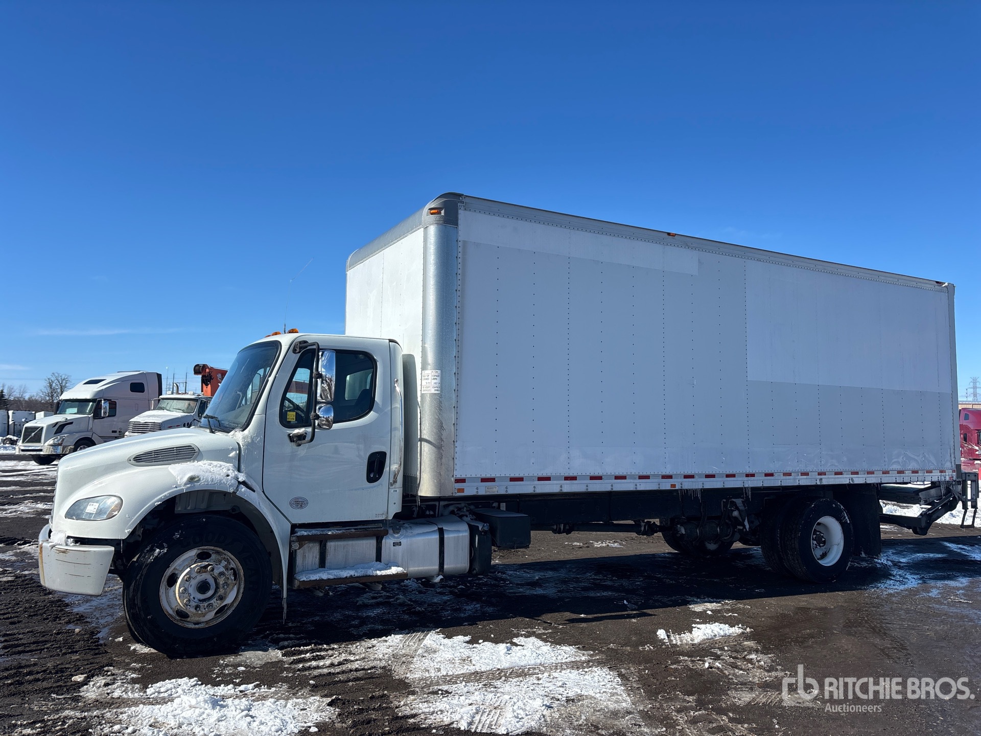 Cummins 6.7 6 Cylinder 6.7 L Diesel 280 hp Engine, 2017 US EPA Label, CARB Compliant, Requires Diesel Exhaust Fluid, 7329 Engine hrs, Allison 2500 Automatic Transmission, 12000 lb Front Axle, 21000 lb Rears, 5.22:1 Axle Ratio, 33000 lb GVWR, Aluminum Wheels, 11R22.5, Air Ride Suspension, 280 in Wheelbase, Morgan 26 ft x 102 in Wide x 103 in High Body, Curbside Door, Walk-Up Ramp, Liftgate