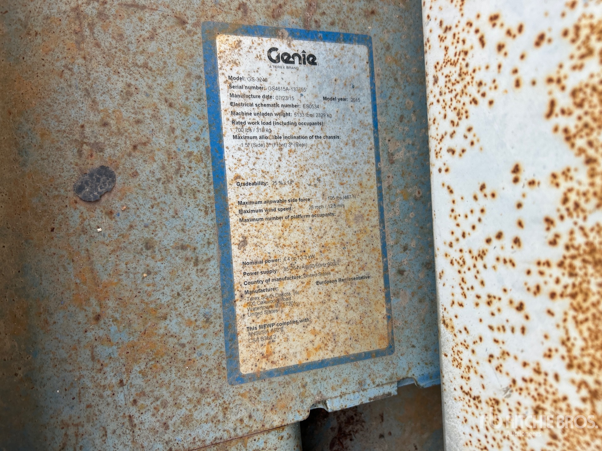 A qualified Ritchie Bros. employee collected detailed equipment information and performed functional tests on the key components of this asset. You, or a proxy, may also inspect any items on site prior to bidding on auction day.